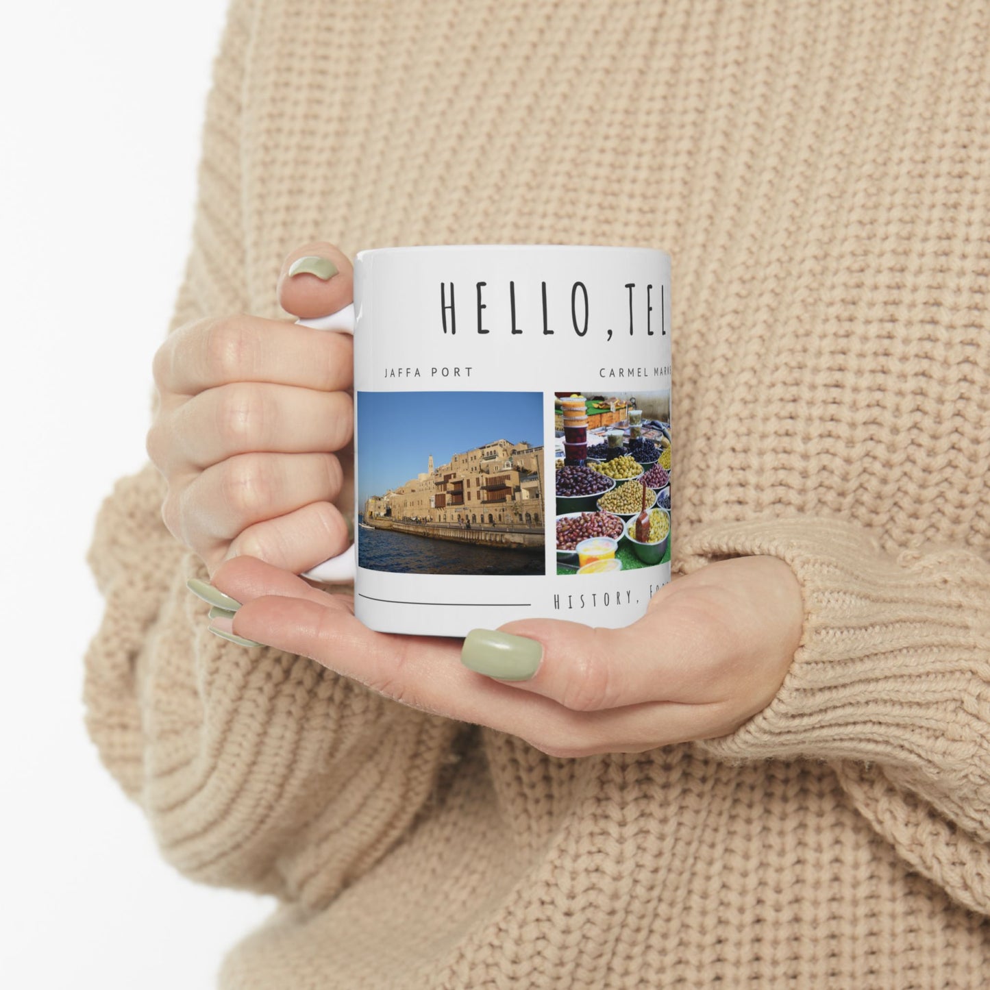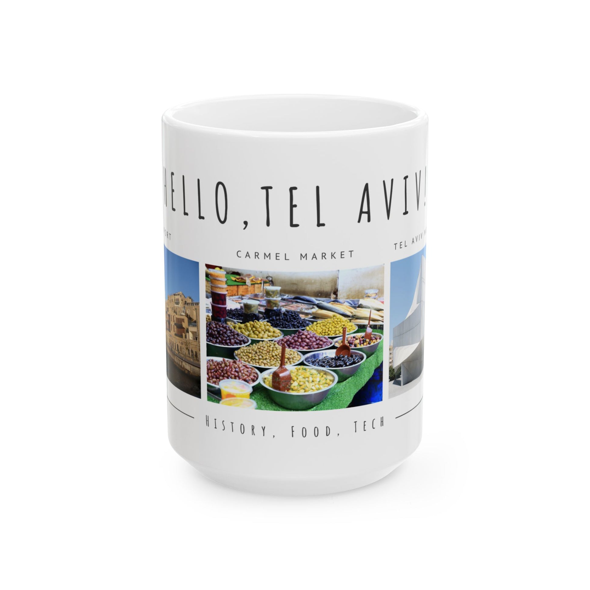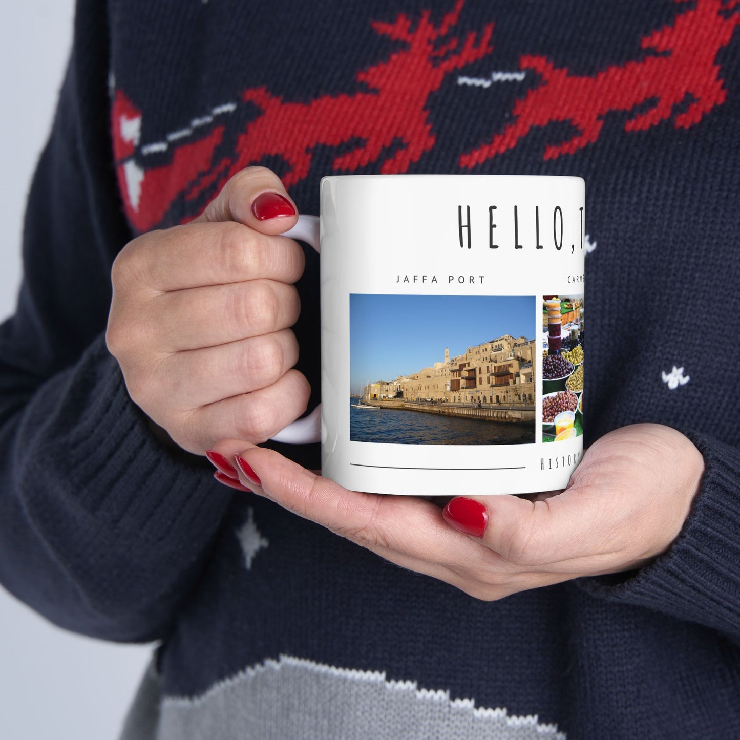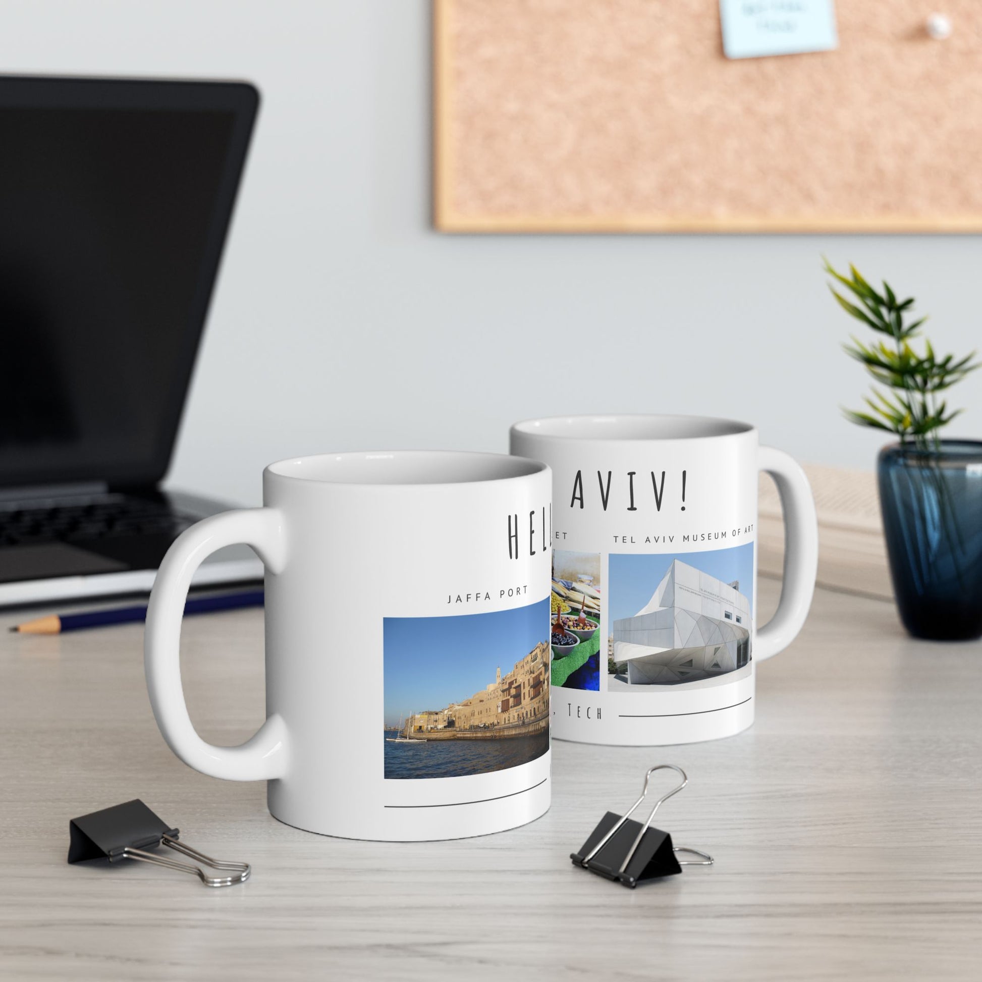 Hello Tel Aviv Ceramic Mug - Unique Travel Souvenir (11oz, 15oz) - Perfect Gift for Foodies & Travelers - 12232