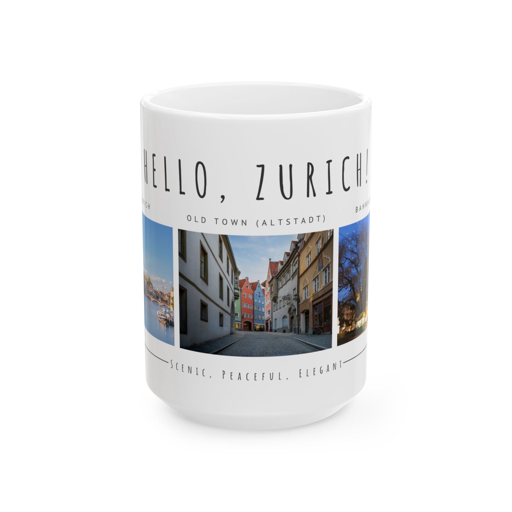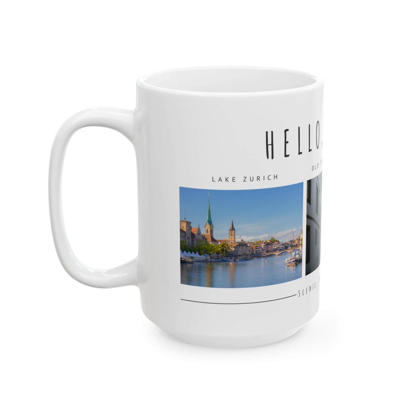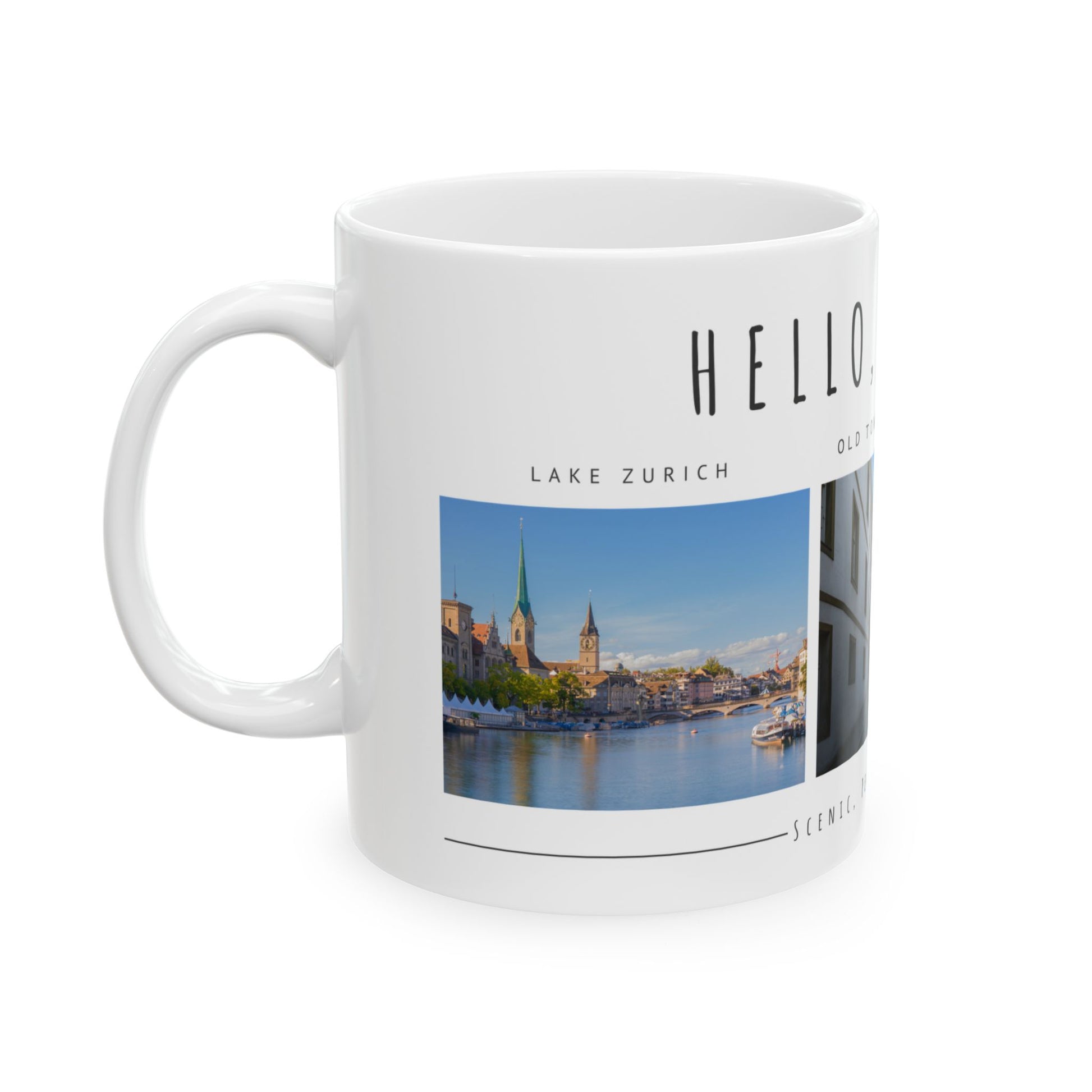 Hello Zurich Ceramic Mug - Coffee Cup with Old Town Images - 12024
