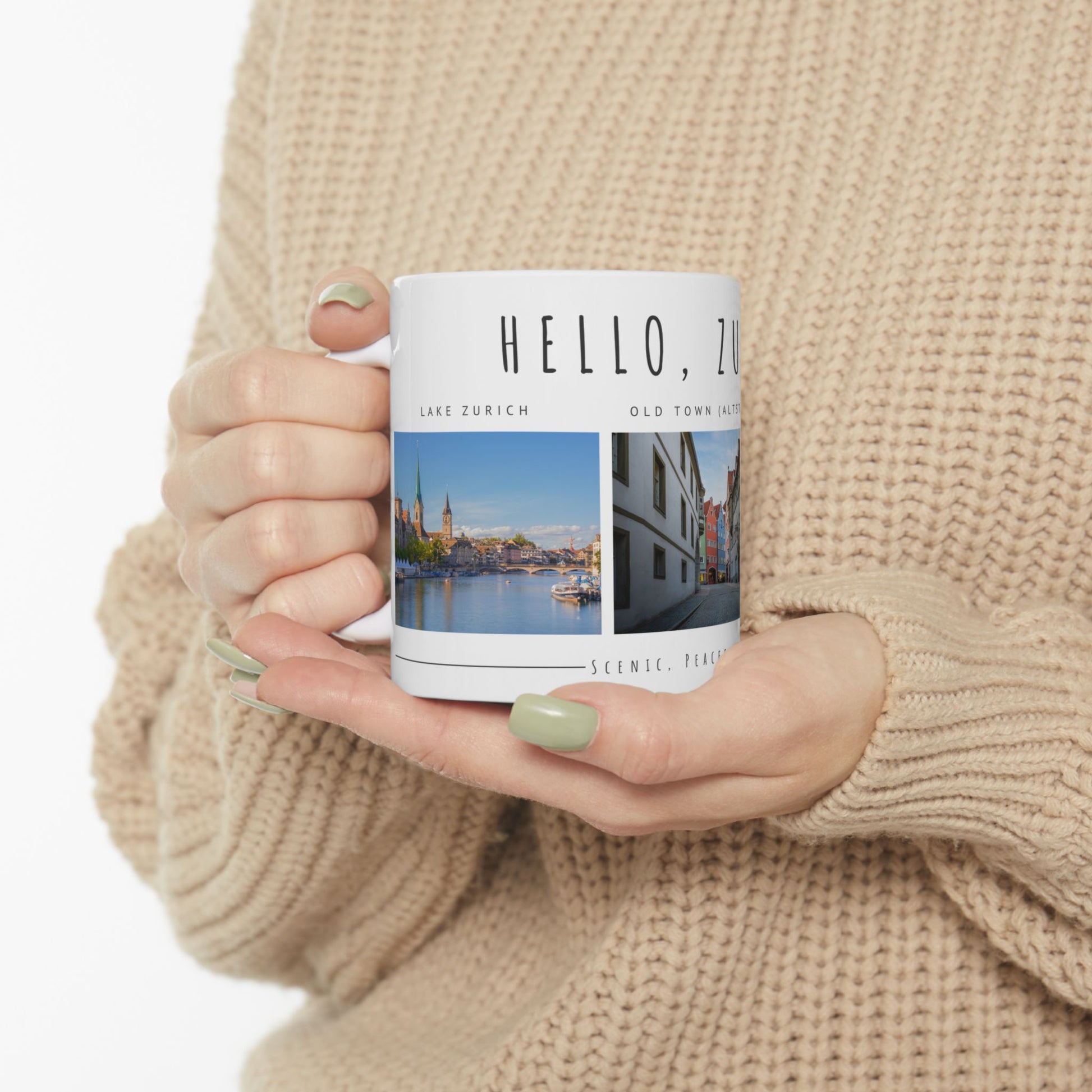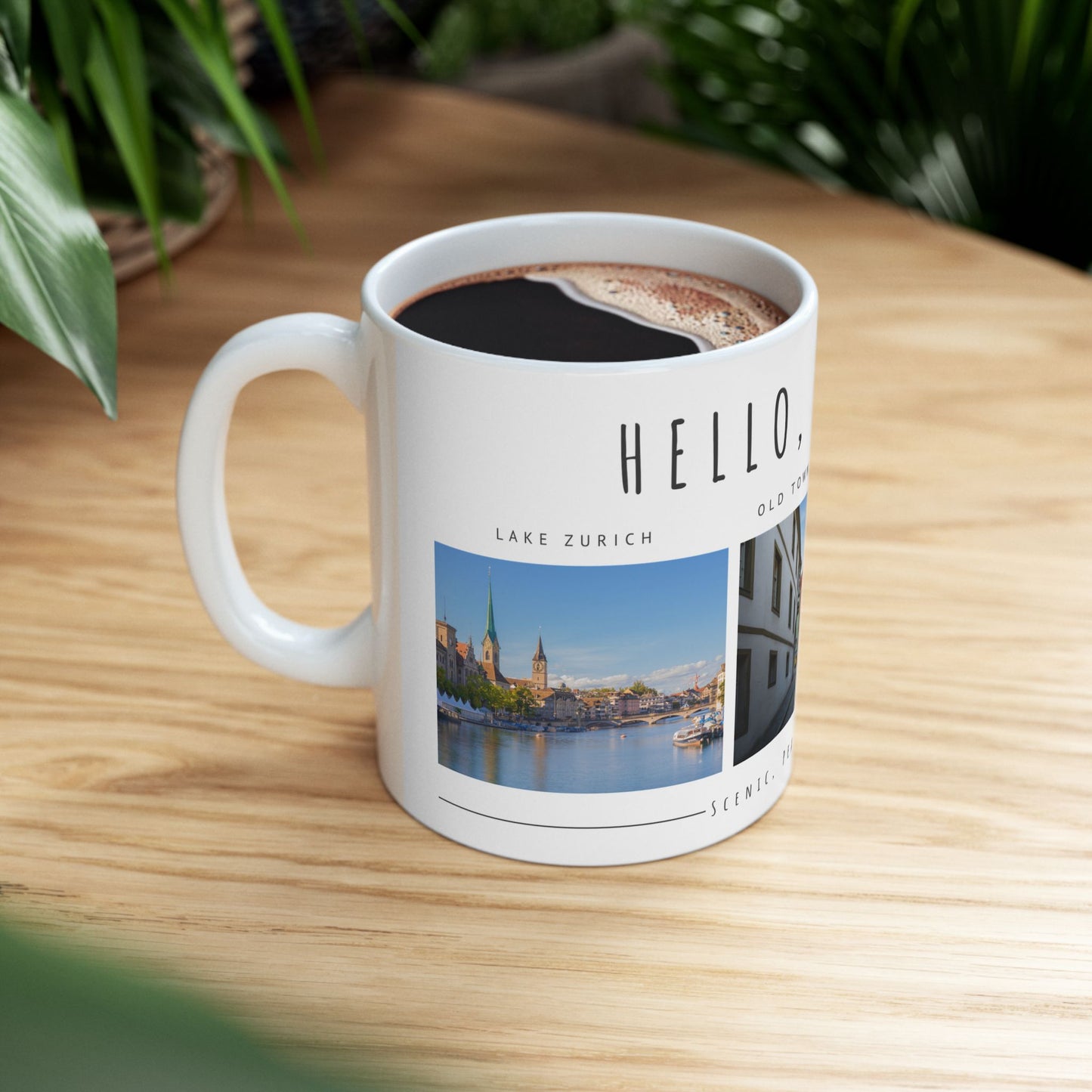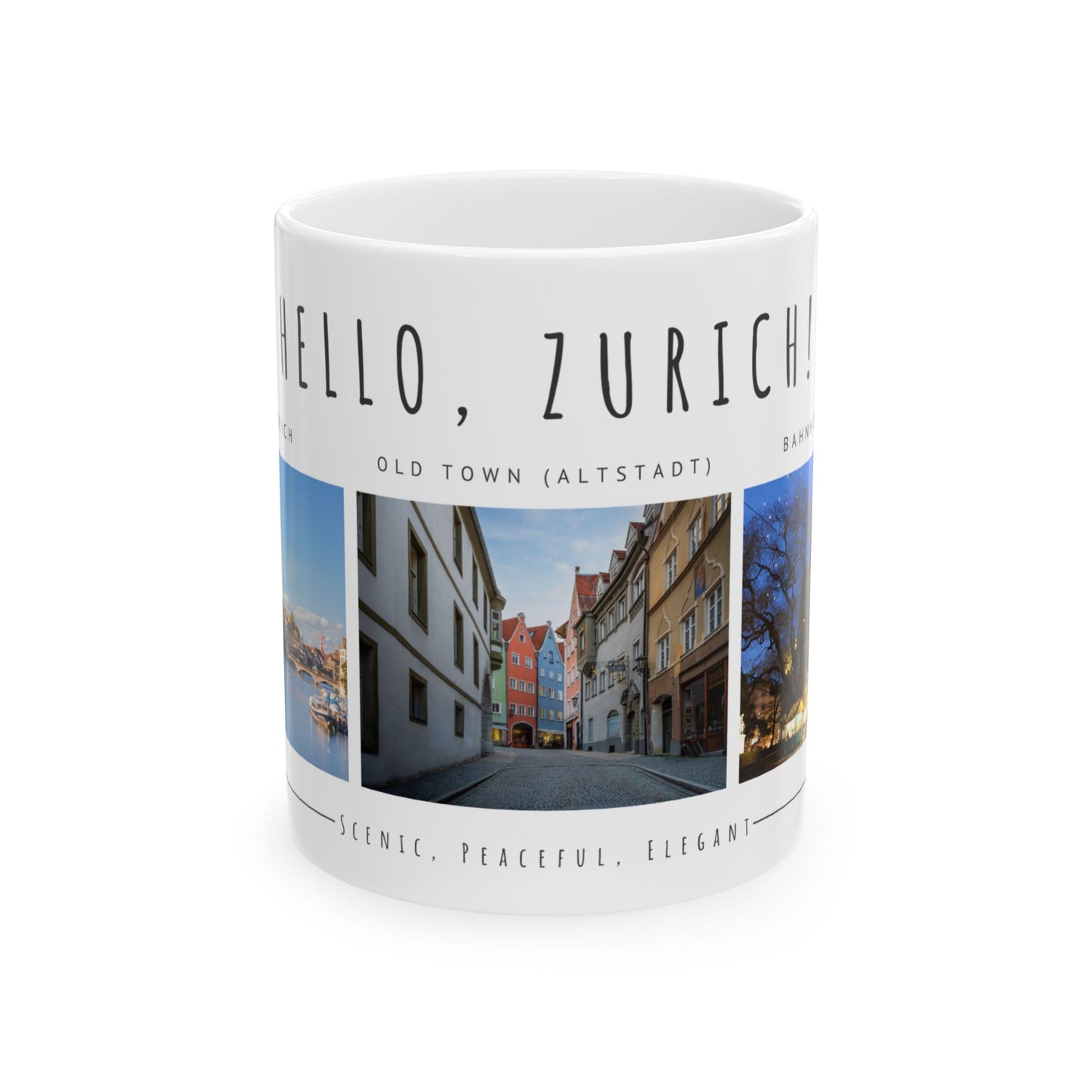 Hello Zurich Ceramic Mug - Coffee Cup with Old Town Images - 12024