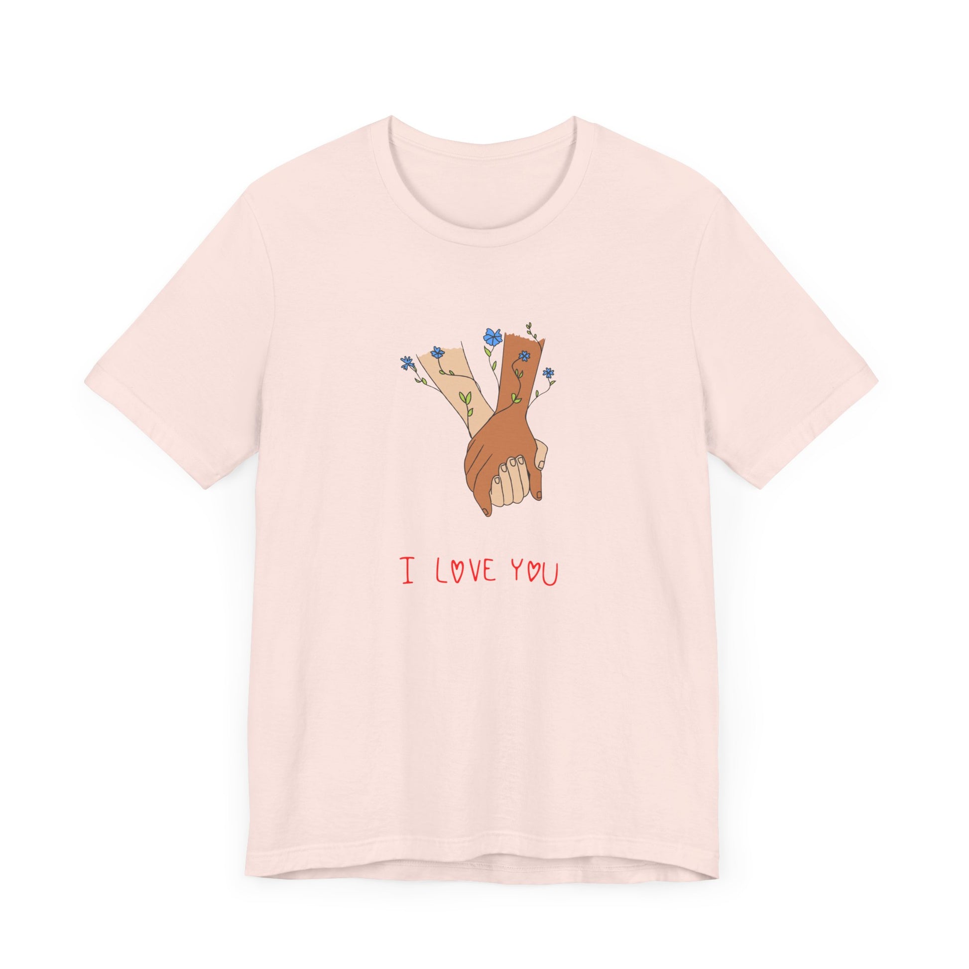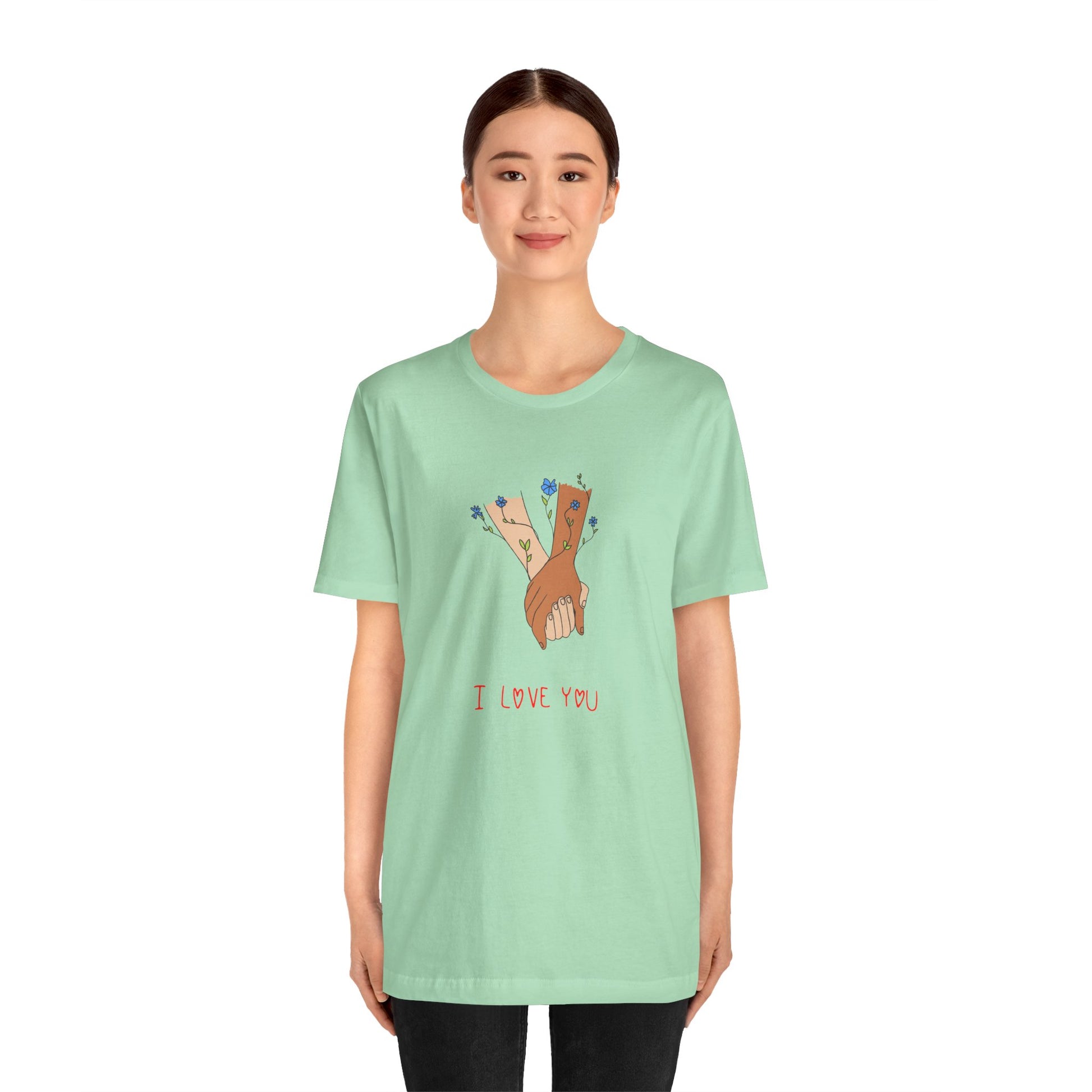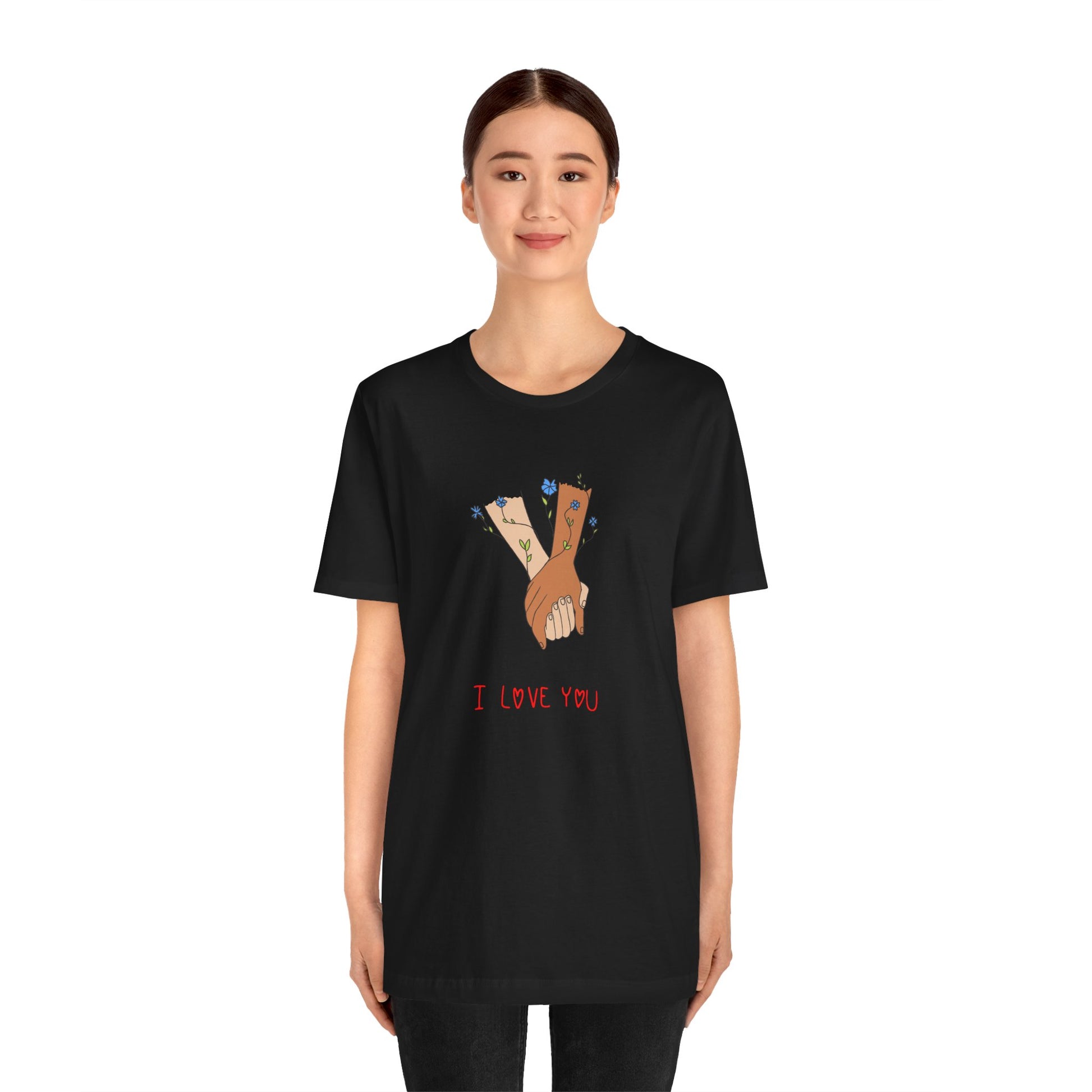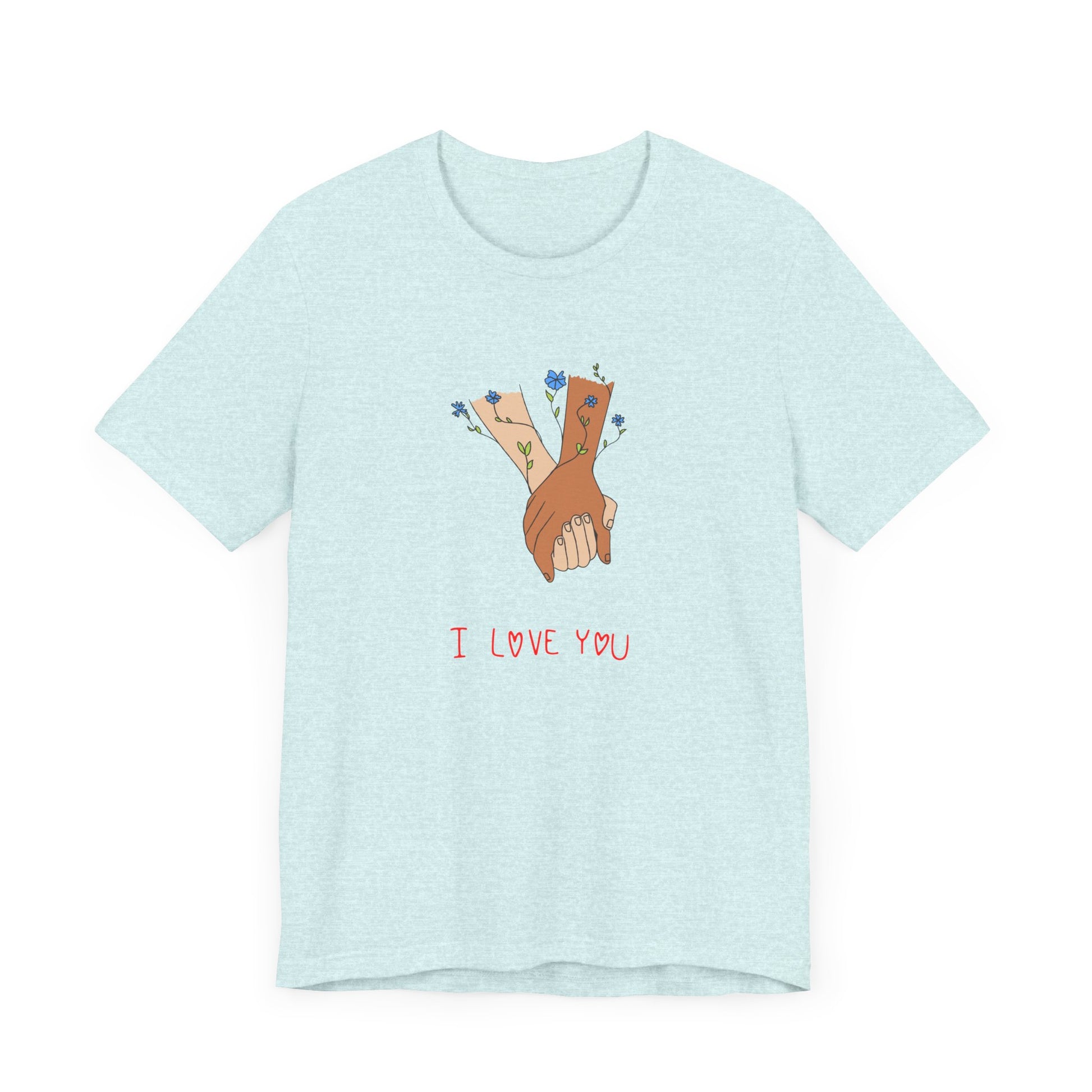 Celebrate love, connection, and the beauty of simple gestures with our Holding Hands, I Love You Unisex Jersey Short Sleeve Tee. This heartwarming design captures the essence of affection, making it the perfect addition to your wardrobe or a thoughtful gift for someone special.