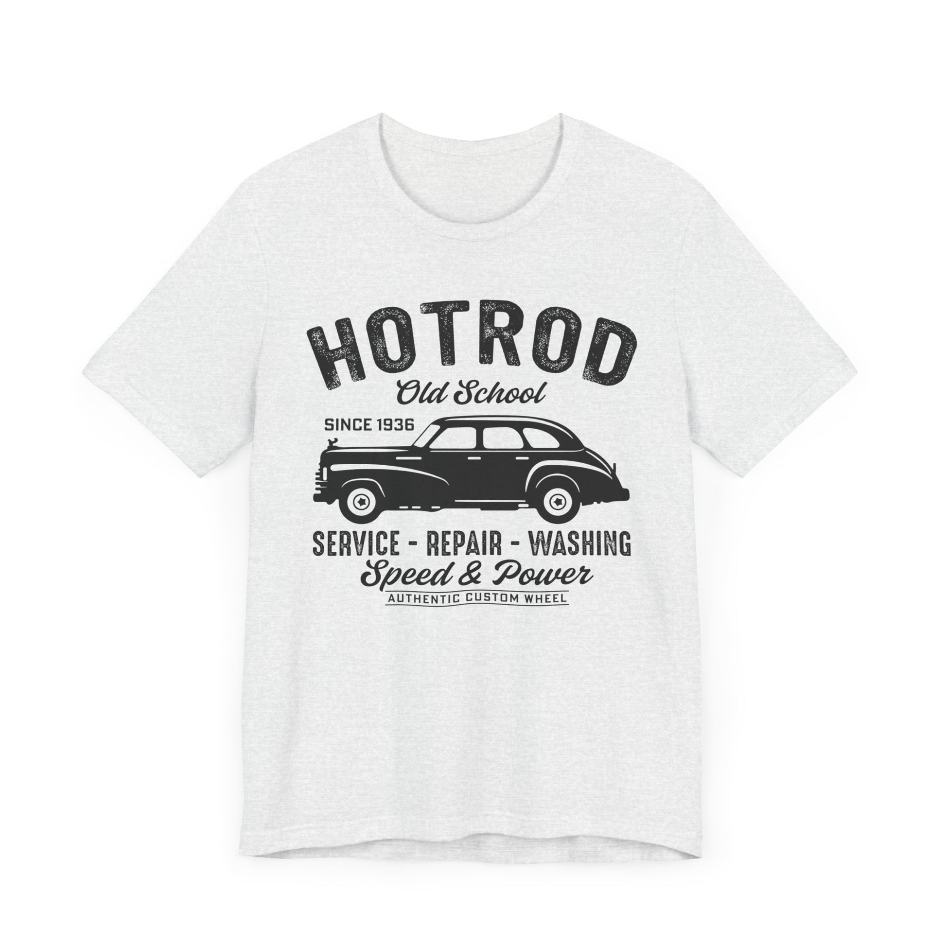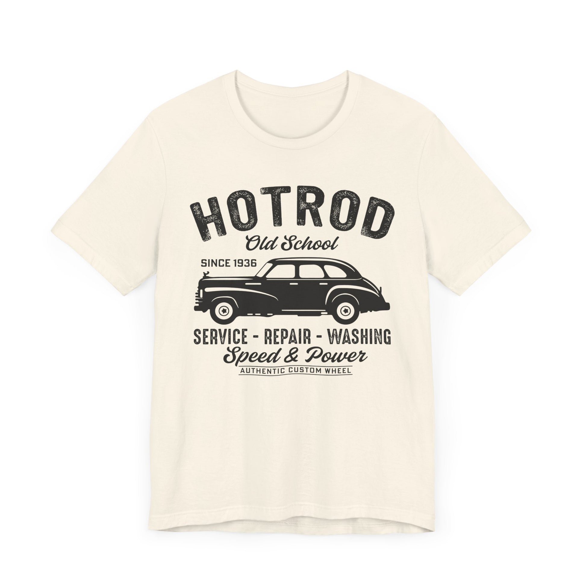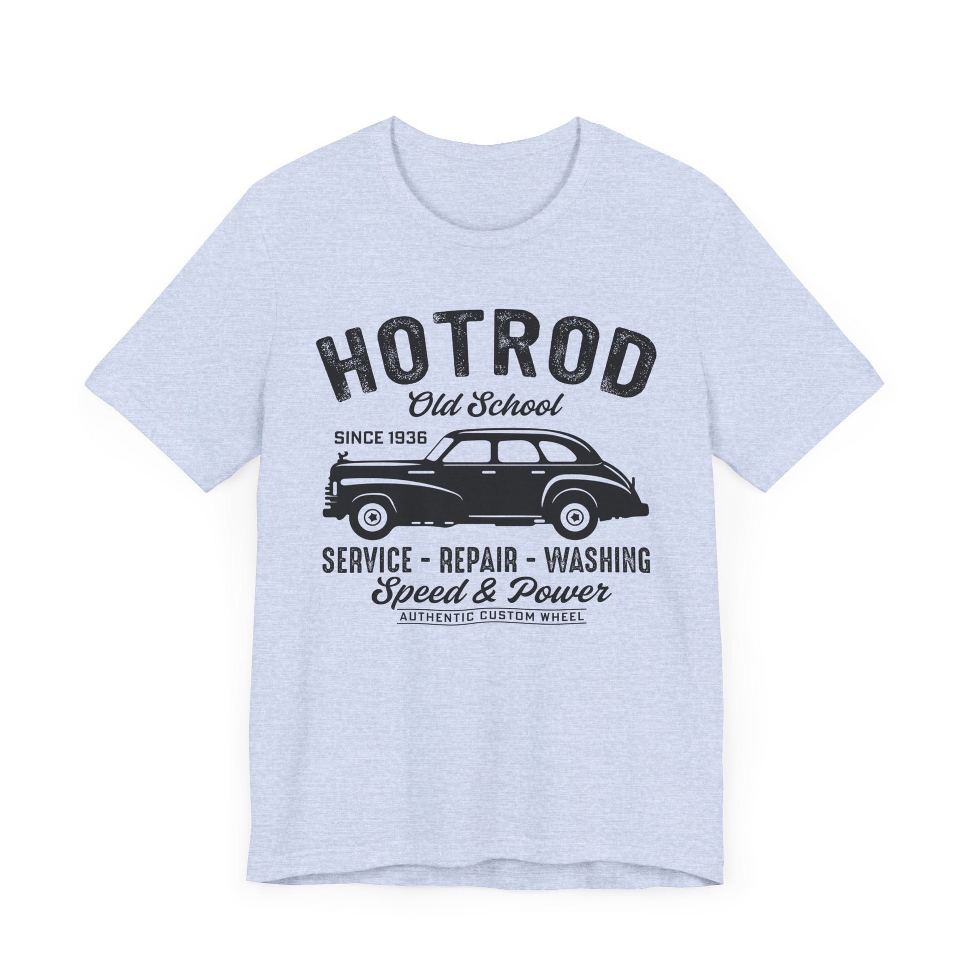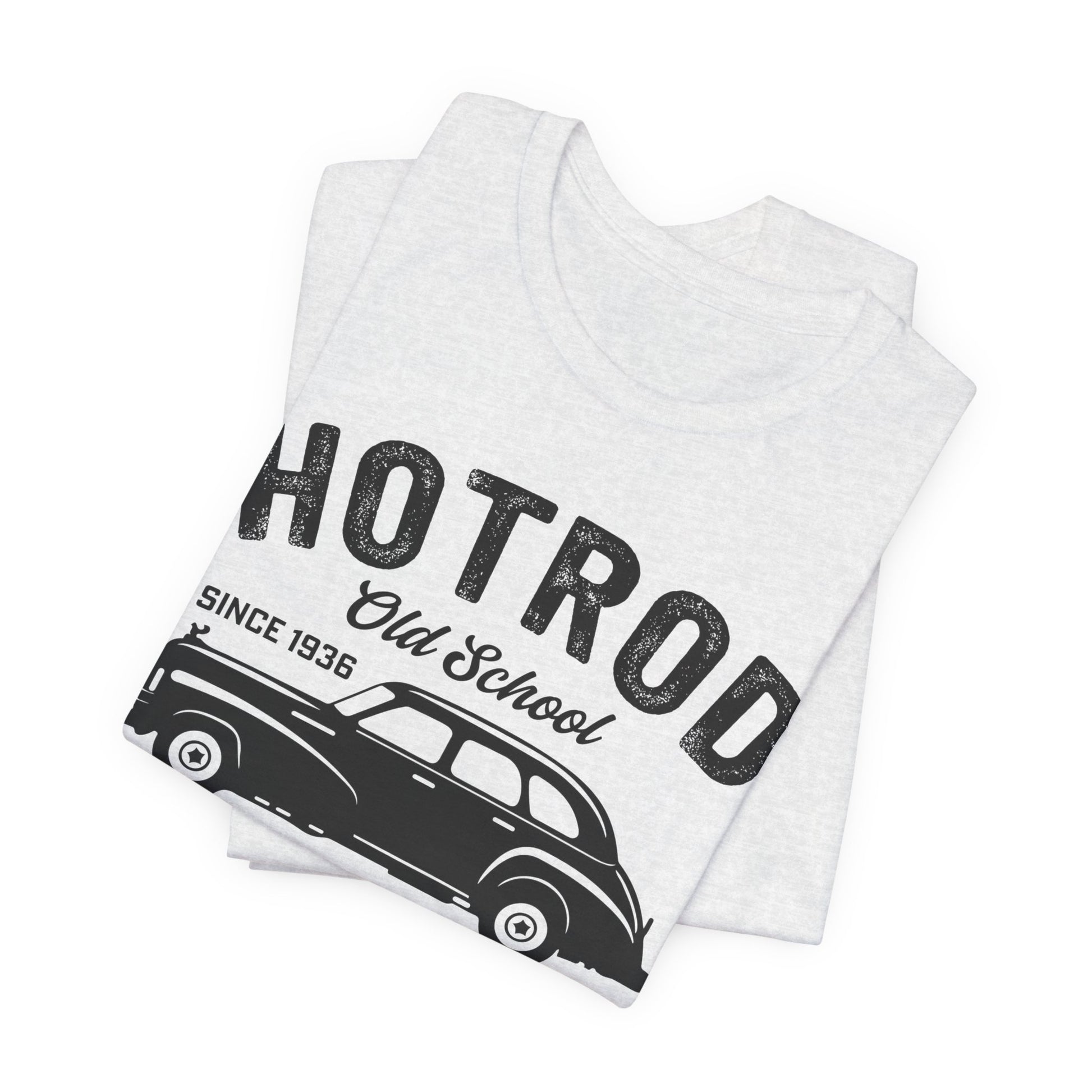 Made from high-quality ring-spun cotton, this tee offers a soft, comfortable fit that’s ideal for everyday wear. The design features the classic phrase "Hotrod, Old School" with a vintage-inspired graphic that captures the essence of retro automotive design and craftsmanship.