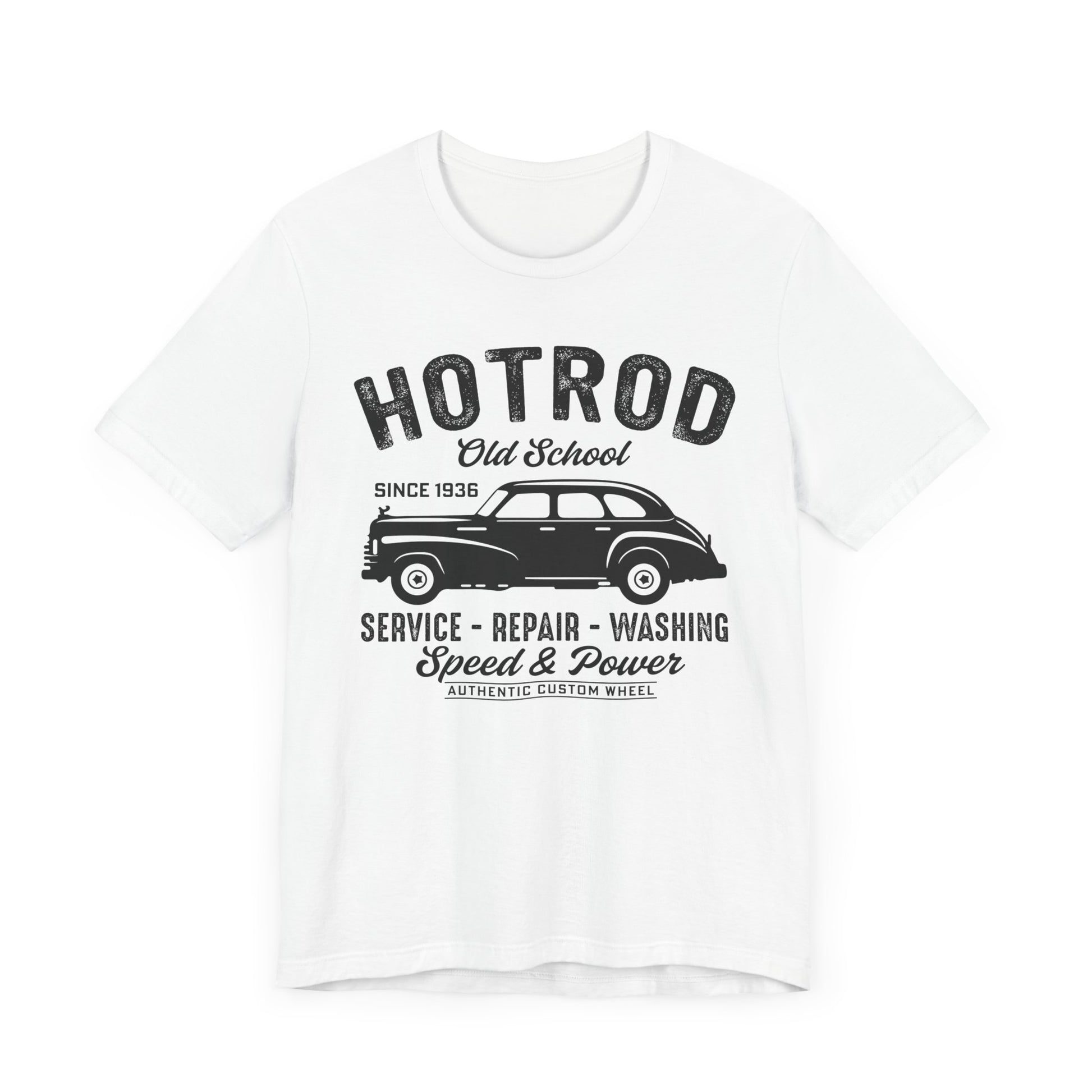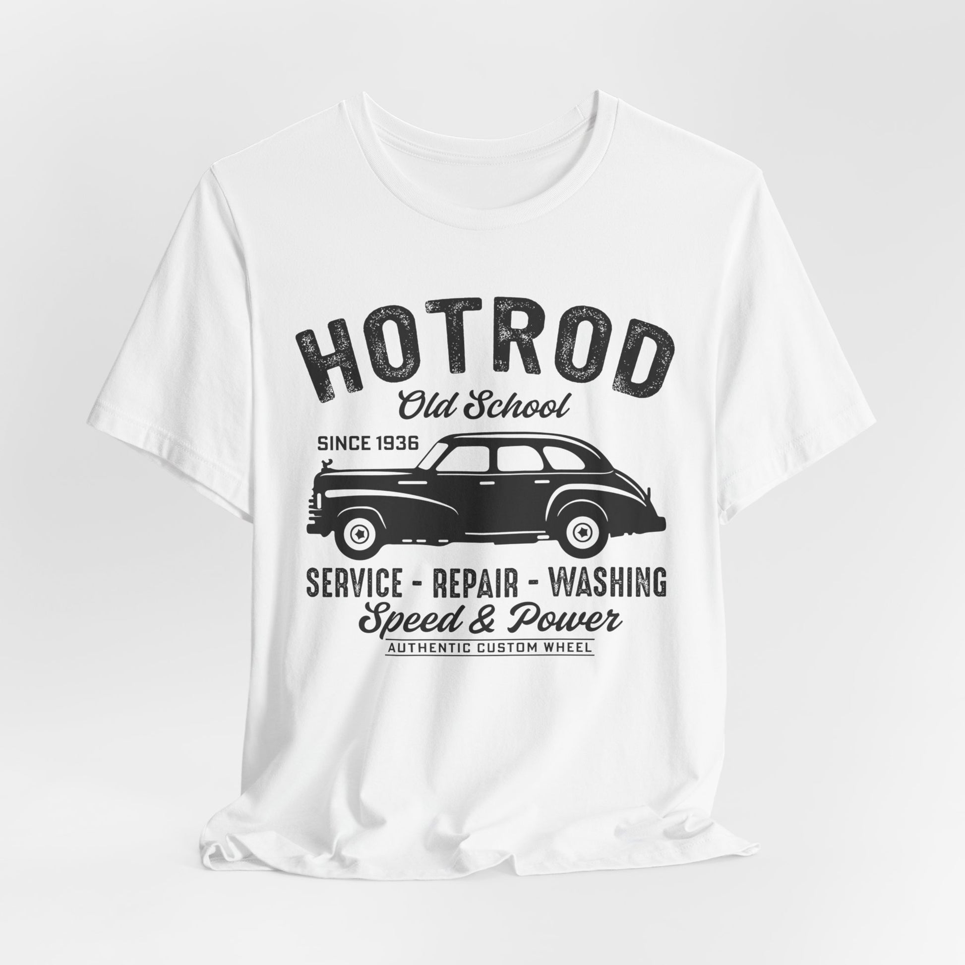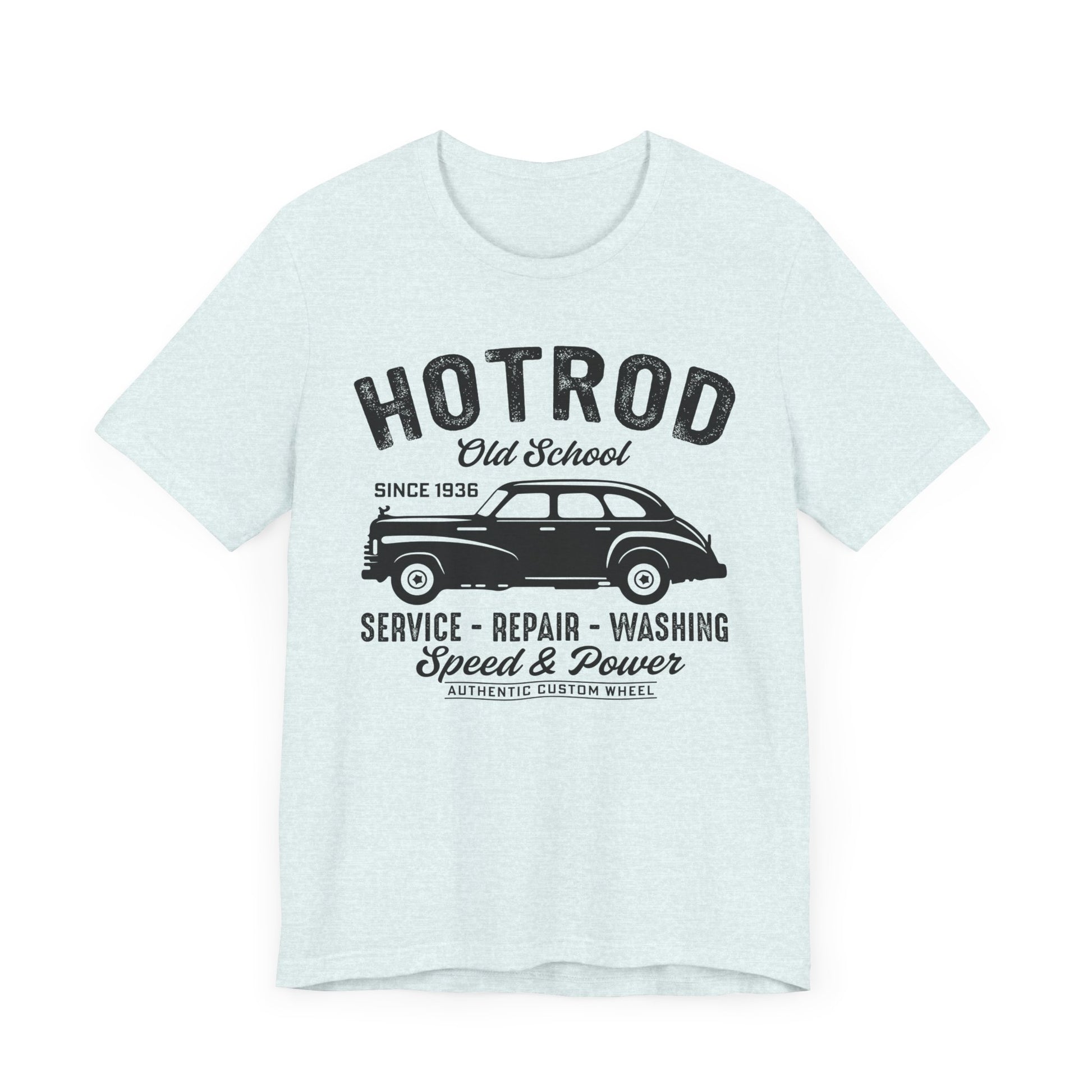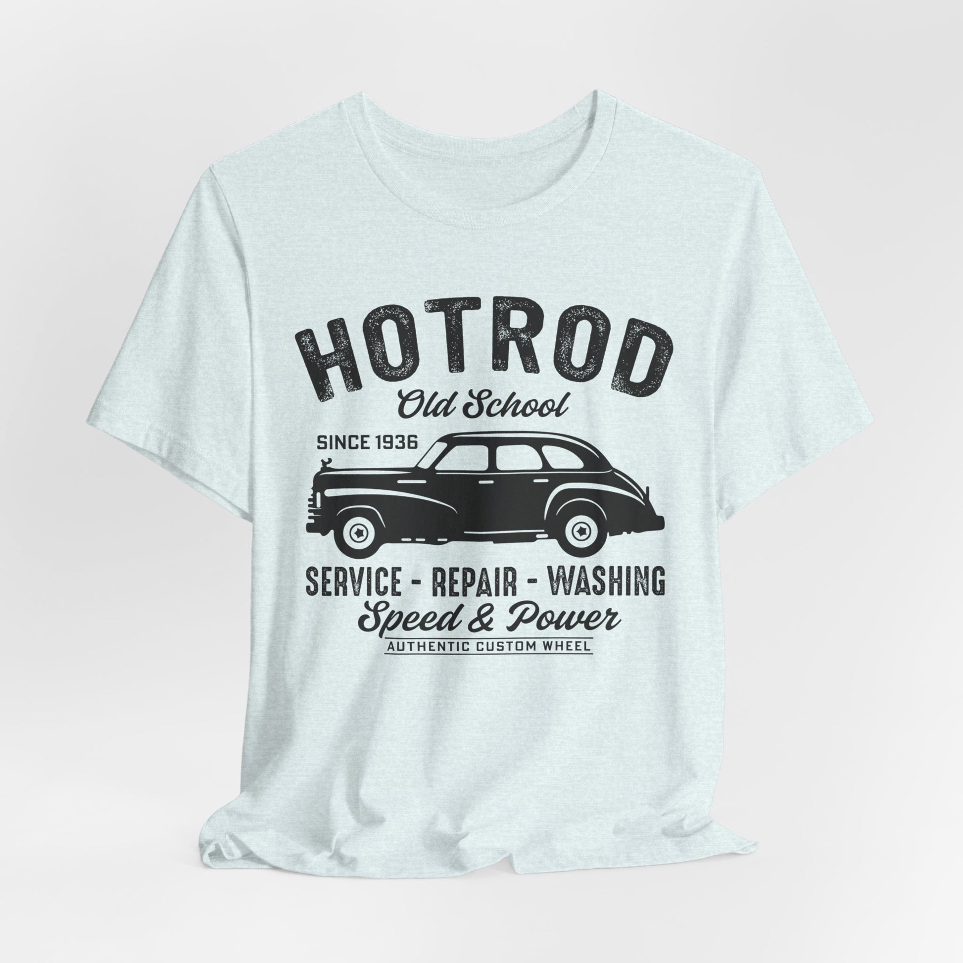 Made from high-quality ring-spun cotton, this tee offers a soft, comfortable fit that’s ideal for everyday wear. The design features the classic phrase "Hotrod, Old School" with a vintage-inspired graphic that captures the essence of retro automotive design and craftsmanship.