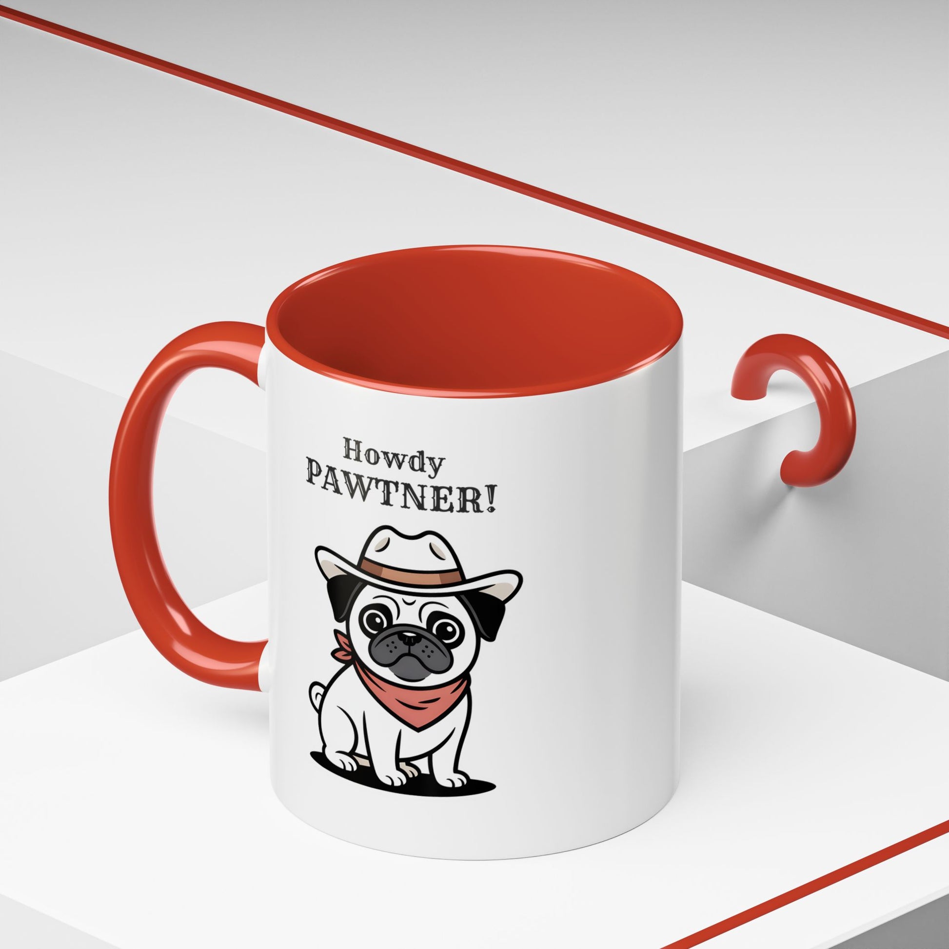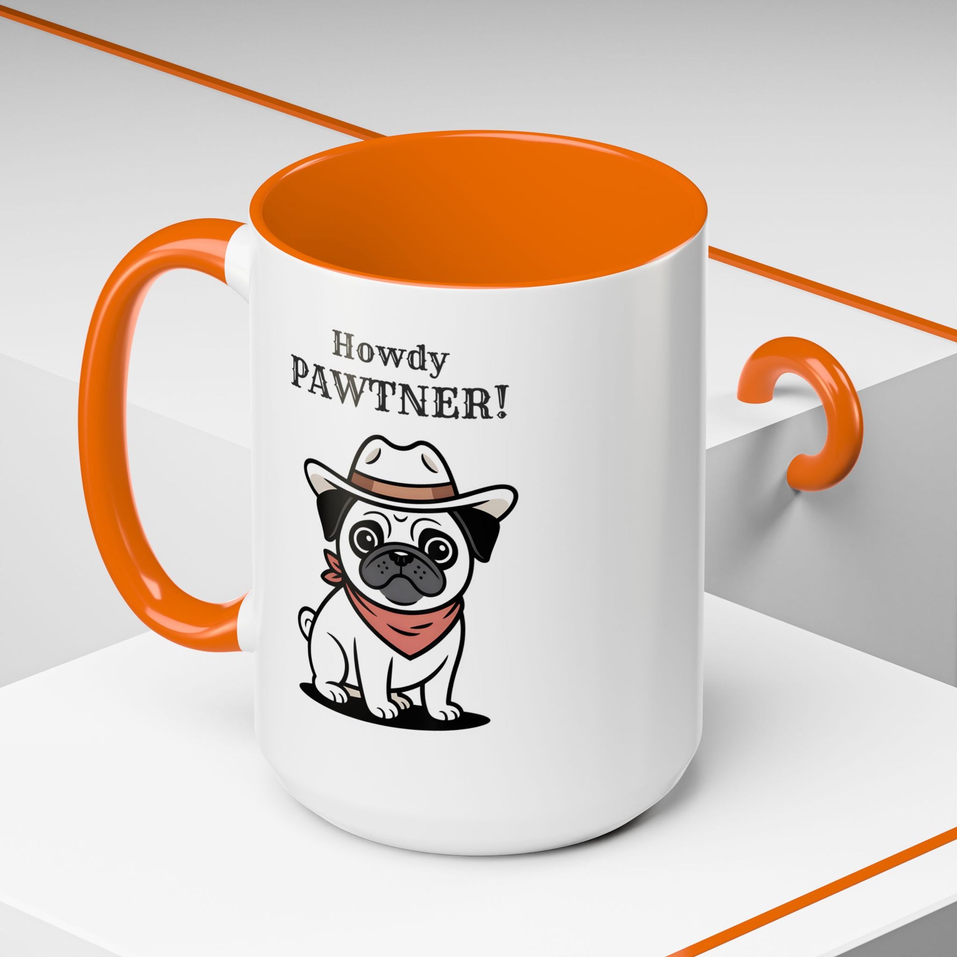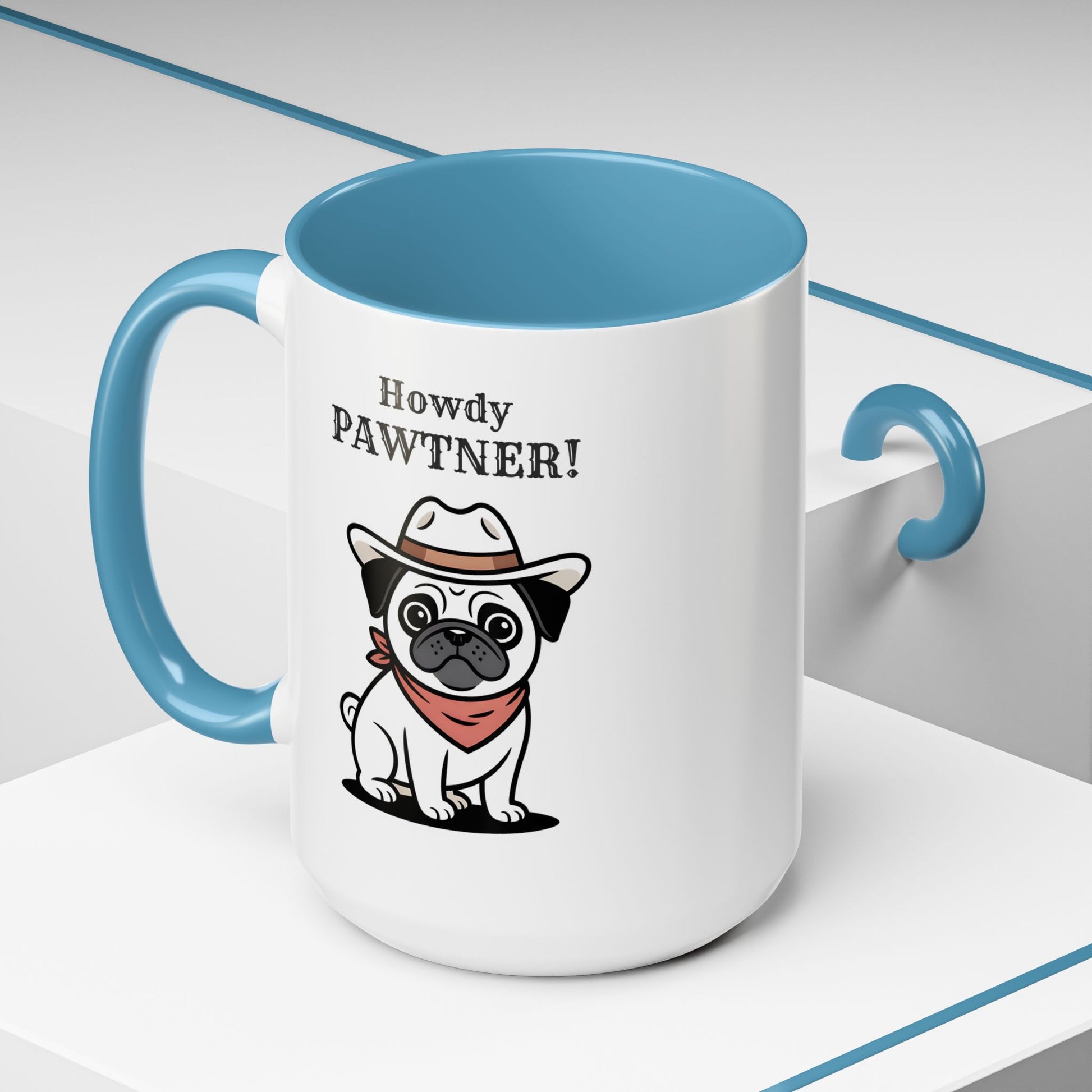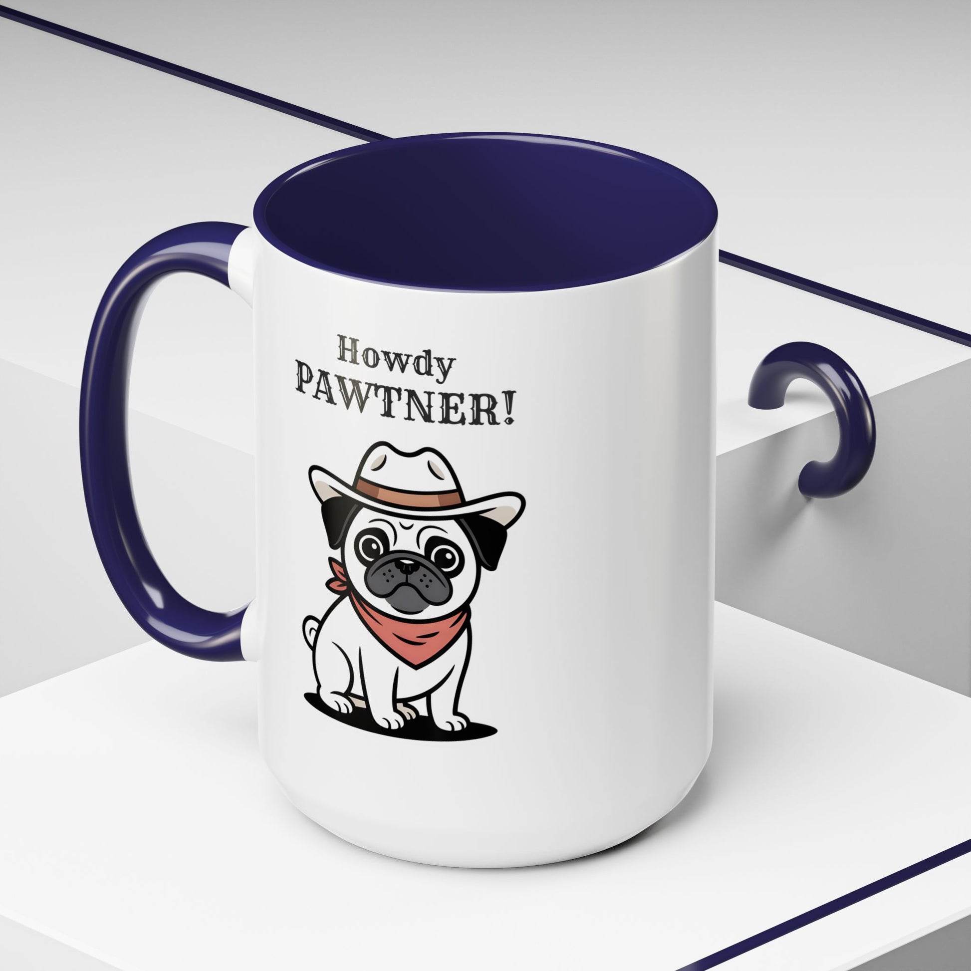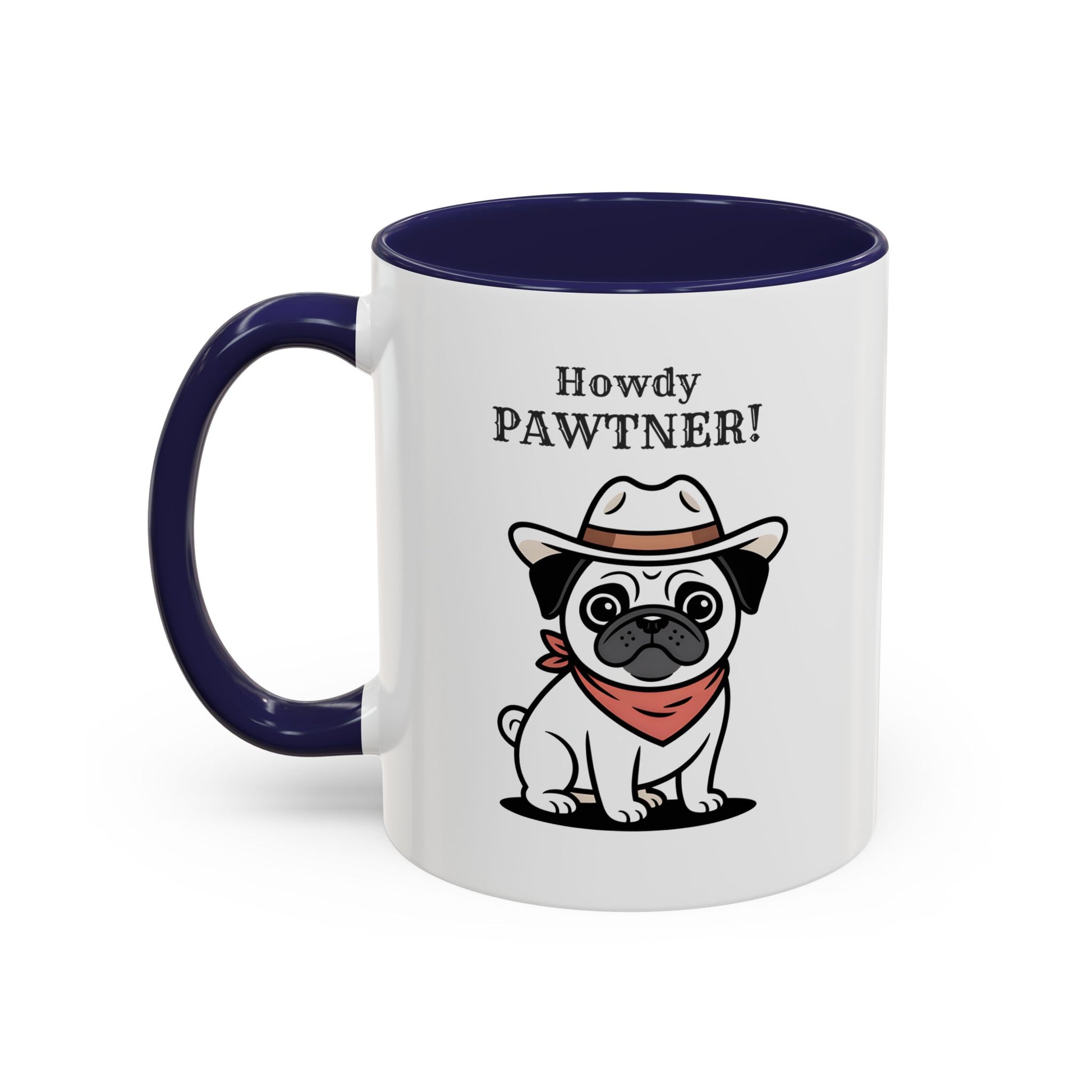 Howdy Pawtner Pug Mug – Cute Cowboy Dog Coffee Mug, Funny Gift for Dog Lovers (11oz / 15oz) - 14777