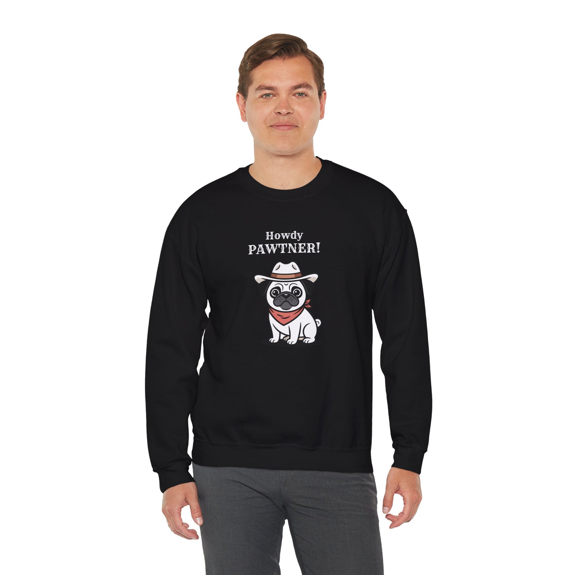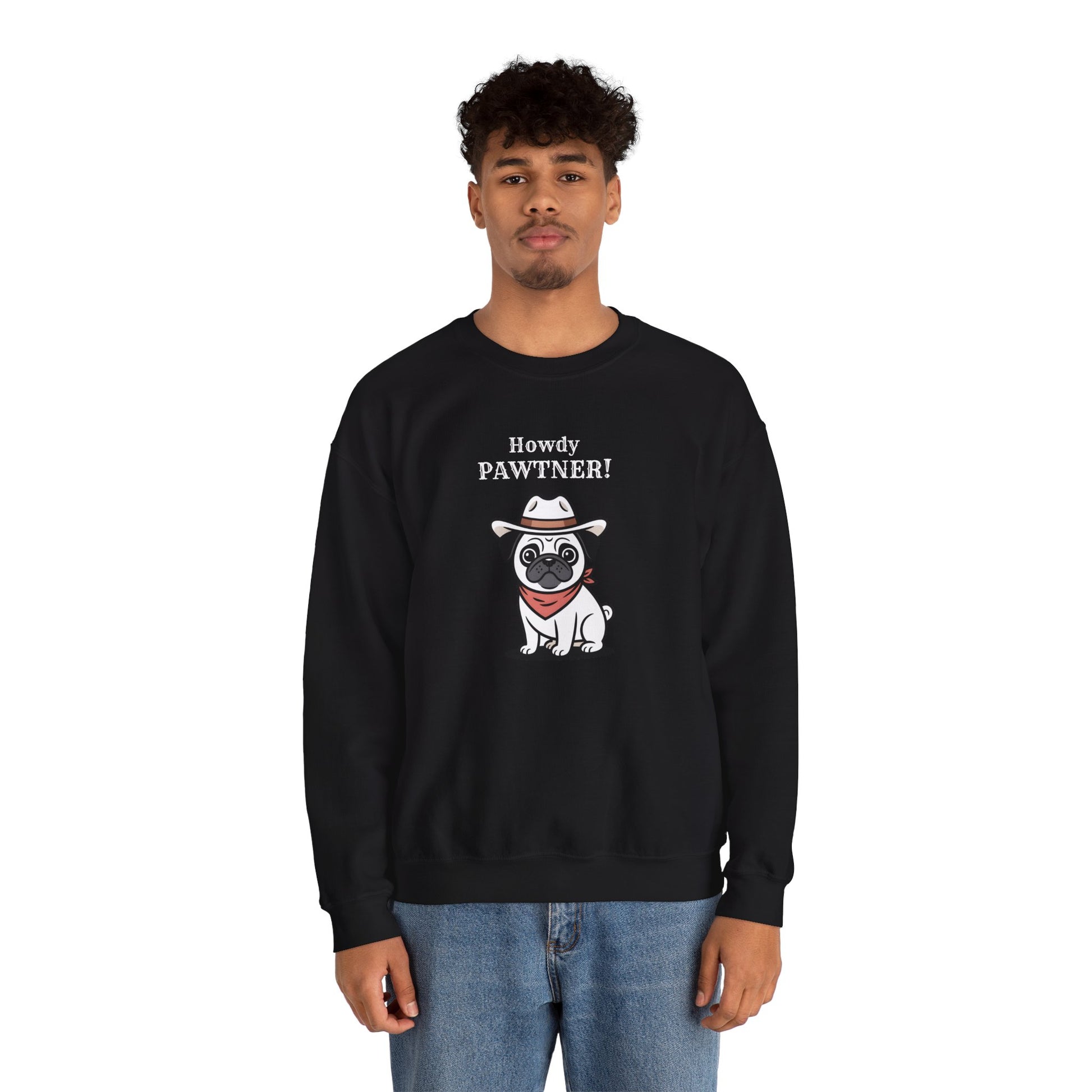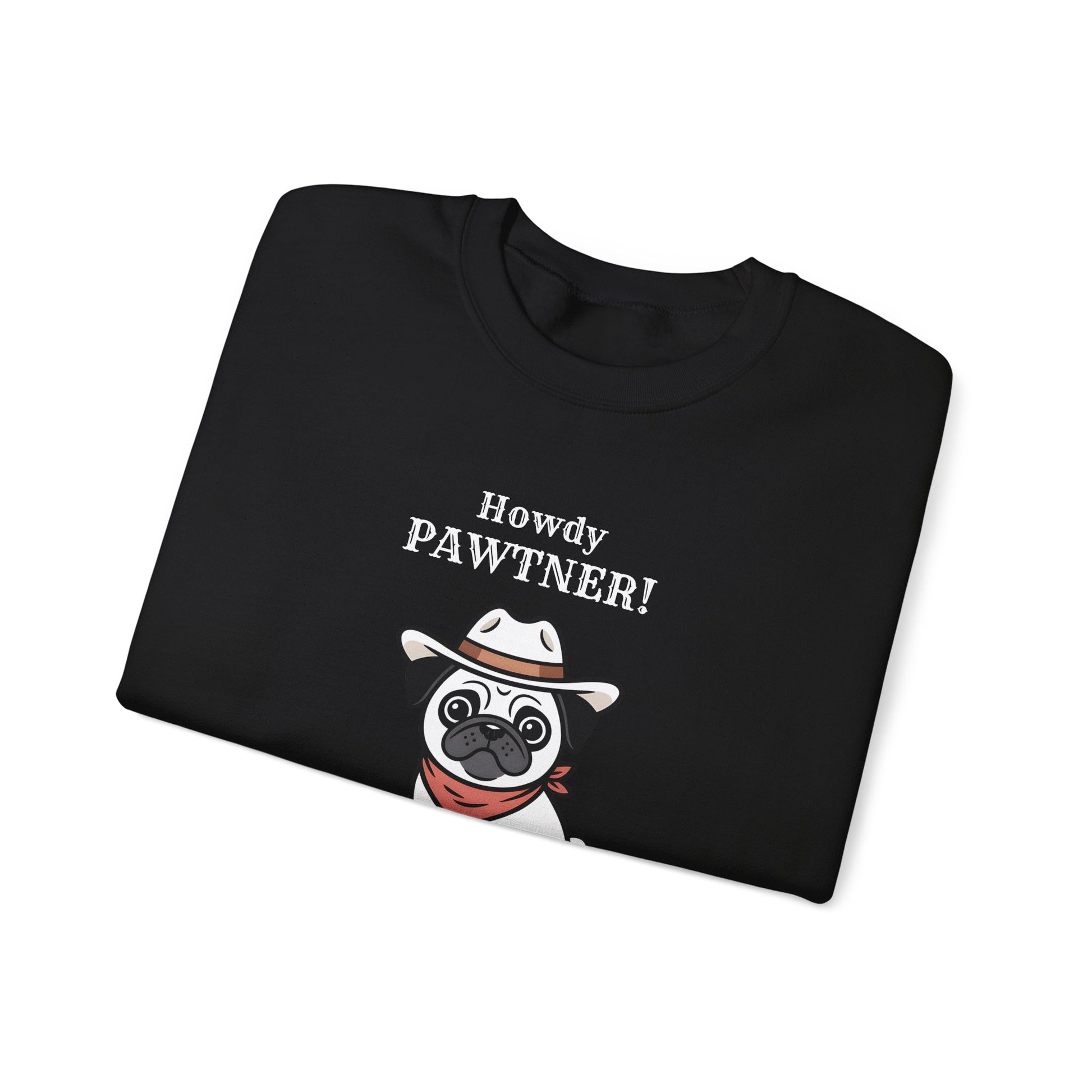 Howdy Pawtner Pug Sweatshirt – Cute Cowboy Dog Crewneck, Funny Gift for Dog Lovers - 14778