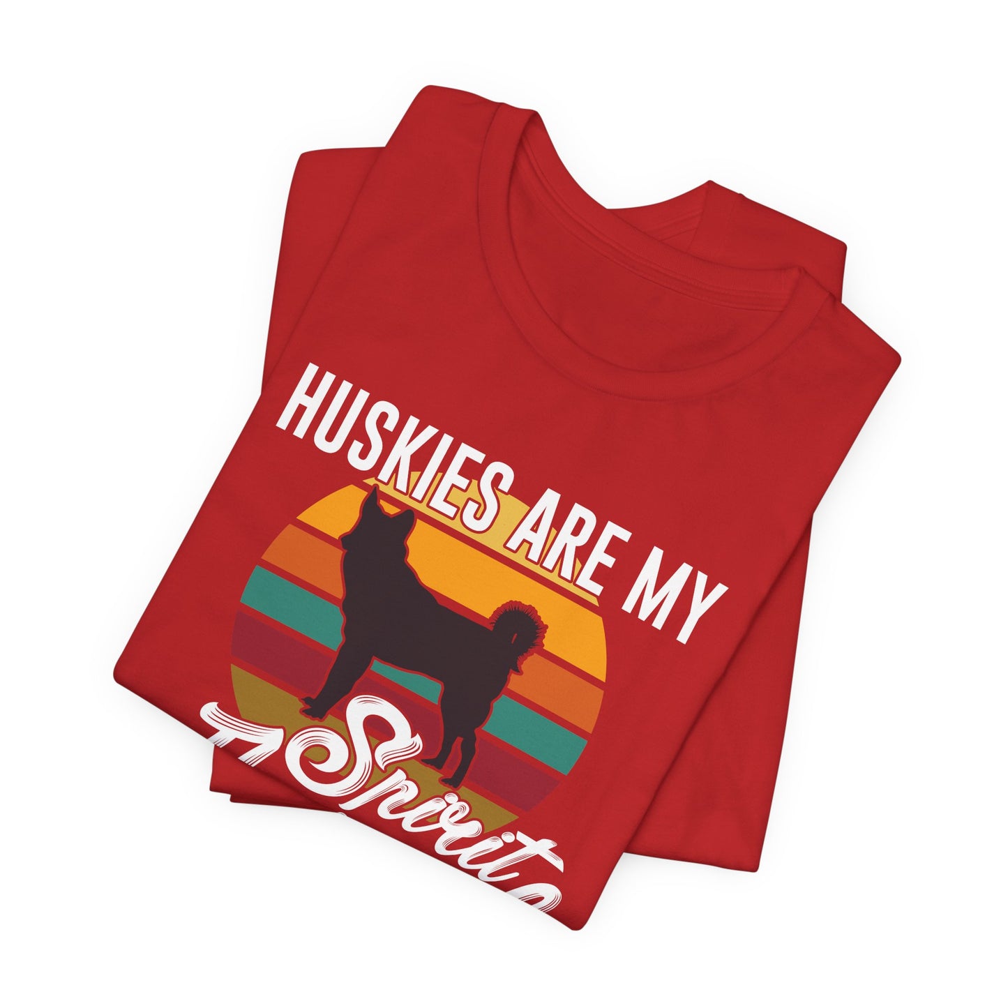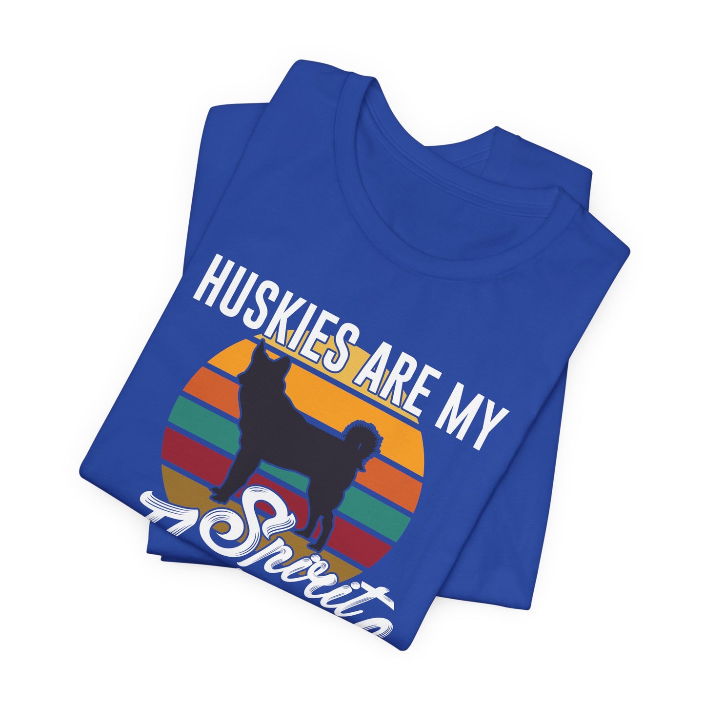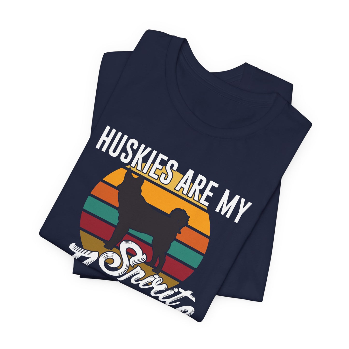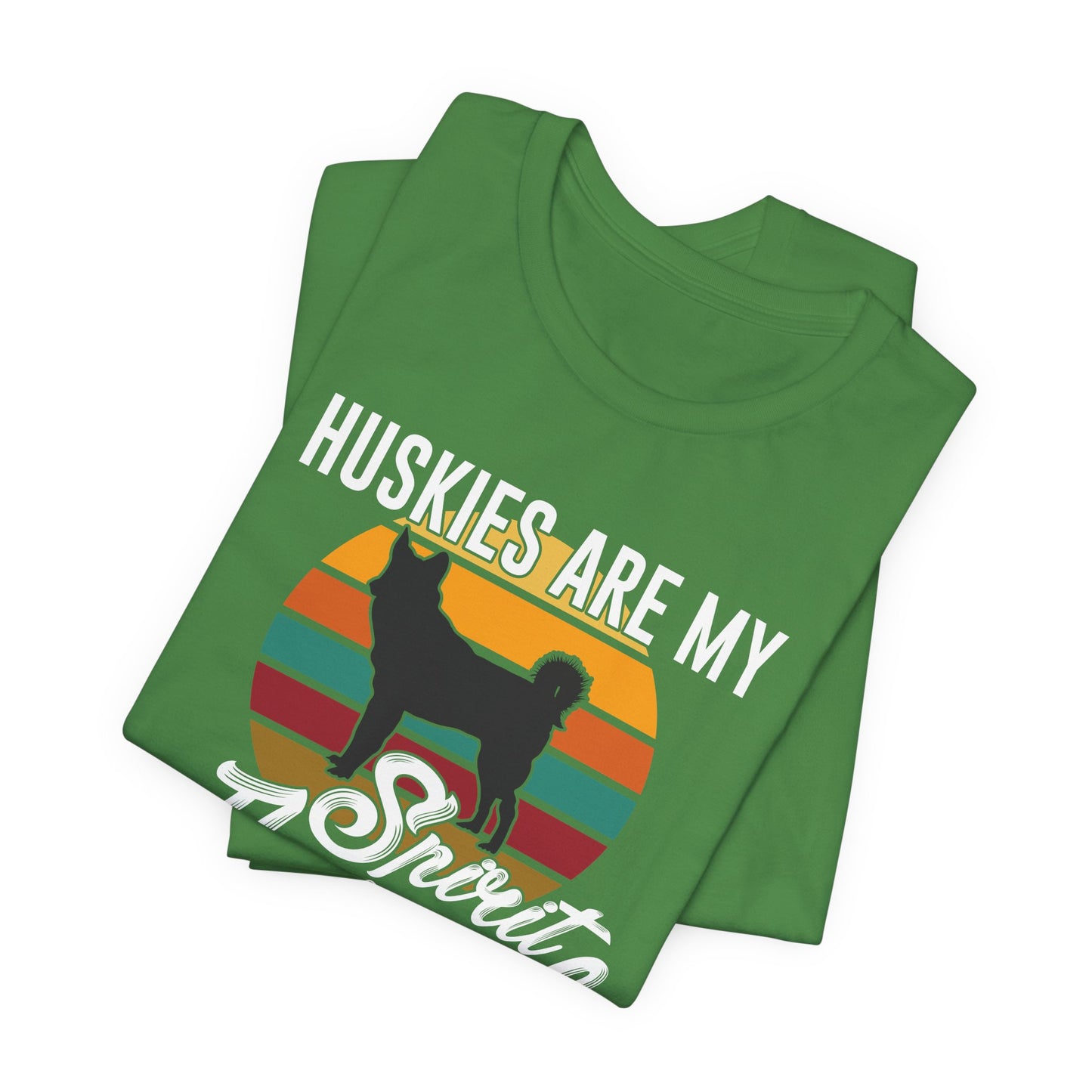 - Bold Design: Features a striking "Huskies Are My Spirit Animal" graphic, showcasing your admiration for these beautiful and energetic dogs.