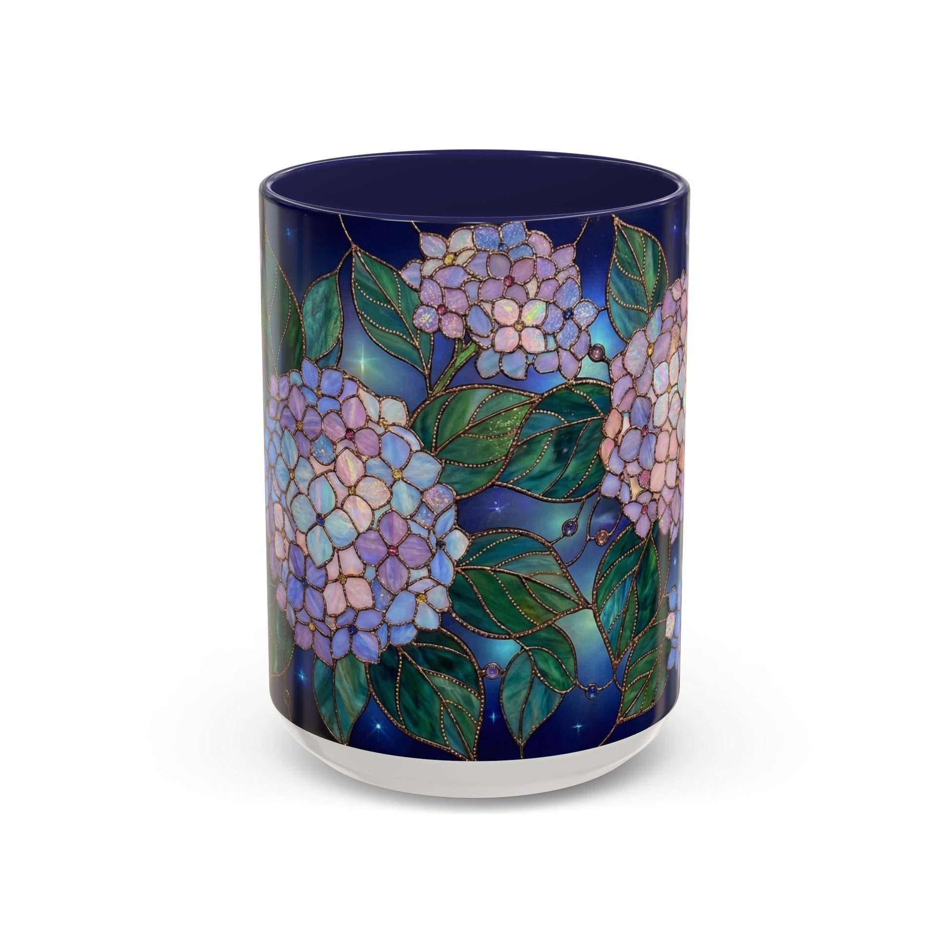 Hydrangea Floral Accent Coffee Mug — Stained Glass Design (11/15 oz) - 14571