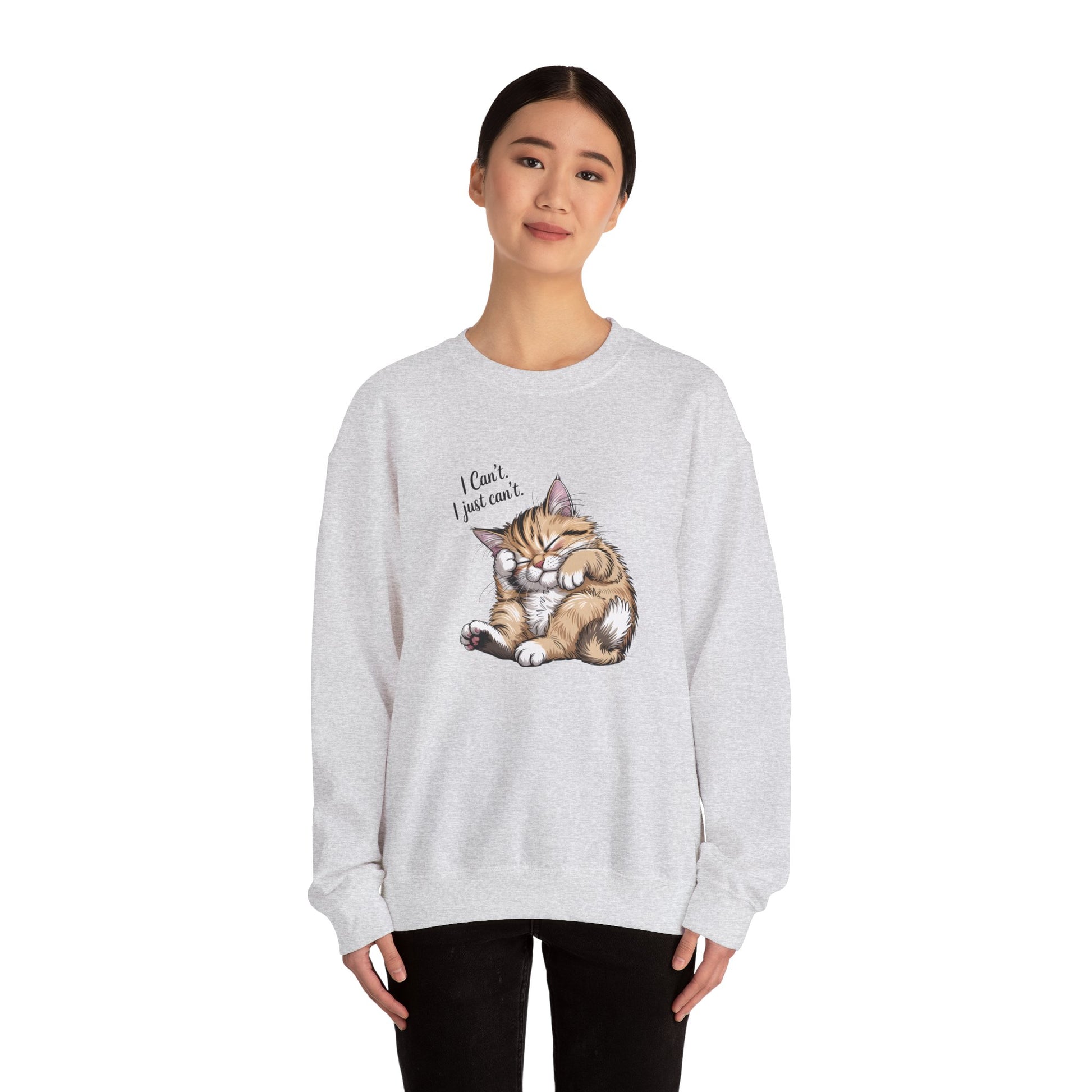 I Can’t, I Just Can’t Cat Sweatshirt – Cute Lazy Cat Crewneck, Funny Gift for Cat Lovers - 14788
