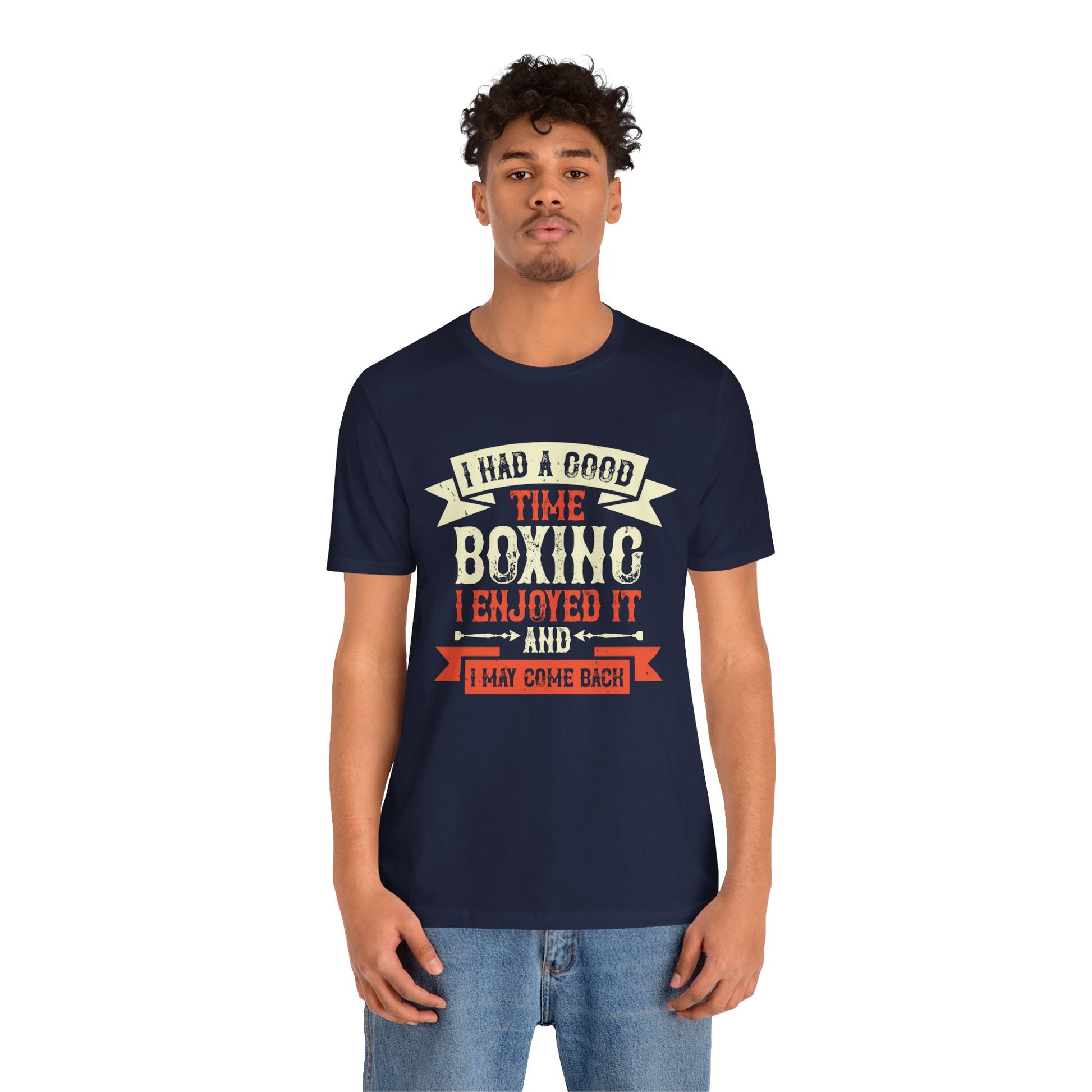 Celebrate your passion for the ring with our "I Had a Good Time Boxing. I Enjoyed It - And I May Come Back" Unisex Jersey Short Sleeve Tee. This tee captures the spirit of a true boxer—someone who loved every moment in the ring and might just lace up the gloves again. Whether you’re a former fighter reminiscing about your time in the ring or someone contemplating a return, this shirt is a nod to your love for the sport.