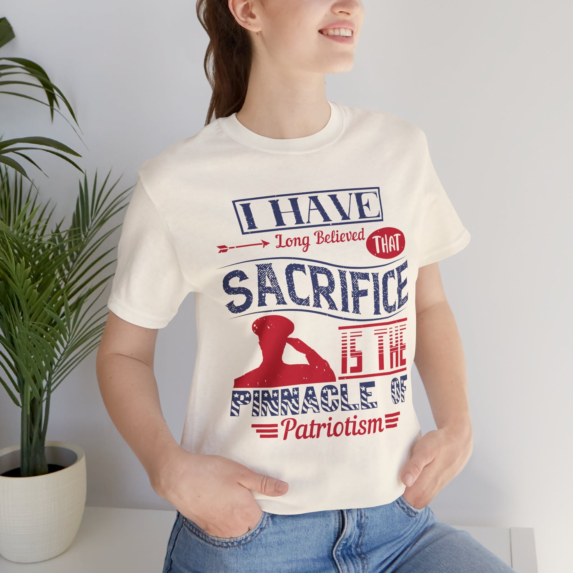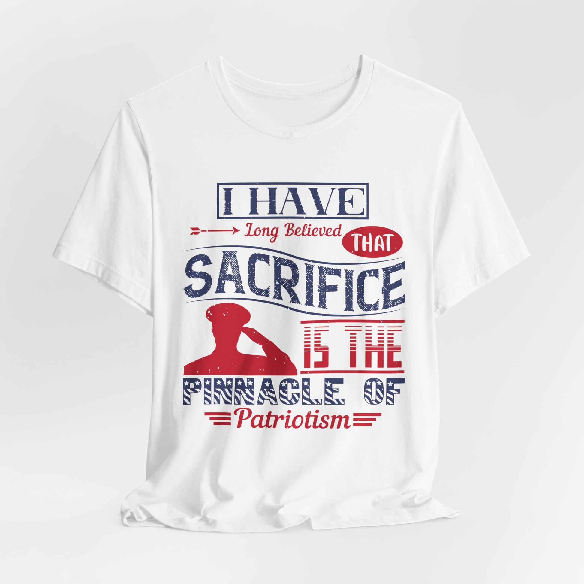 Honor the true meaning of patriotism with the "I Have Long Believed That Sacrifice Is the Pinnacle of Patriotism" Unisex Jersey Tee. This powerful quote serves as a tribute to those who’ve given everything for their country, making it the perfect shirt for Memorial Day and beyond.