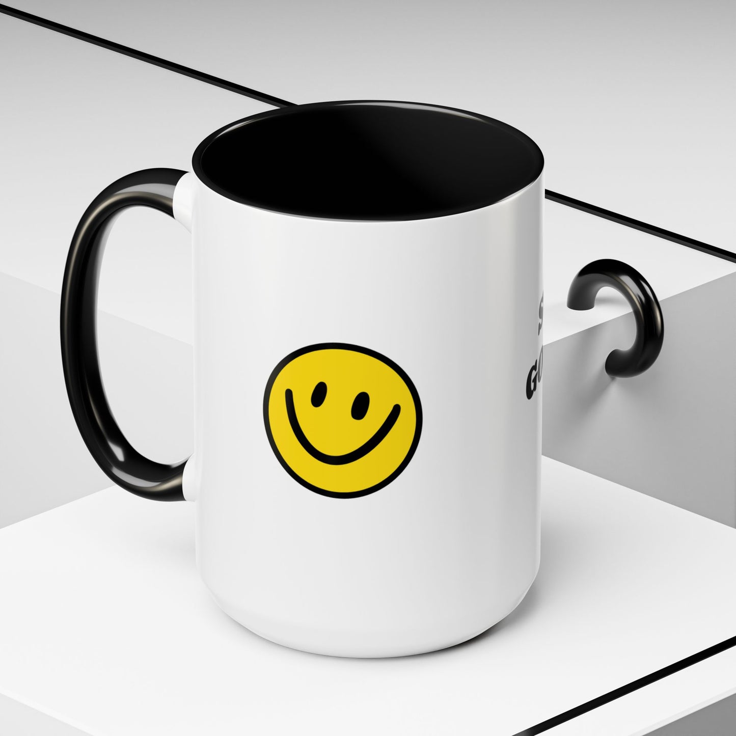 Available in 11oz for a cozy cup or 15oz for a larger helping of positivity, this high-quality ceramic mug features a glossy finish and a vibrant accent handle and rim that add a cheerful touch to your mornings.