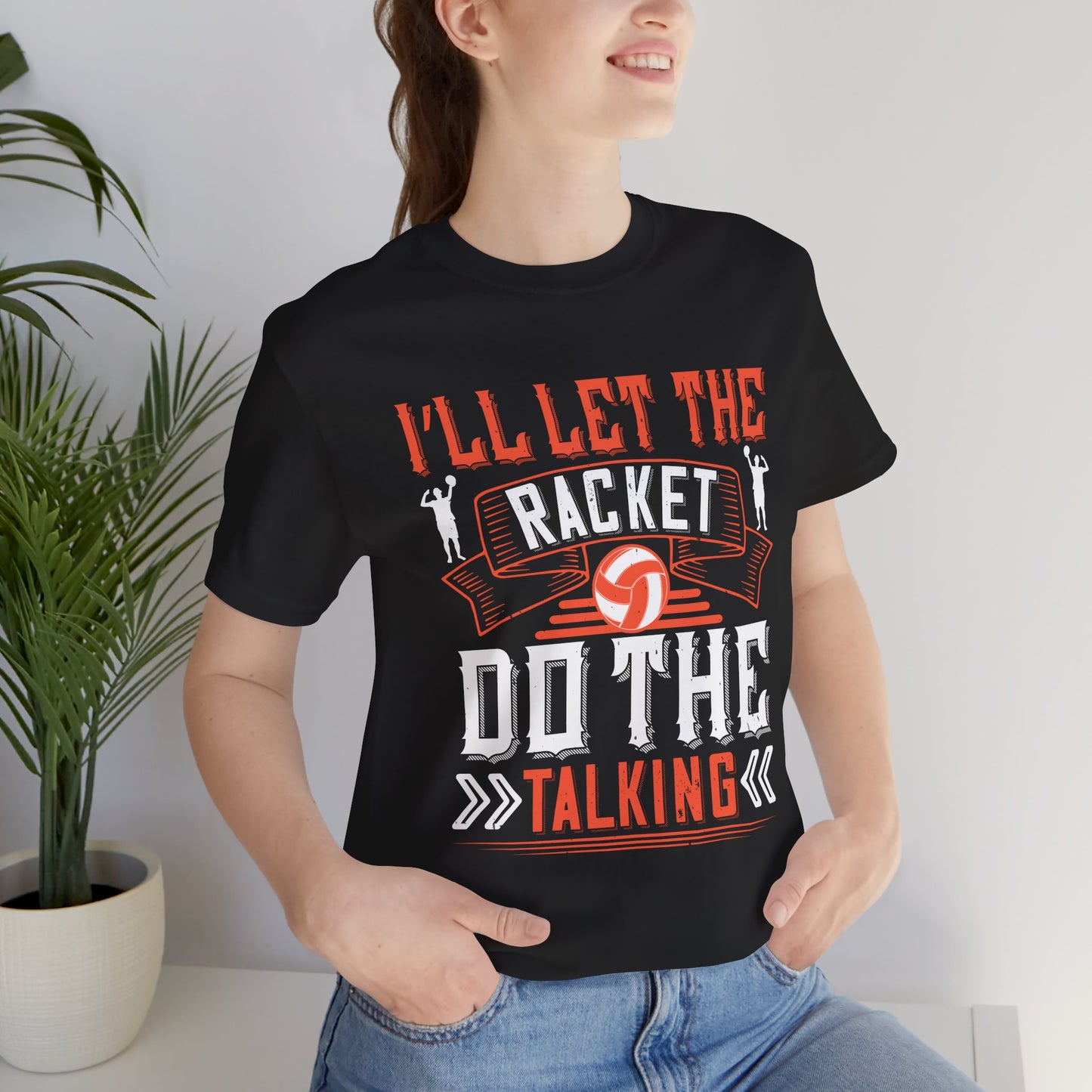 Embrace the philosophy of letting your skills speak for themselves with the "I’ll Let The Racket Do The Talking" tee. Get yours today and show the world that your game says it all!