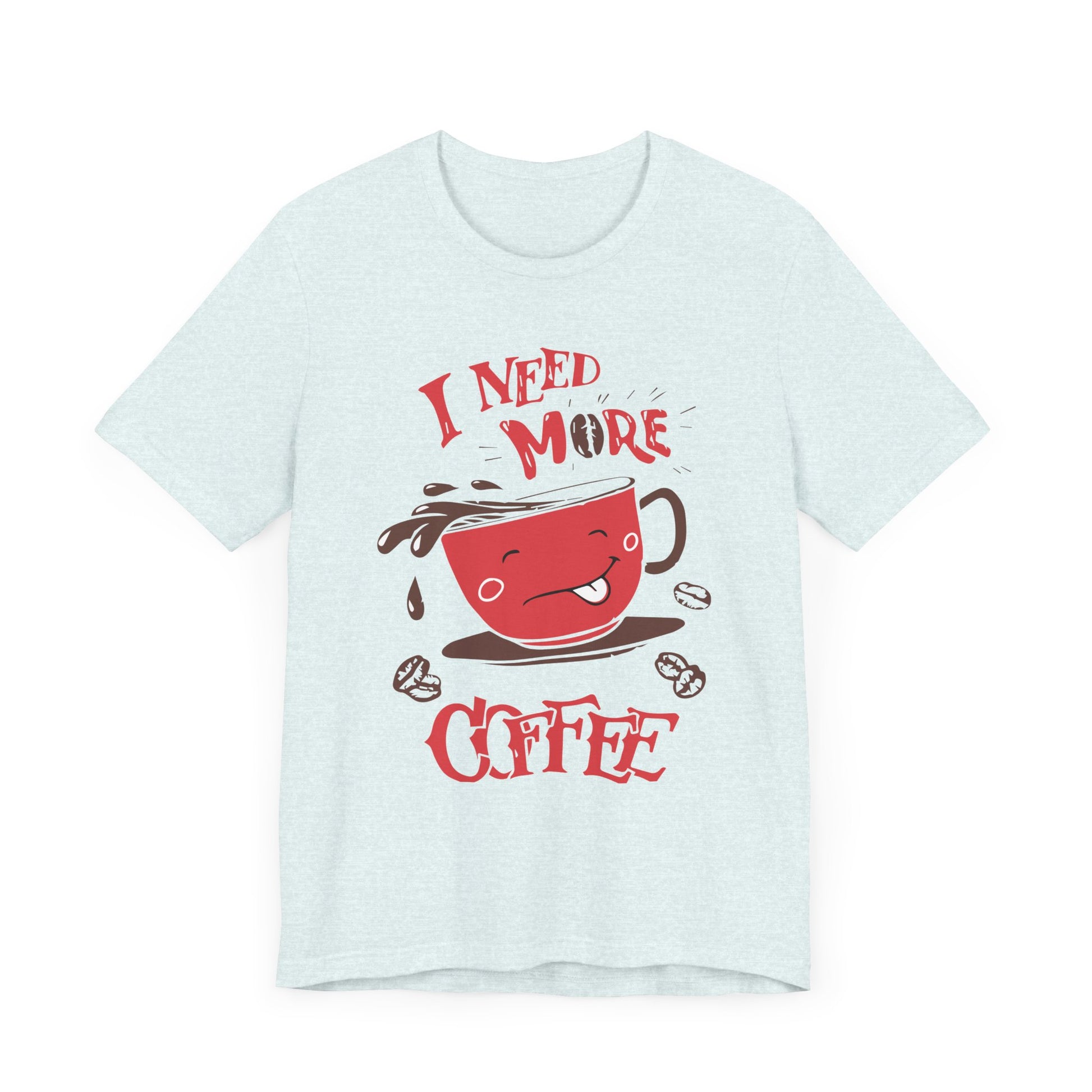 Show off your love for coffee with a touch of humor in the “I Need More Coffee” Unisex Jersey Short Sleeve Tee. Order yours today and embrace the caffeine-fueled lifestyle with style!