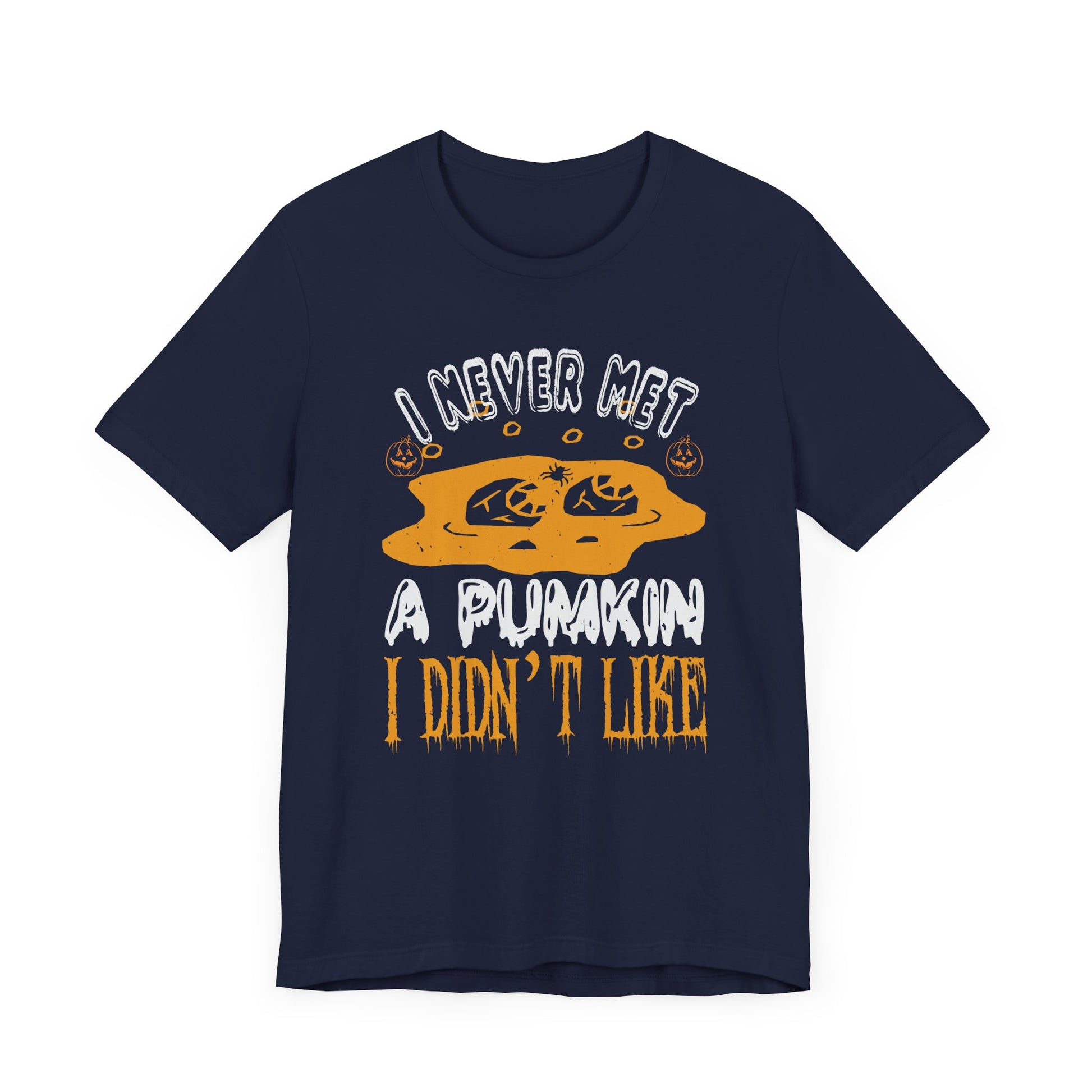 Show off your pumpkin obsession this Halloween with the "I Never Met a Pumpkin I Didn't Like" Unisex Jersey Short Sleeve Tee! Perfect for pumpkin lovers and Halloween enthusiasts alike, this playful tee is the ideal blend of humor and festive spirit.