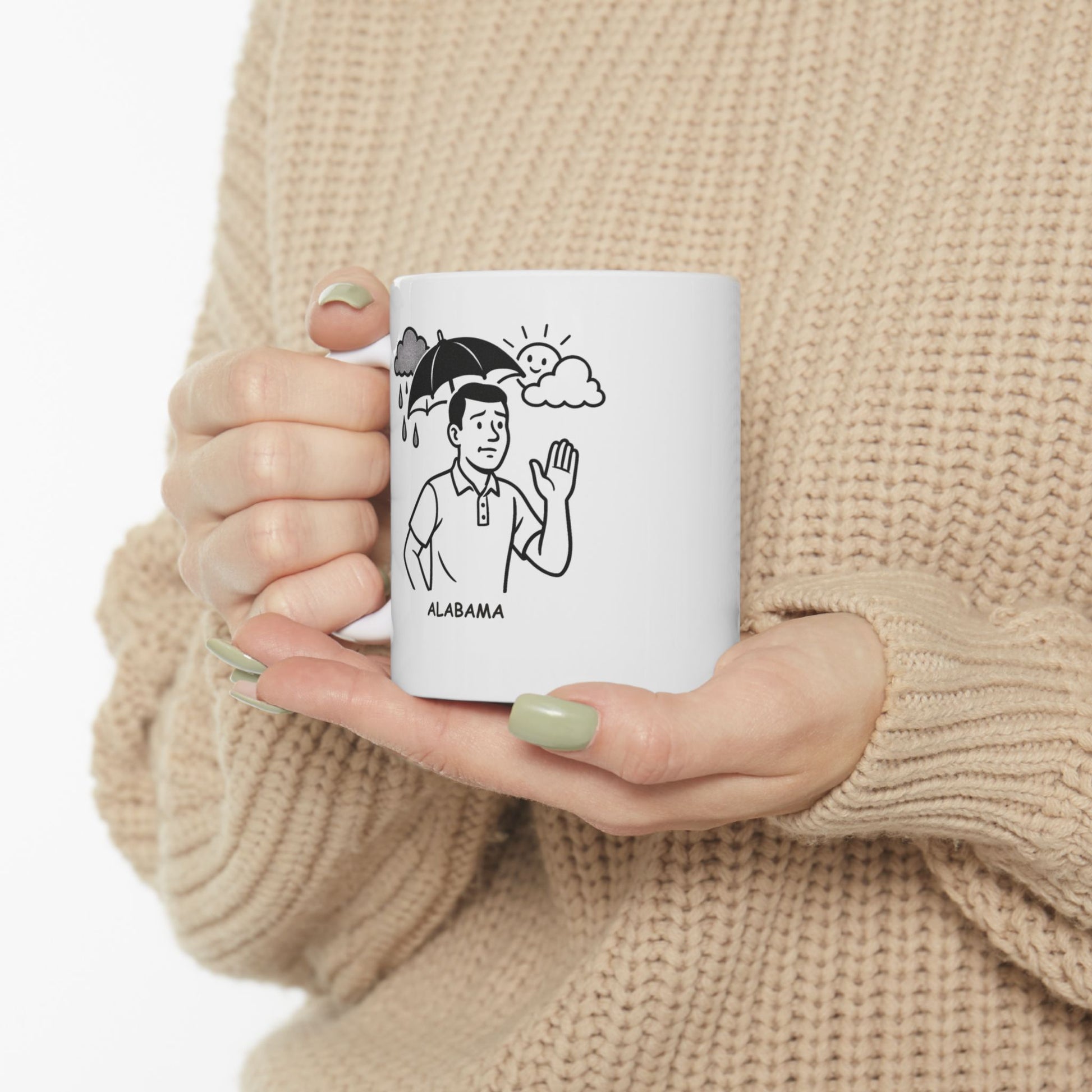 Capture the ever-changing charm of Alabama with this 'If you don’t like Alabama weather, just wait five minutes' ceramic mug. Perfect for those who know the unpredictable beauty of Southern weather, this mug adds a touch of humor to your daily routine. Whether you're sipping coffee, tea, or your favorite drink, it’s a fun reminder that in Alabama, change is always just around the corner.