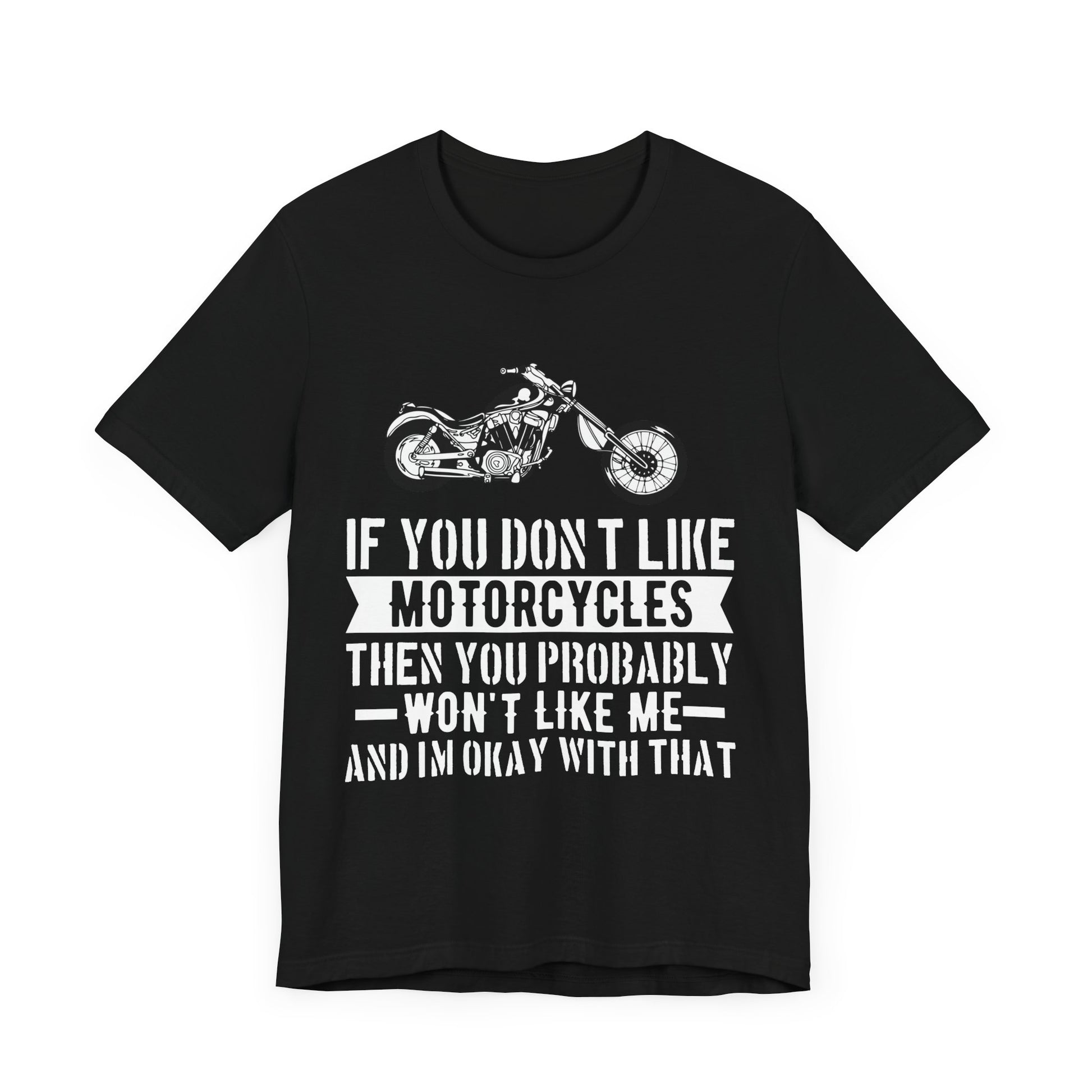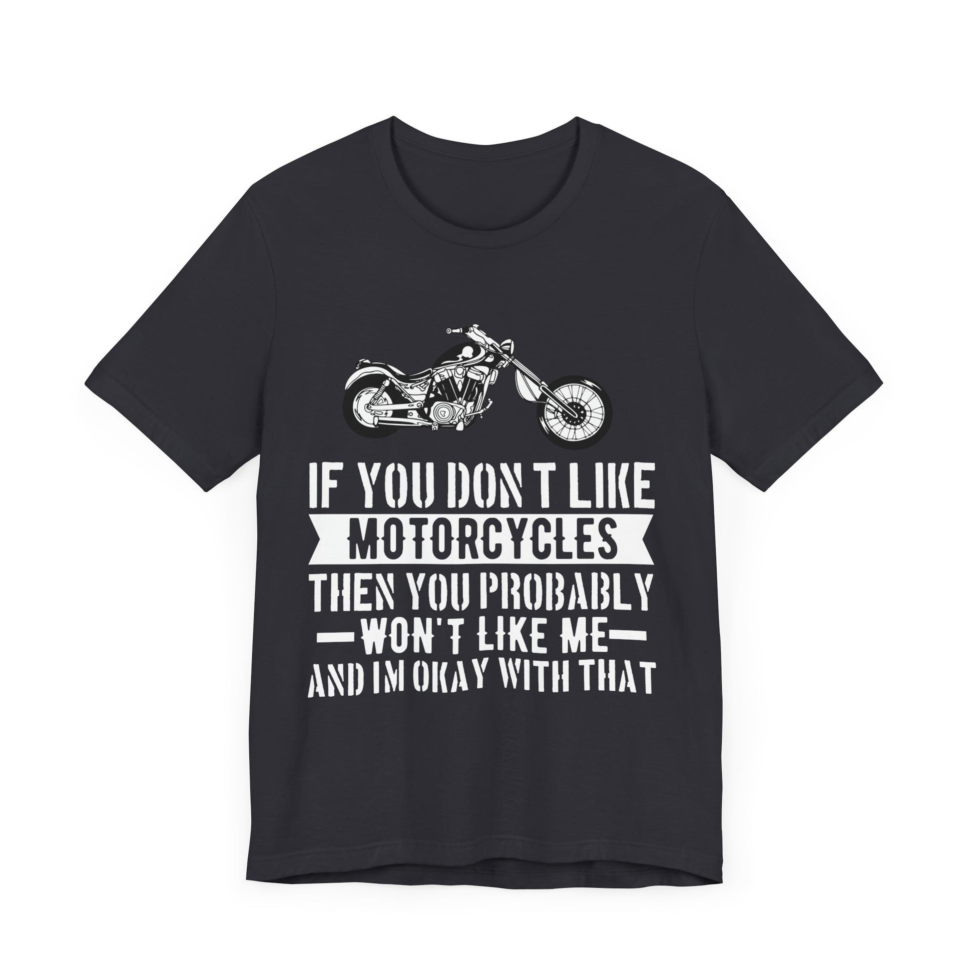 Let the world know where you stand with the If You Don't Like Motorcycles, Then You Probably Won't Like Me and I'm Okay with That tee. Order yours today and wear your passion with pride!