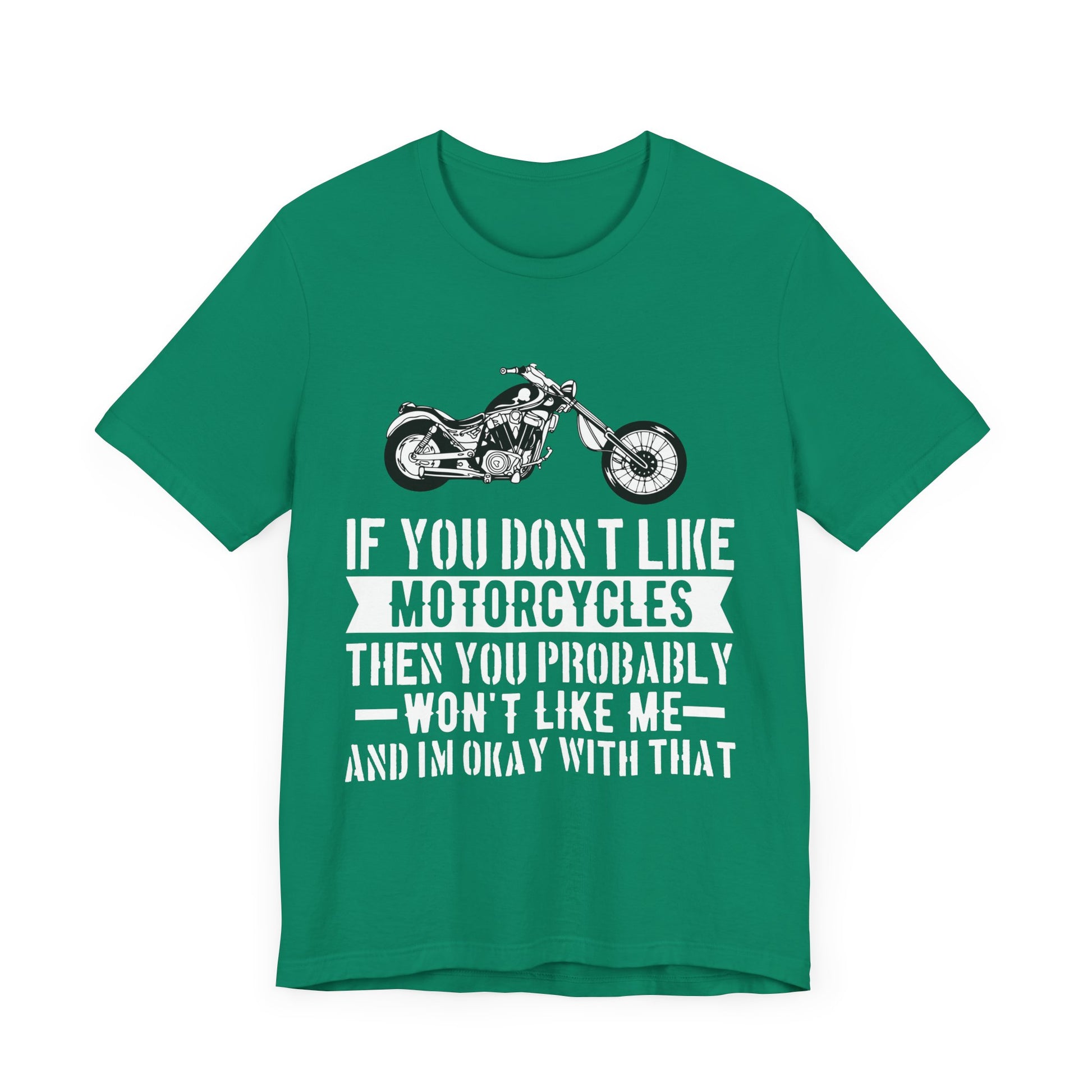 Show off your passion for the open road and unapologetic spirit with our If You Don't Like Motorcycles, Then You Probably Won't Like Me and I'm Okay with That Unisex Jersey Short Sleeve Tee! This tee is perfect for those who embrace their love for biking and are proud to stand out from the crowd.