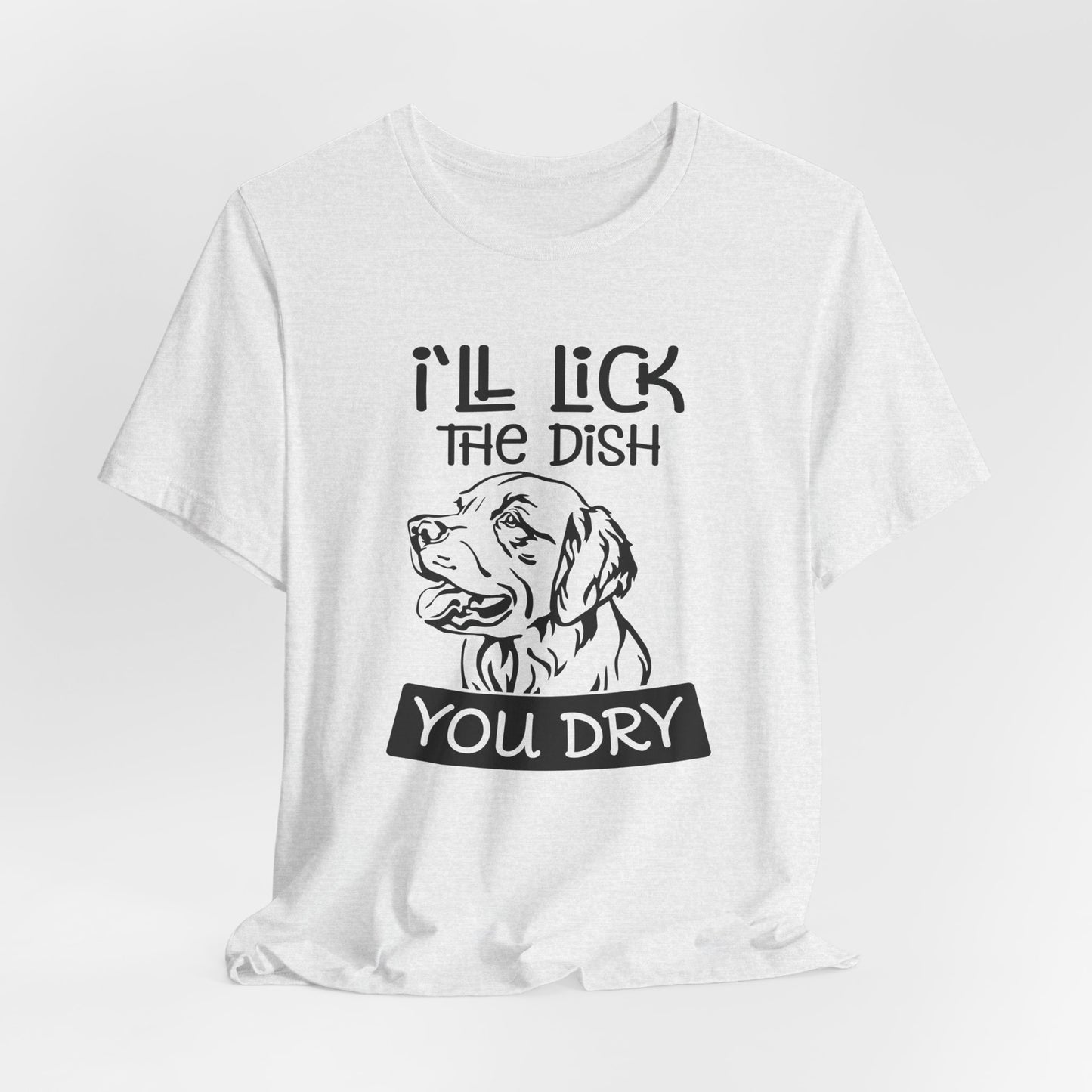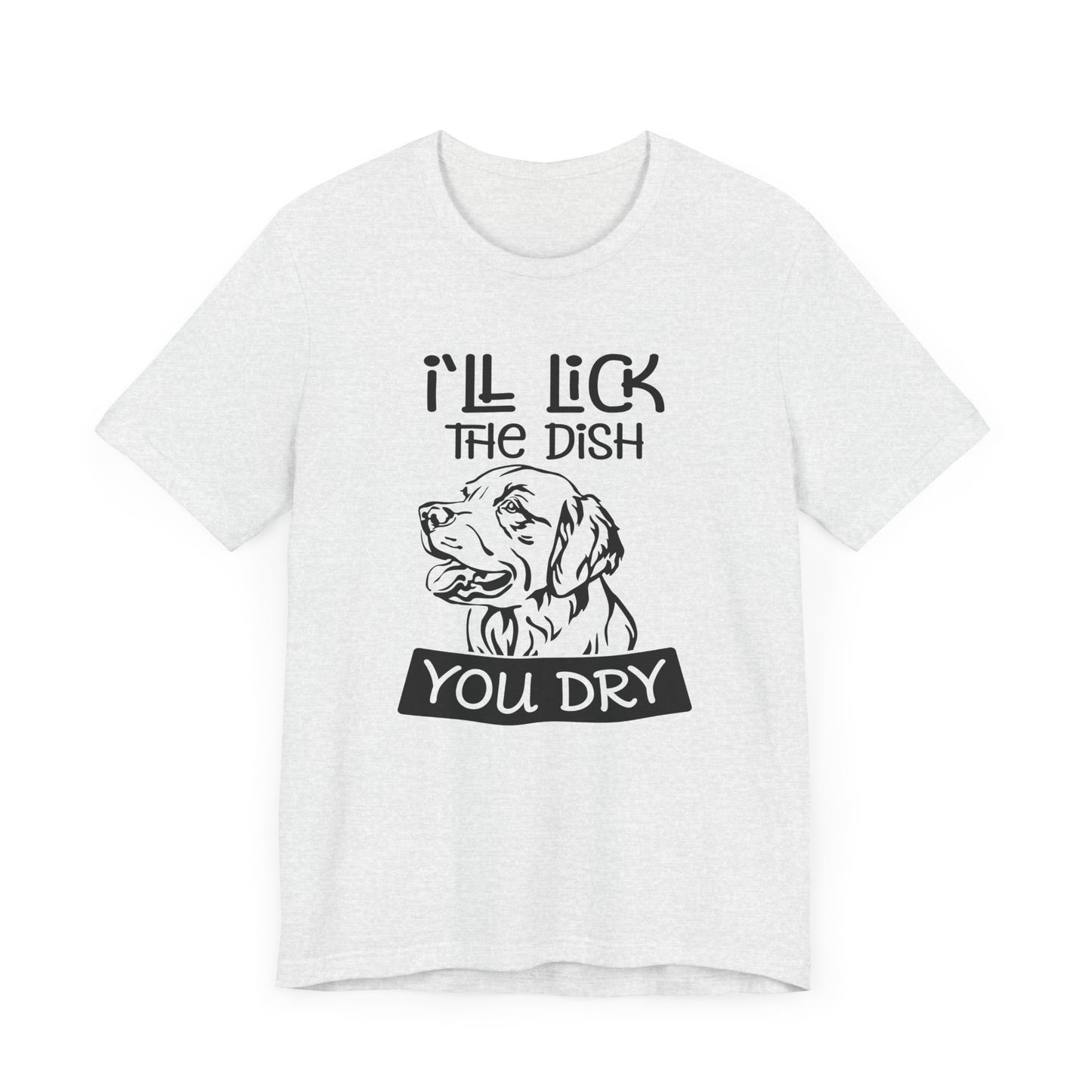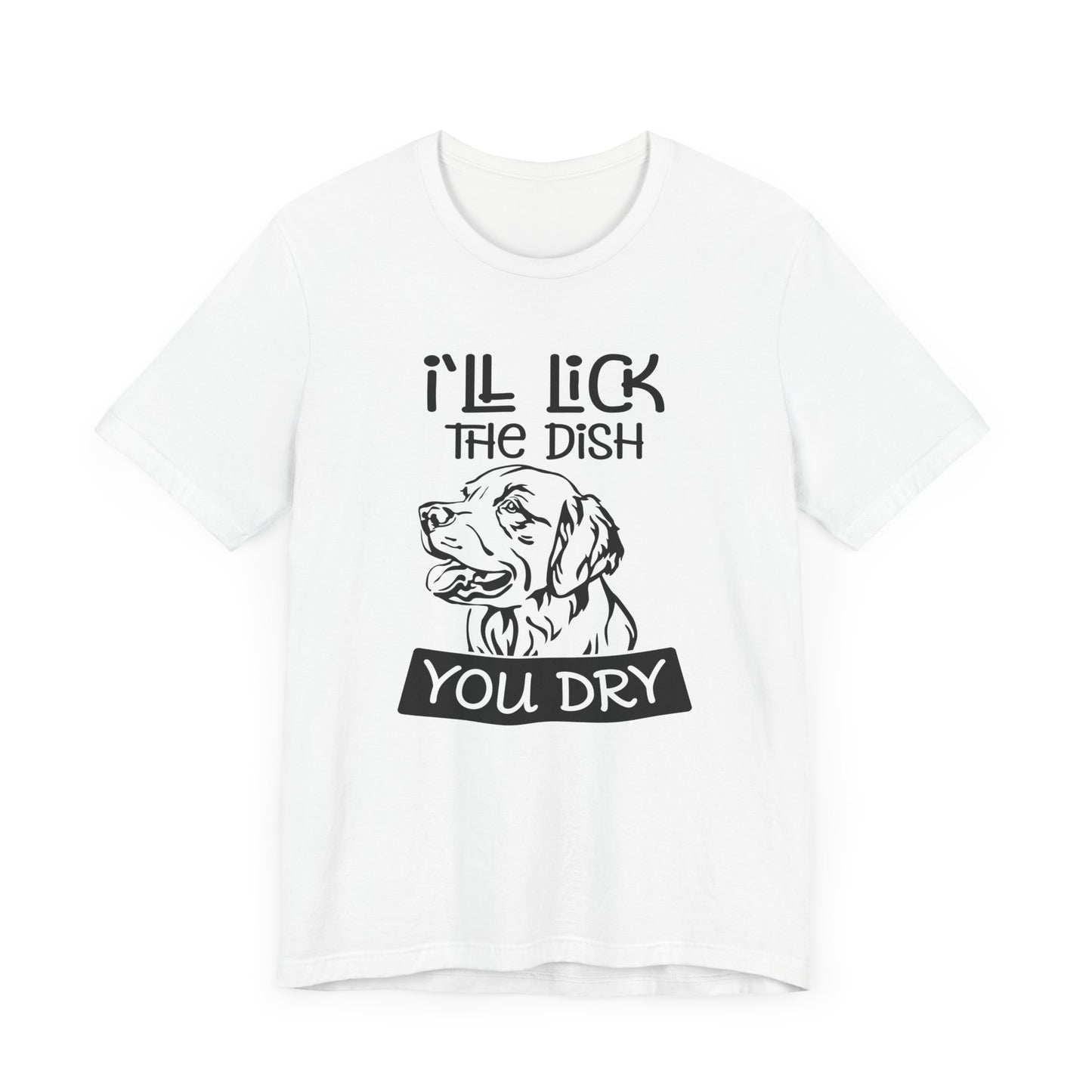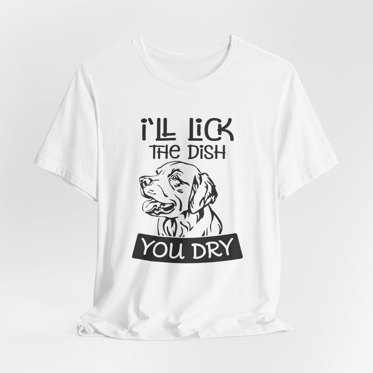 Show your playful side with our "I'll Lick The Dish You Dry" tee. Get yours today and share a laugh with fellow dog lovers!