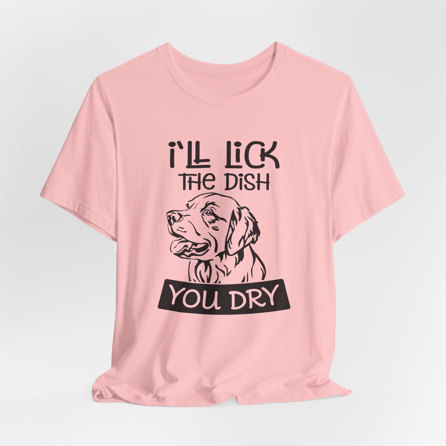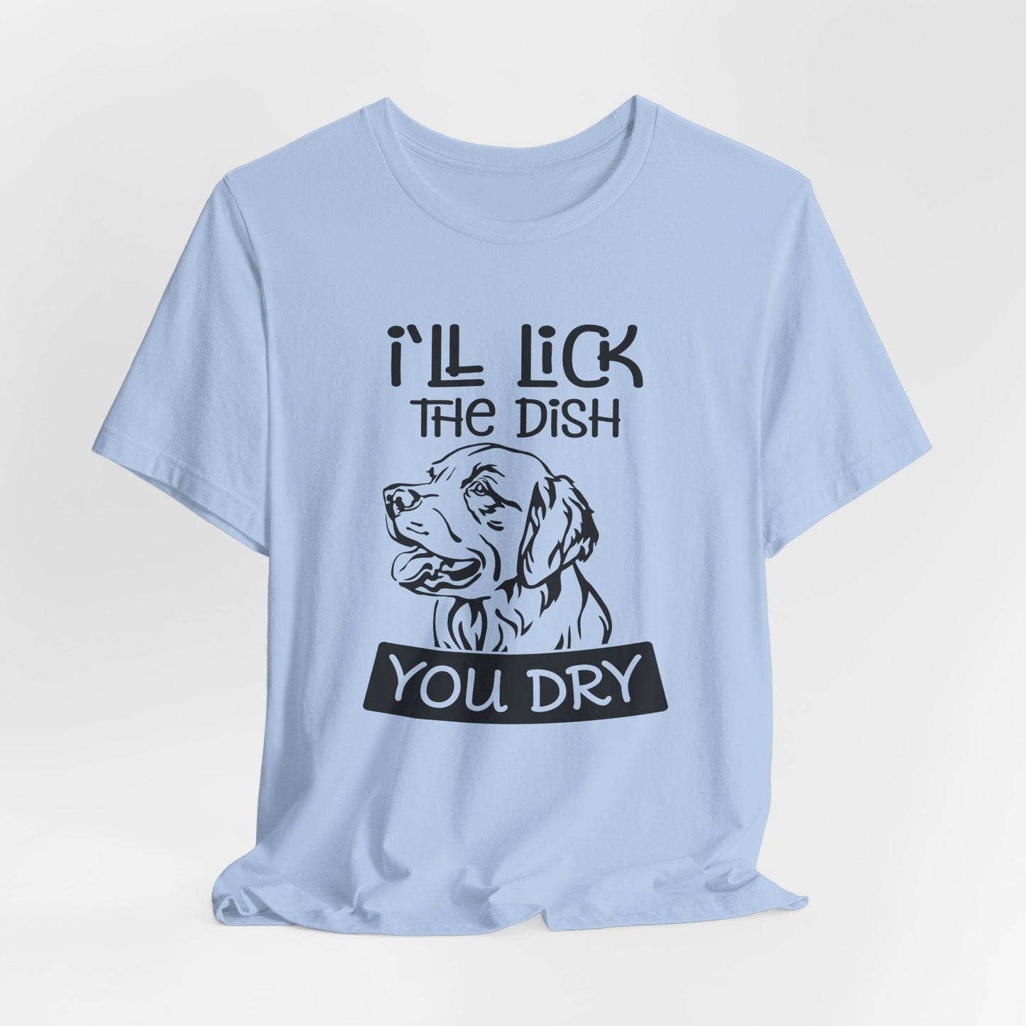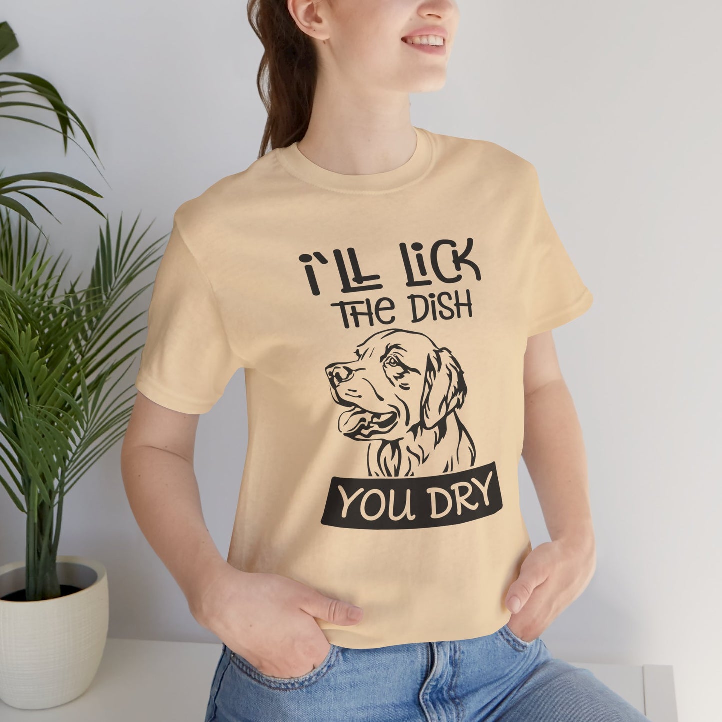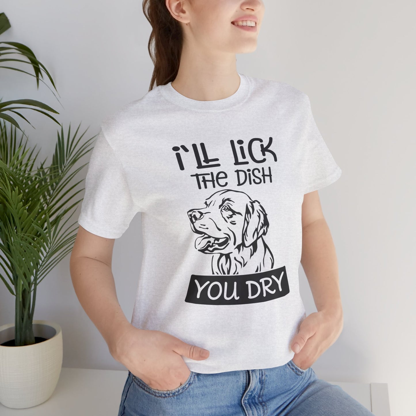 Show your playful side with our "I'll Lick The Dish You Dry" tee. Get yours today and share a laugh with fellow dog lovers!