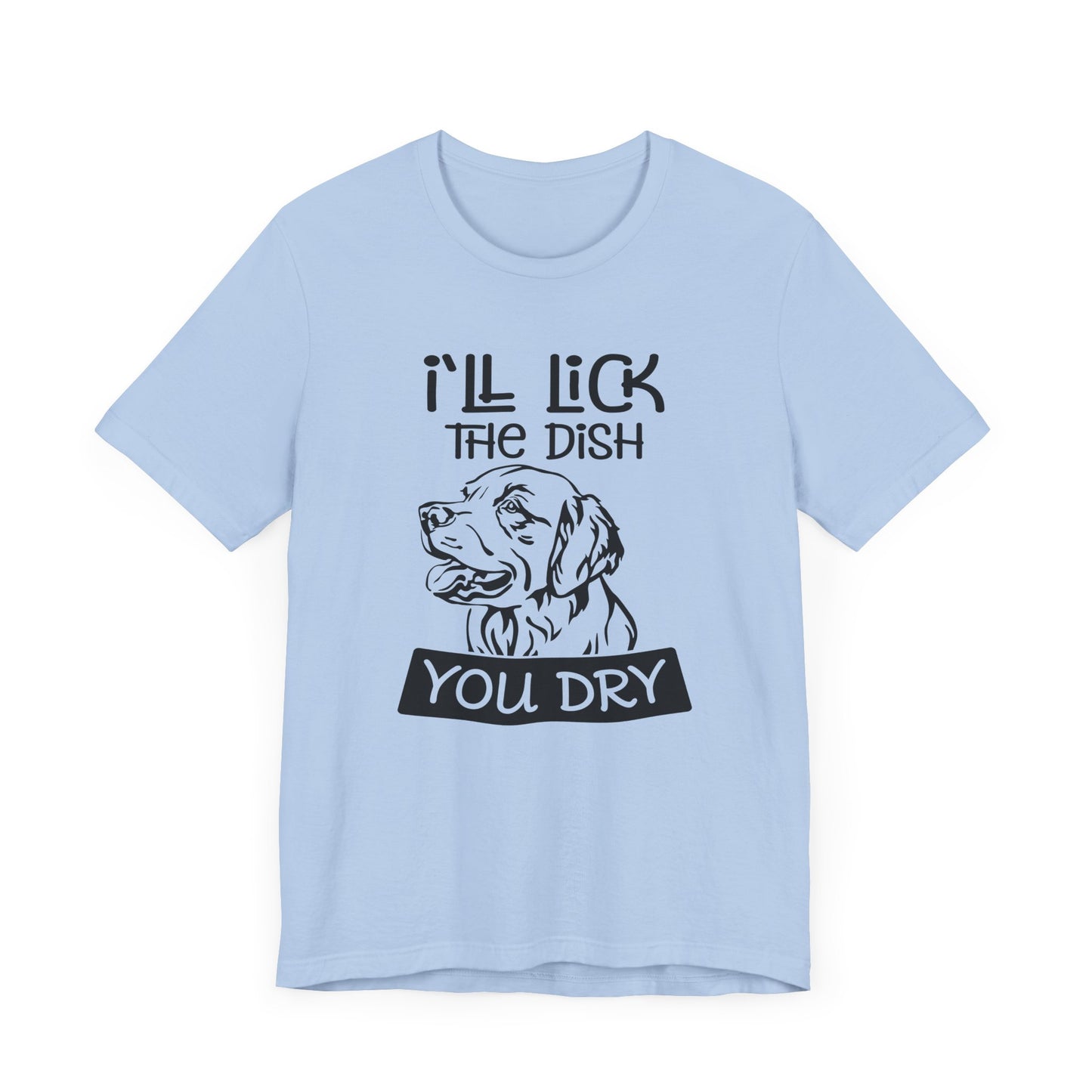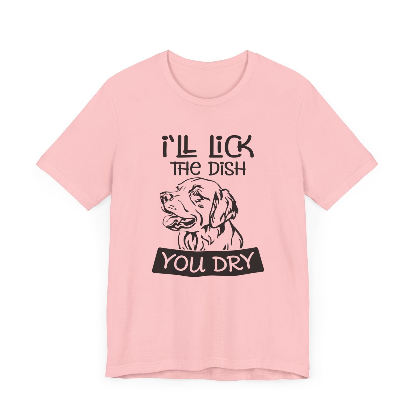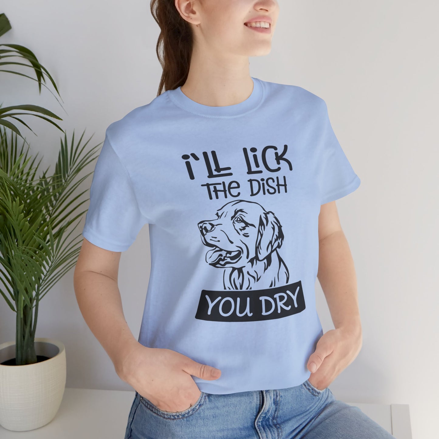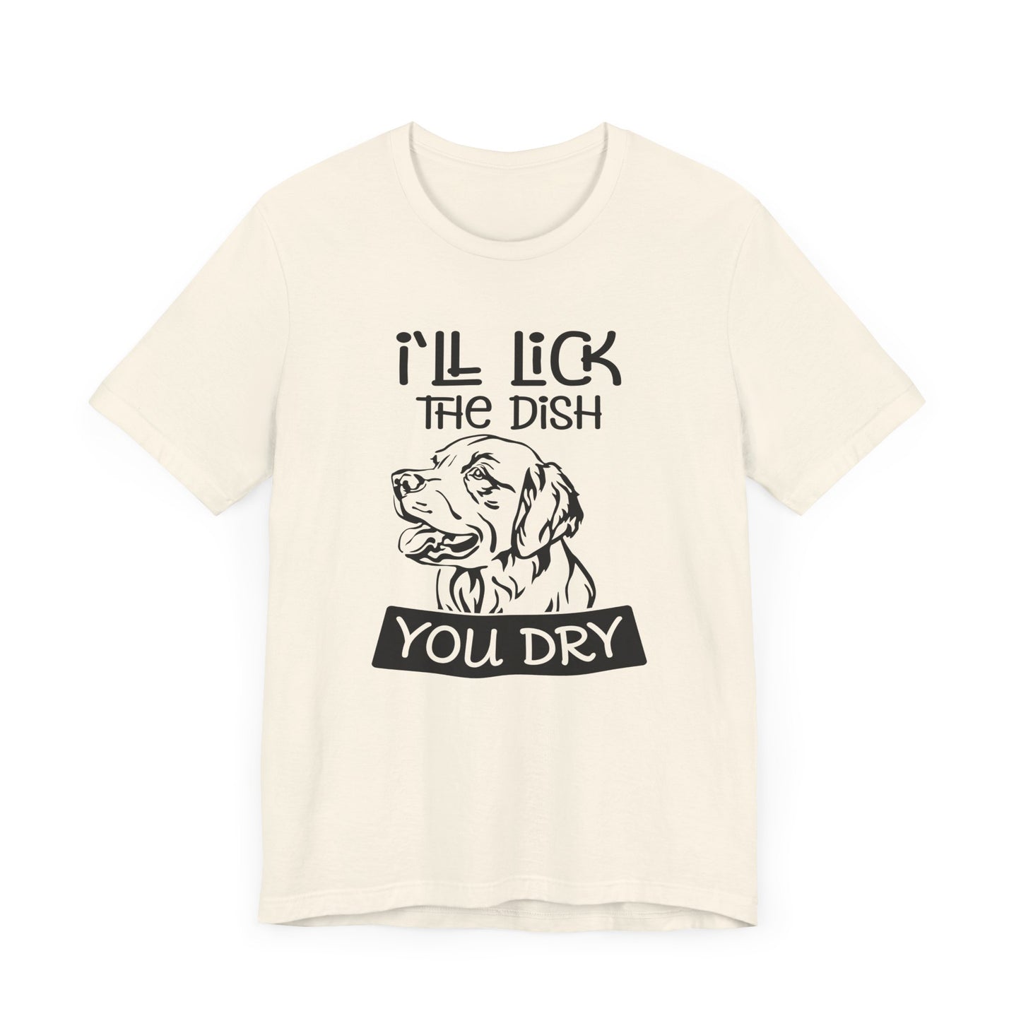 Show your playful side with our "I'll Lick The Dish You Dry" tee. Get yours today and share a laugh with fellow dog lovers!