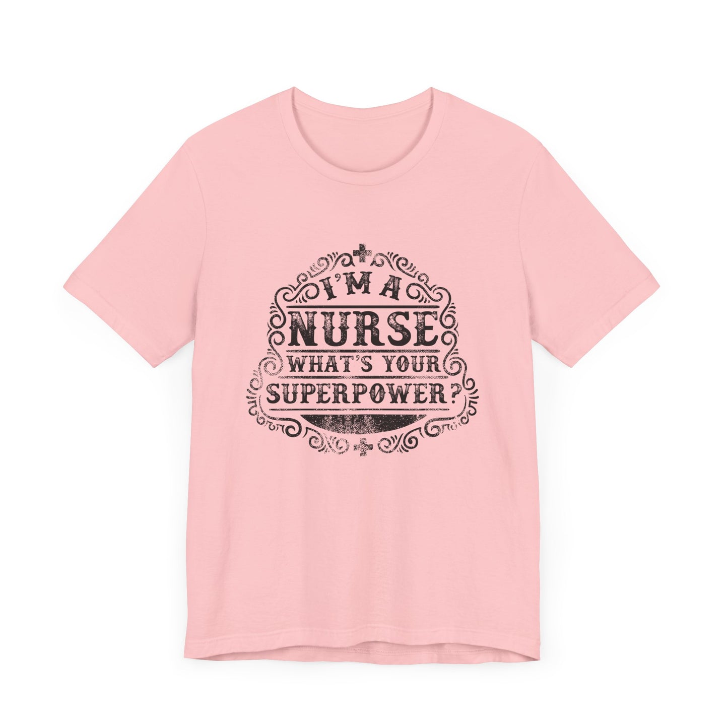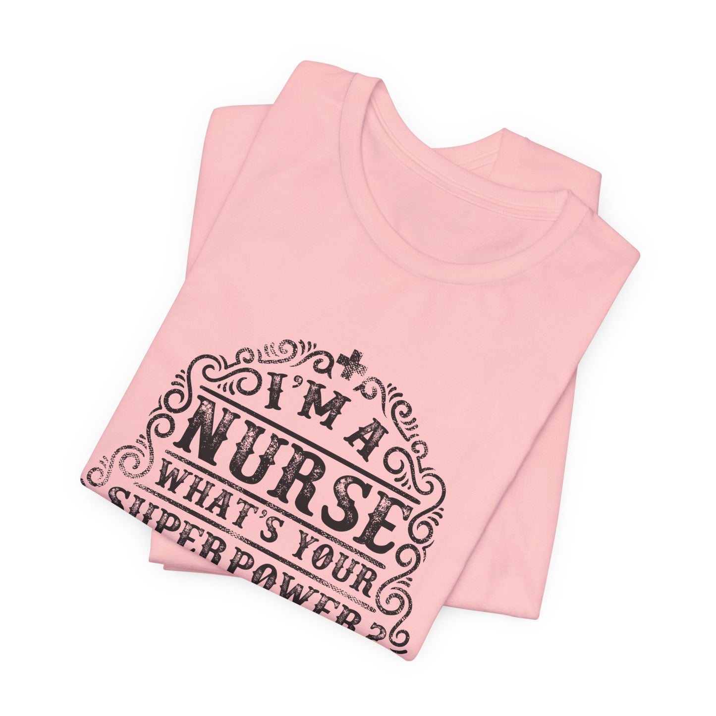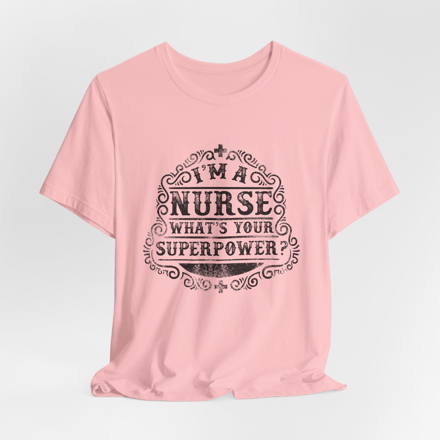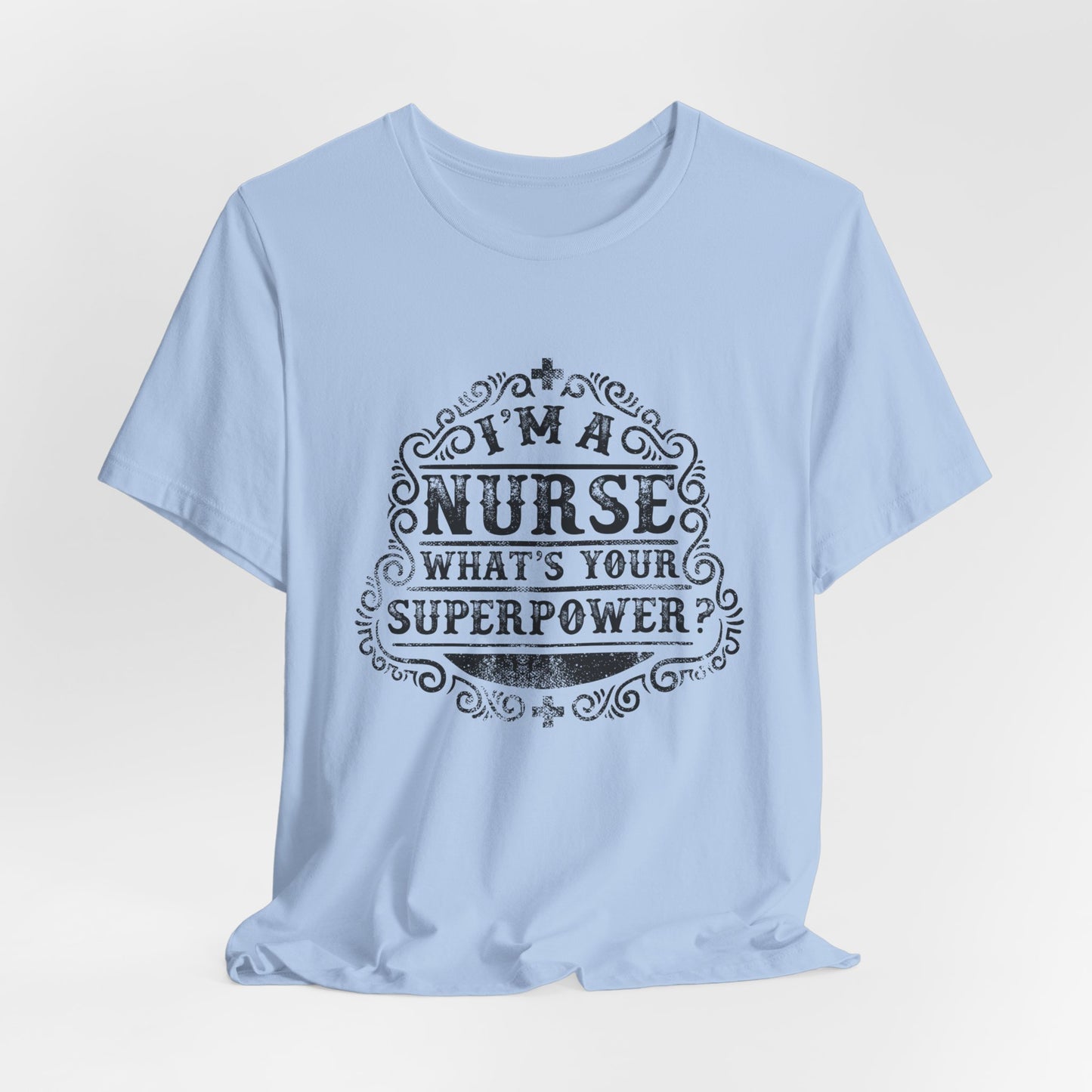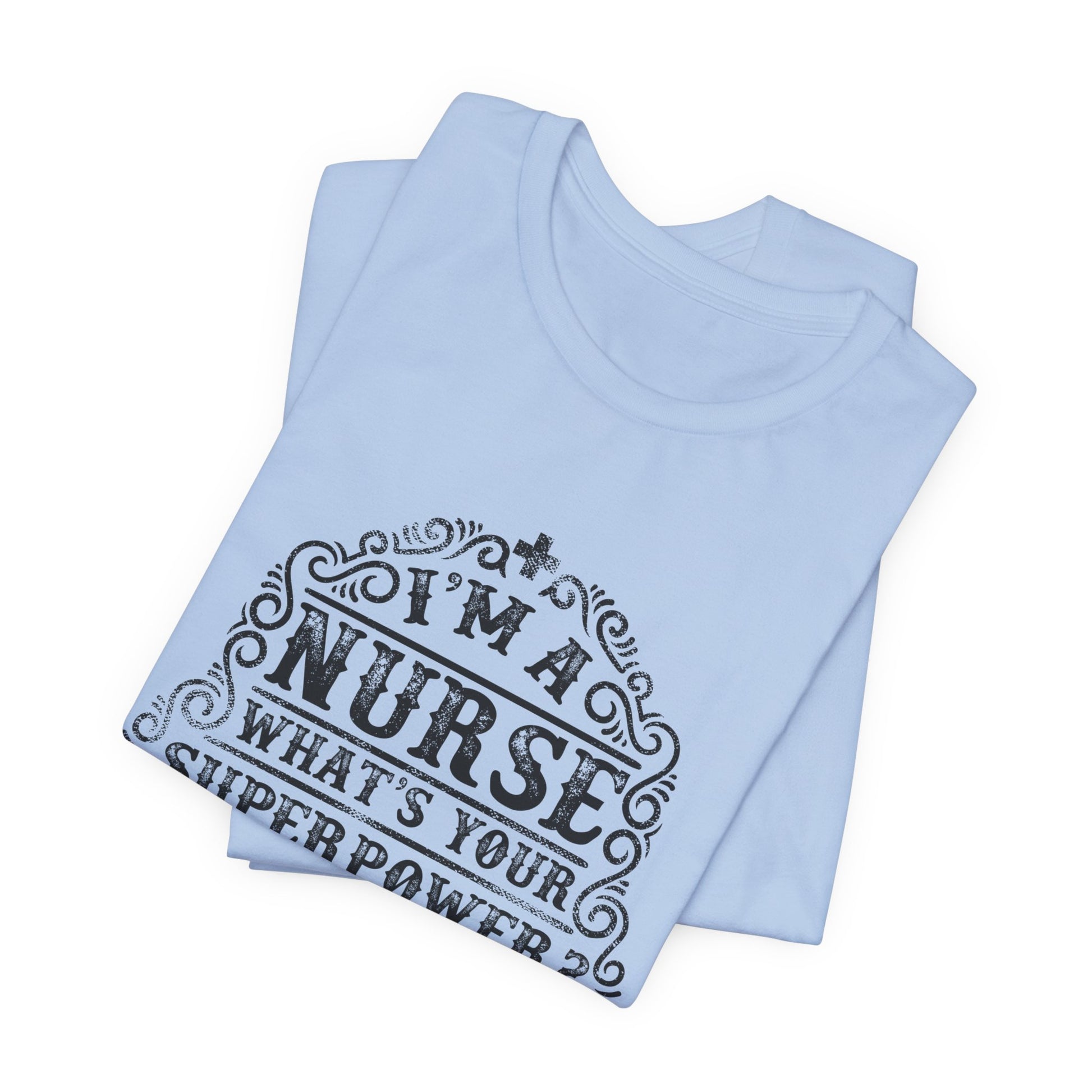 Embrace your superpowers with our "I'm A Nurse, What's Your Superpower?" tee. Whether you’re treating yourself or giving it as a gift, this t-shirt is a fun and empowering way to celebrate the extraordinary impact of nursing. Get yours today and let your superhero side shine!