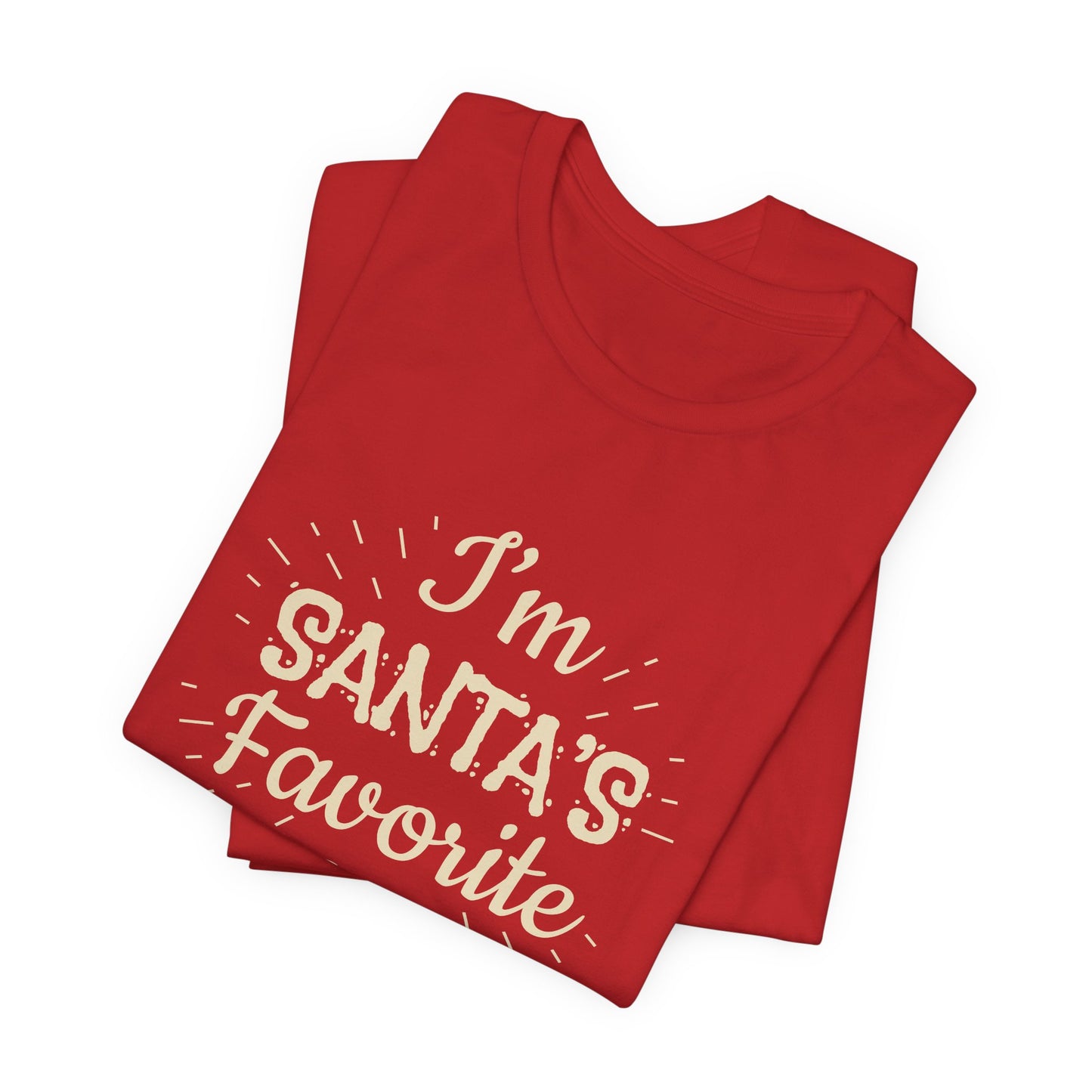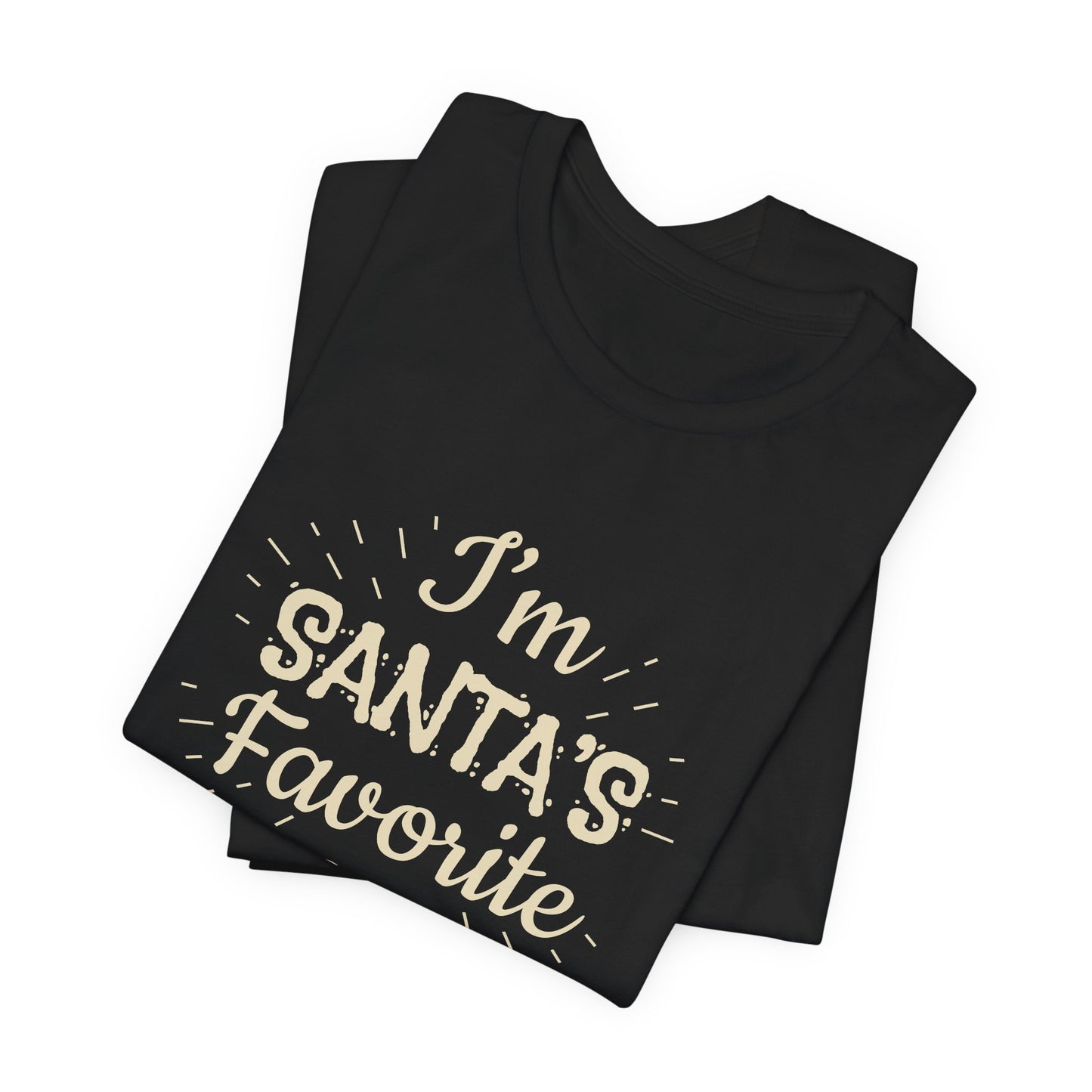 Celebrate your special spot on Santa's list with our "I'm Santa's Favorite" Unisex Jersey Short Sleeve Tee. Whether you're enjoying festive activities, attending Christmas parties, or just relaxing at home, this tee is the perfect way to showcase your holiday pride. Get yours today and let everyone know you’re at the top of Santa’s nice list!