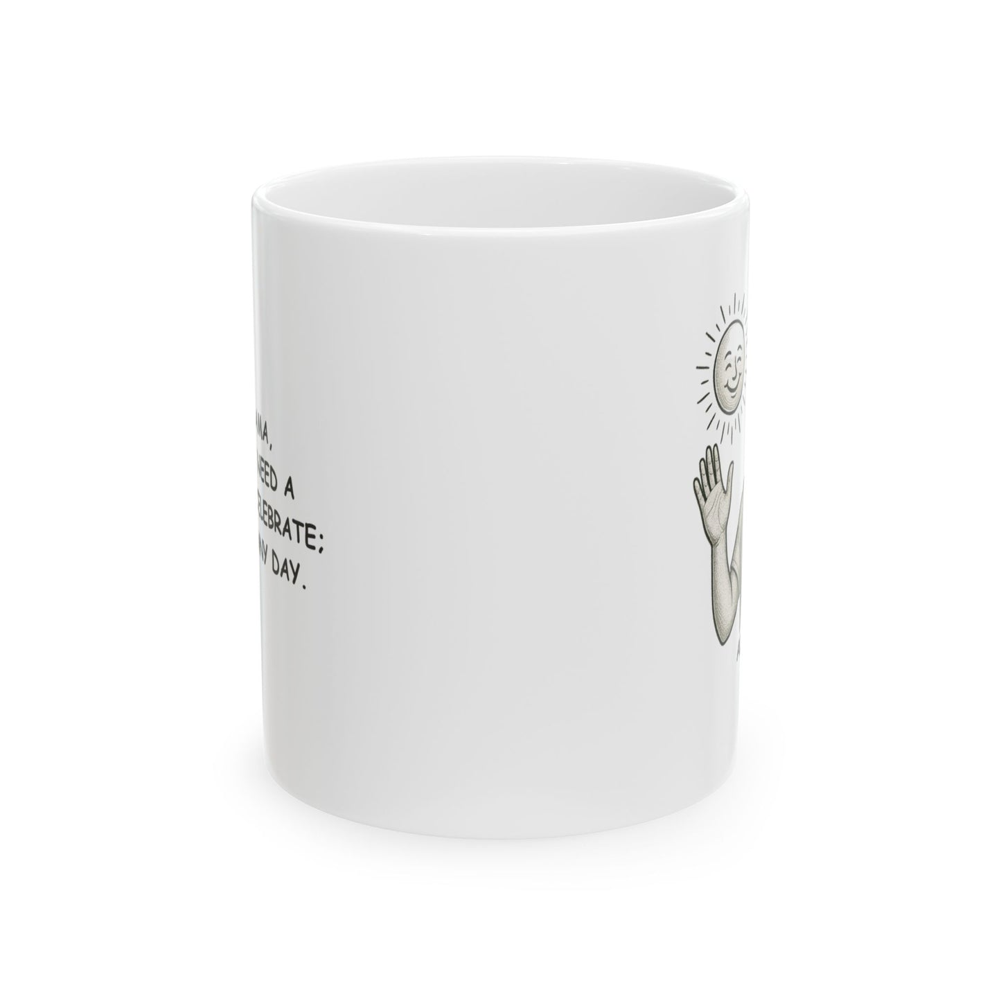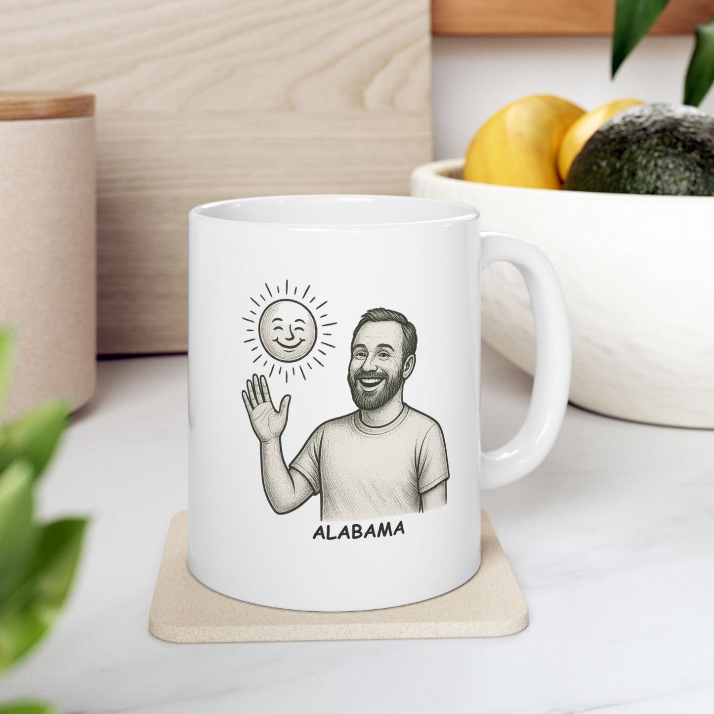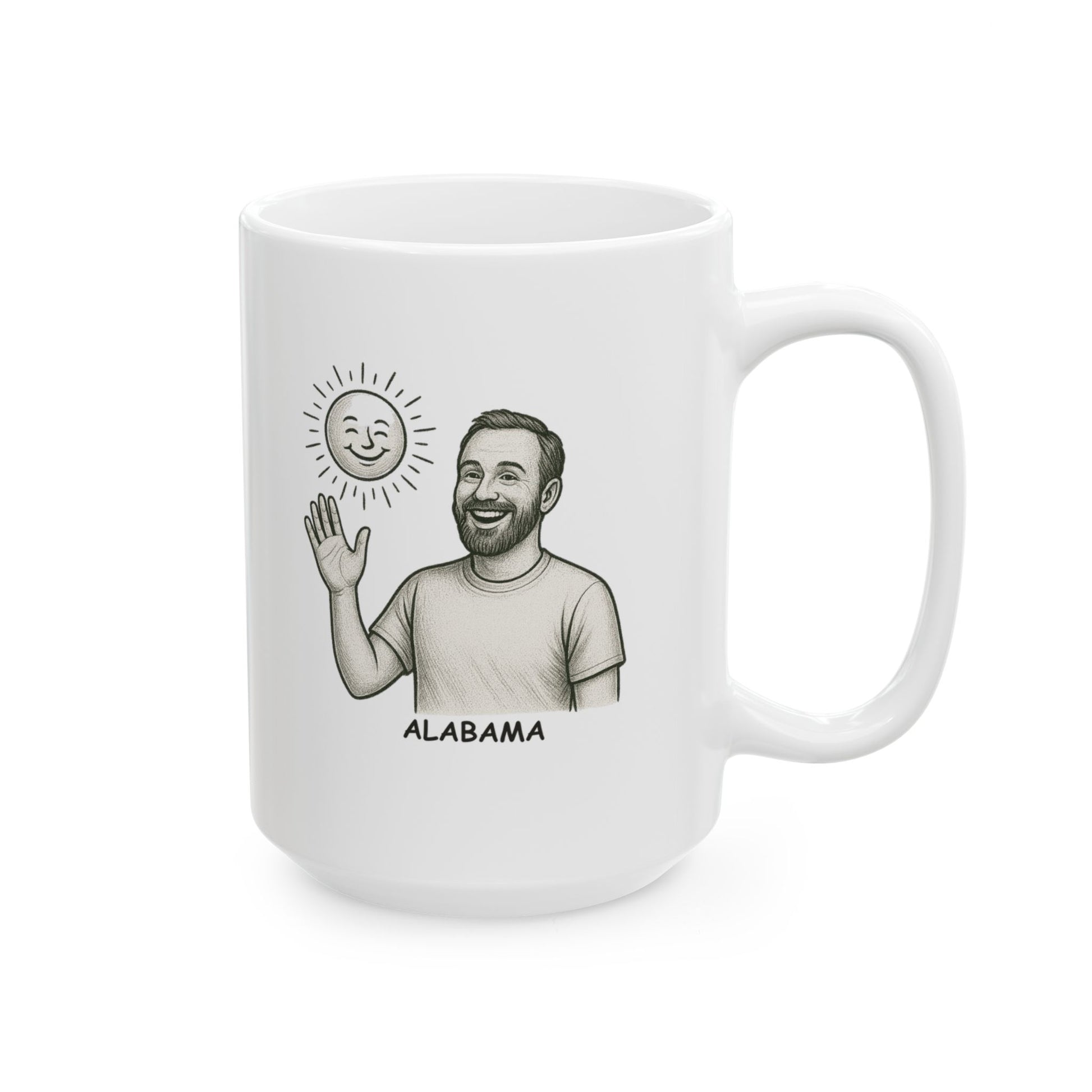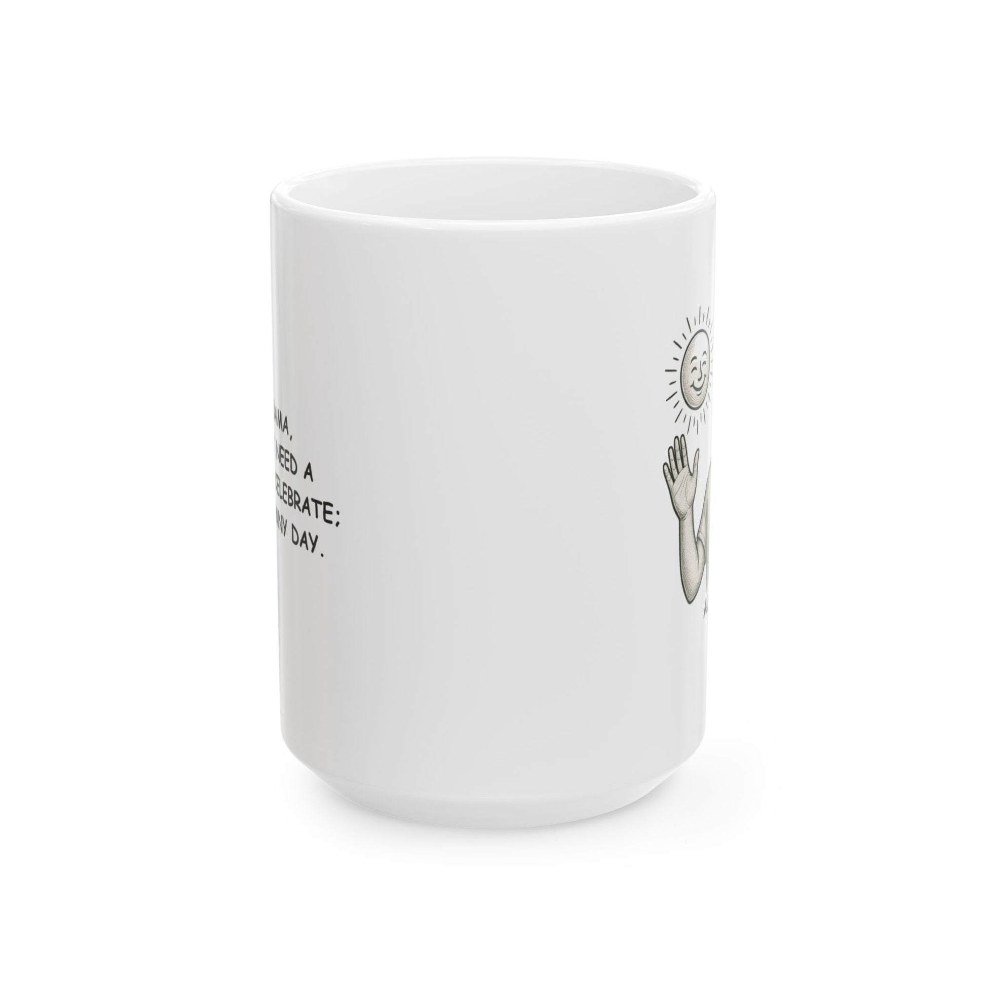 Celebrate the carefree spirit of Alabama with this 'In Alabama, we don’t need a reason to celebrate; just a sunny day' ceramic mug. Perfect for those who know that every day is worth enjoying in the South, this mug brings a little sunshine to your morning coffee or afternoon tea. A charming reminder that in Alabama, it’s always a good time to celebrate life’s simple pleasures.