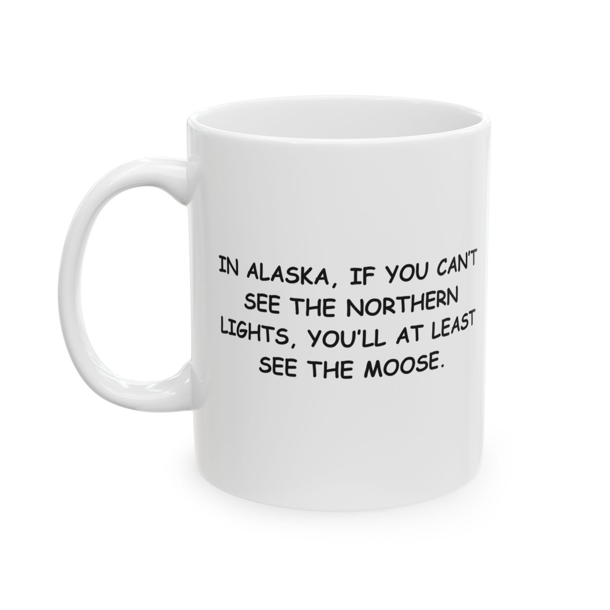 "In Alaska, if you can’t see the Northern Lights, you’ll at least see the moose." Ceramic Mug - 11oz 15oz - 13053