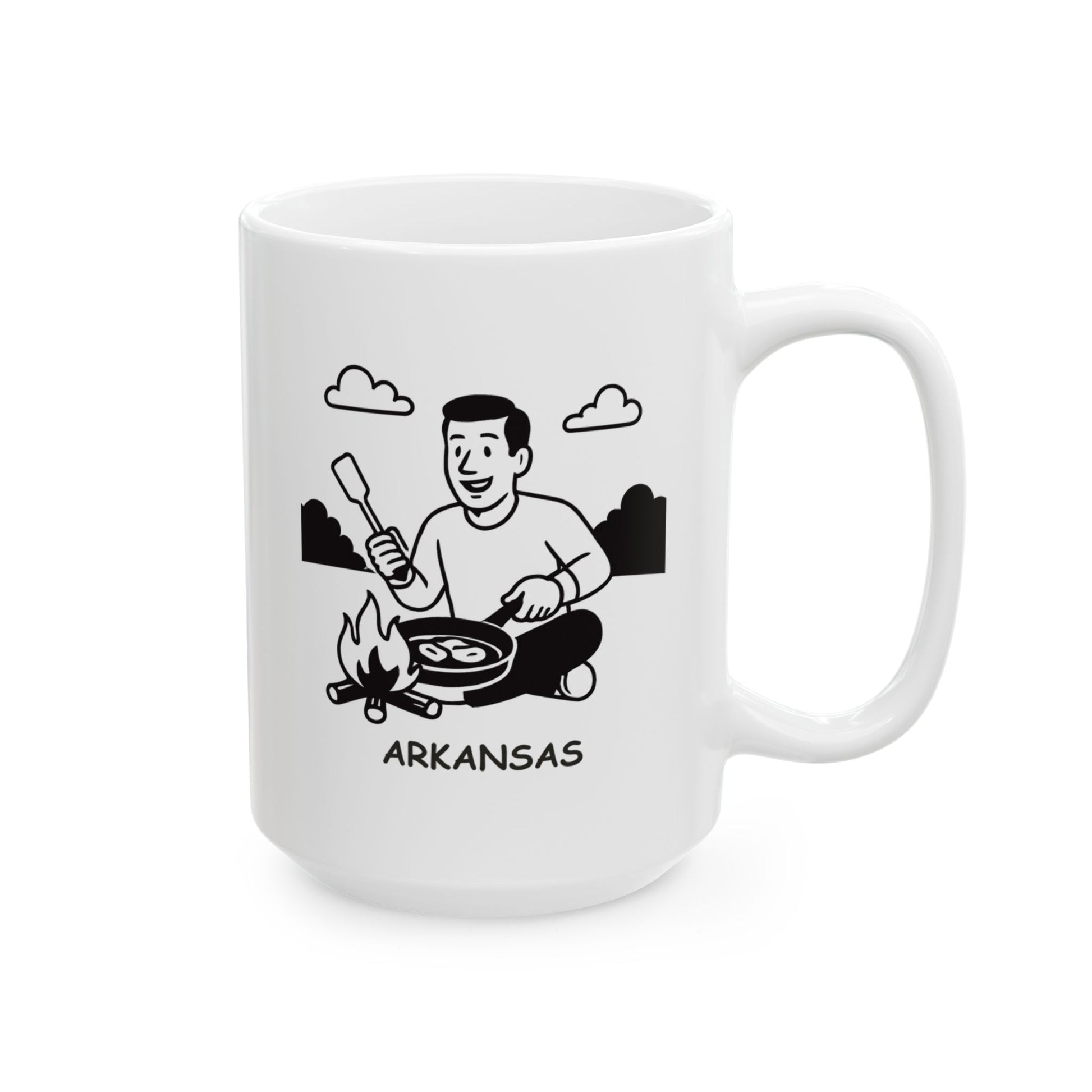 "In Arkansas, we don’t need a fancy restaurant; we just need a campfire and a skillet." Ceramic Mug - 13328