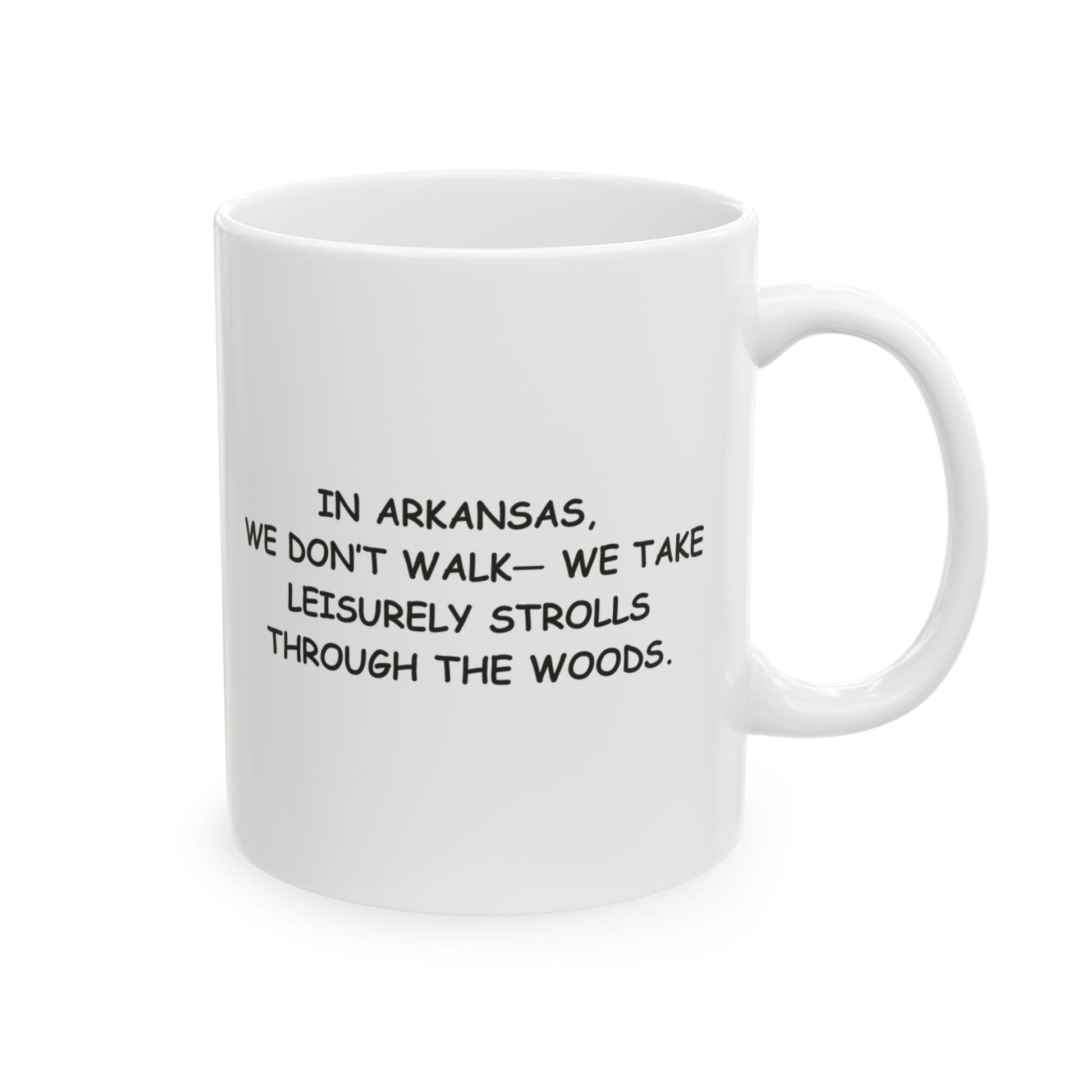 "In Arkansas, we don’t walk— we take leisurely strolls through the woods." Ceramic Mug - 13306