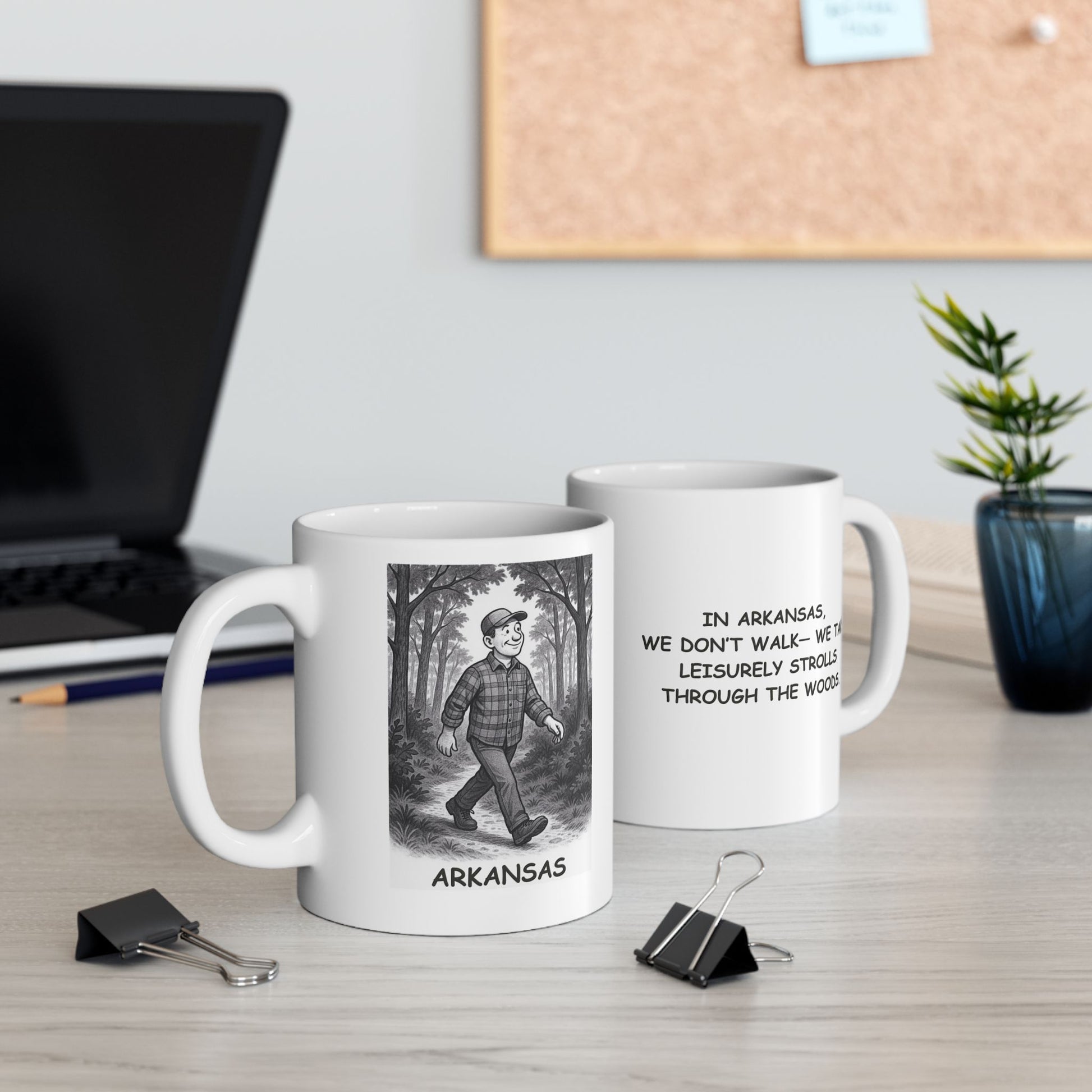 Why rush when the trees are this pretty? Our “In Arkansas, we don’t walk—we take leisurely strolls through the woods.” ceramic mug is a tribute to the slower, sweeter pace of life in the Natural State. Perfect for those who find peace on forest paths and joy in every step.