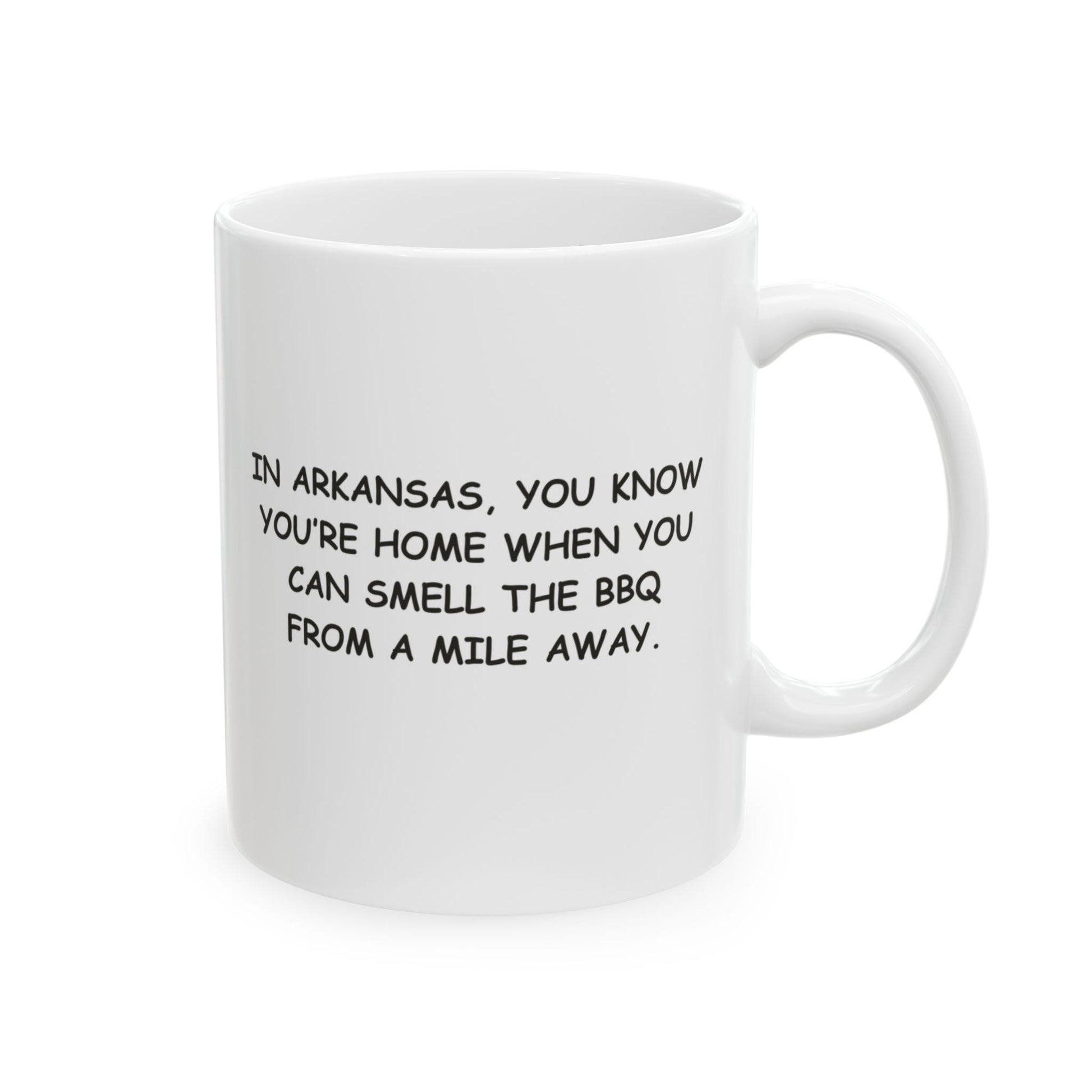 "In Arkansas, you know you’re home when you can smell the BBQ from a mile away." Ceramic Mug - 13342