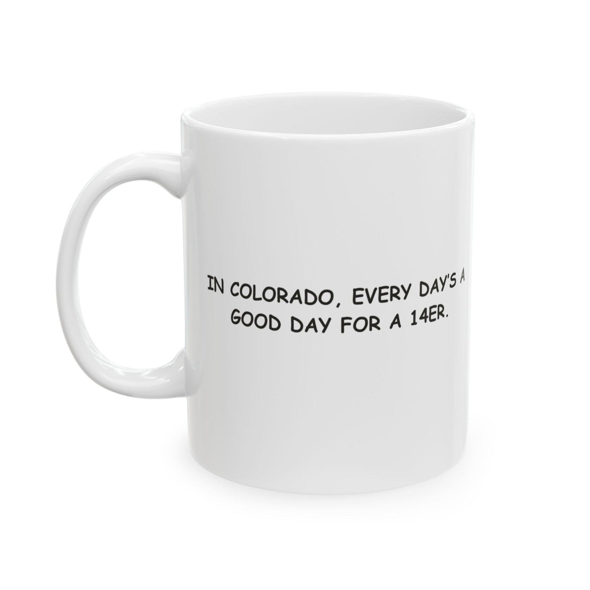 "In Colorado, every day’s a good day for a 14er." Ceramic Mug - 13462