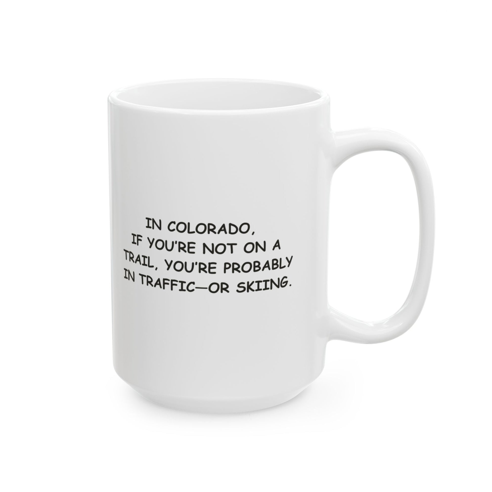 "In Colorado, if you’re not on a trail, you’re probably in traffic—or skiing." Ceramic Mug - 13506