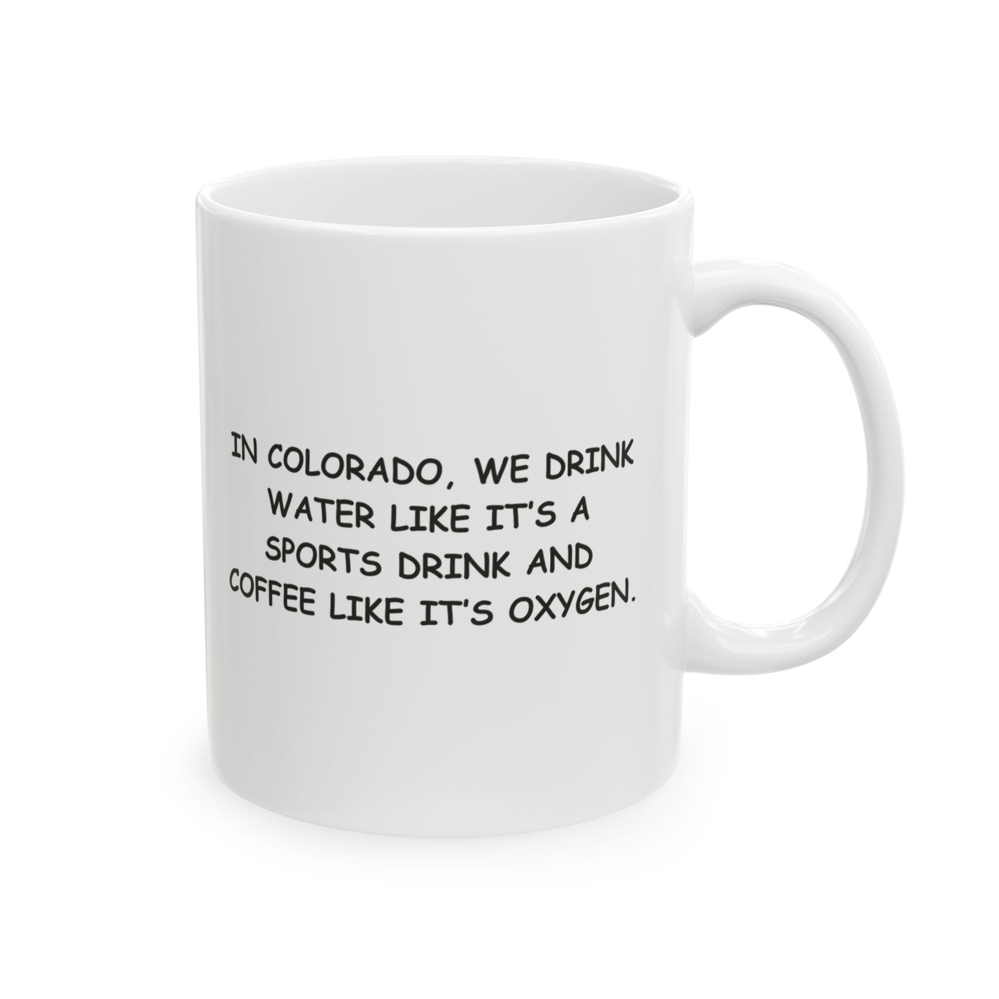 "In Colorado, we drink water like it’s a sports drink and coffee like it’s oxygen." Ceramic Coffee Mug - 13502