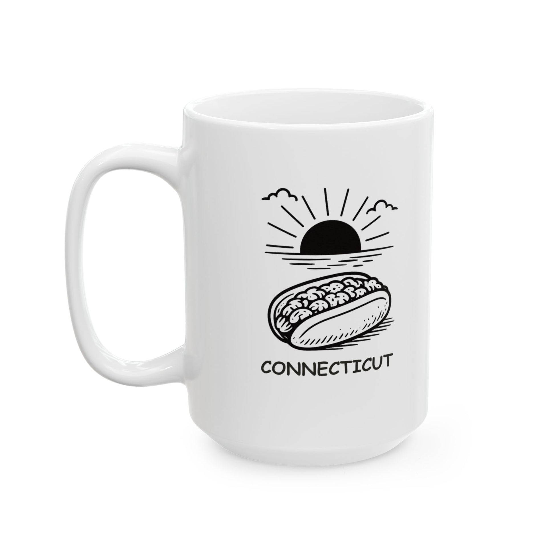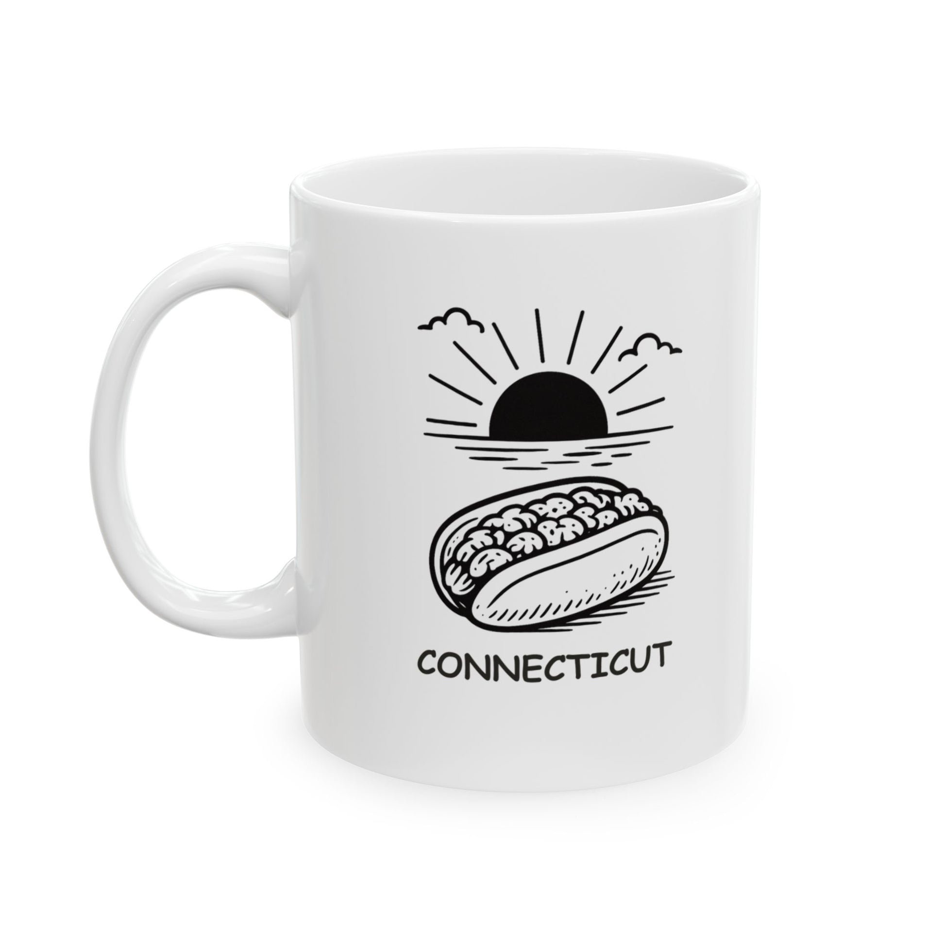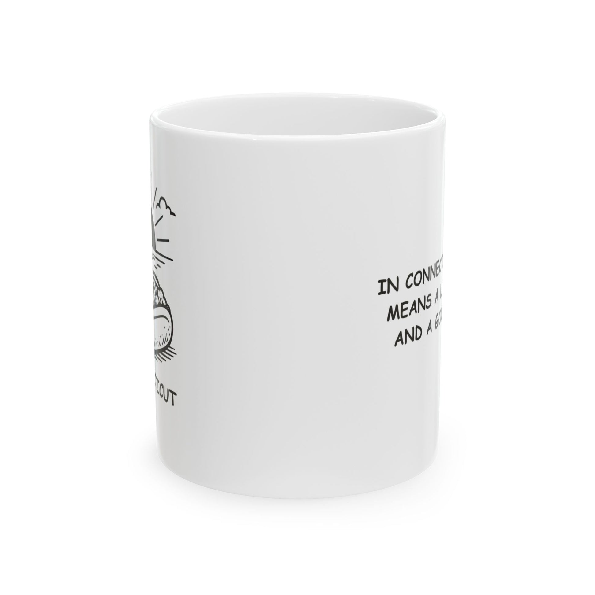 Keep it classy the Connecticut way—with a lobster roll in one hand and this mug in the other. Our "In Connecticut, ‘fancy’ means a lobster roll and a good sunset." Ceramic Mug captures the laid-back luxury of life in the Nutmeg State. Made from high-quality ceramic, it's perfect for sipping your favorite drink while soaking in the simple pleasures.