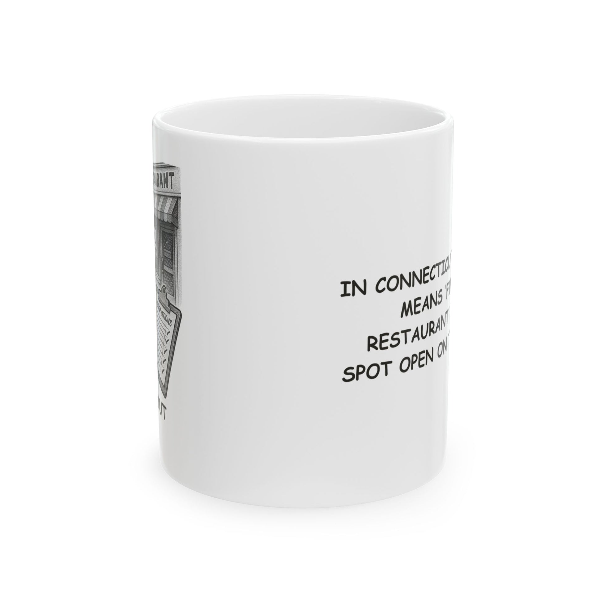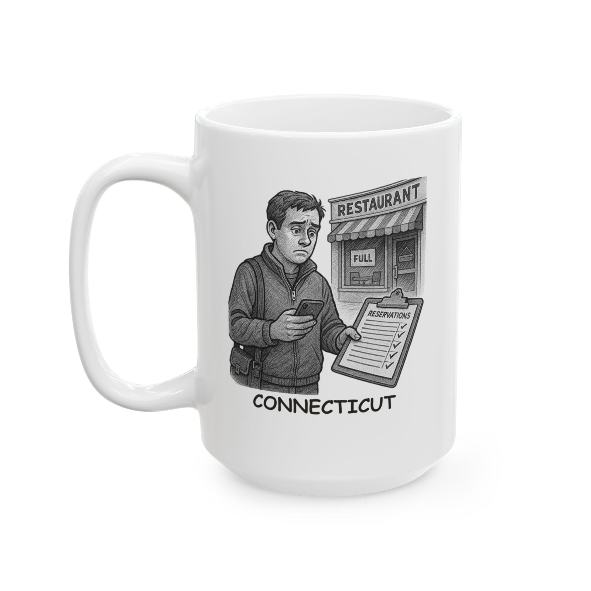 "In Connecticut, ‘going out’ means ‘finding a restaurant that has a spot open on the weekend.’" Ceramic Mug - 13882