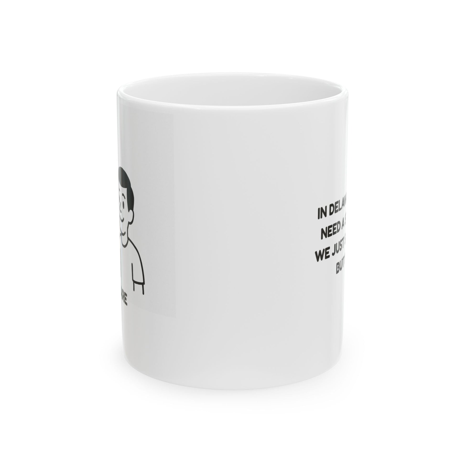 "In Delaware, we don’t need a state slogan; we just say, ‘It’s small, but it’s ours.’" Ceramic Mug - 14130