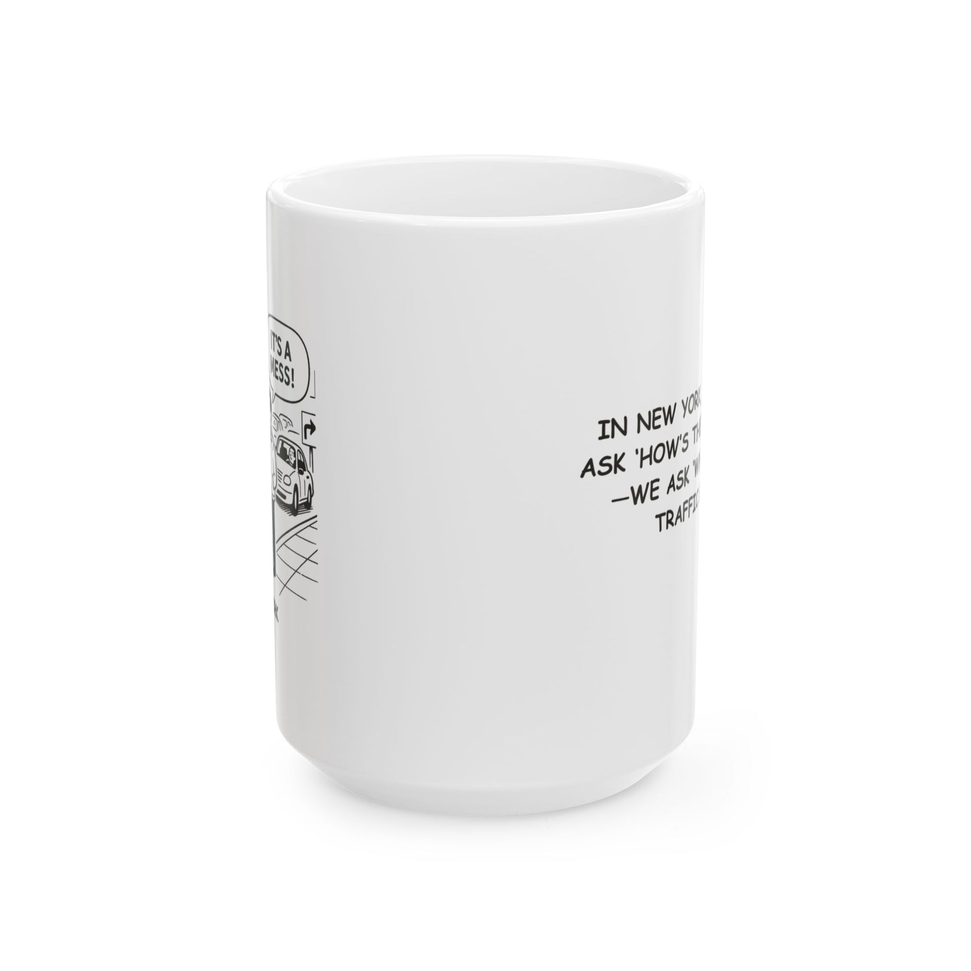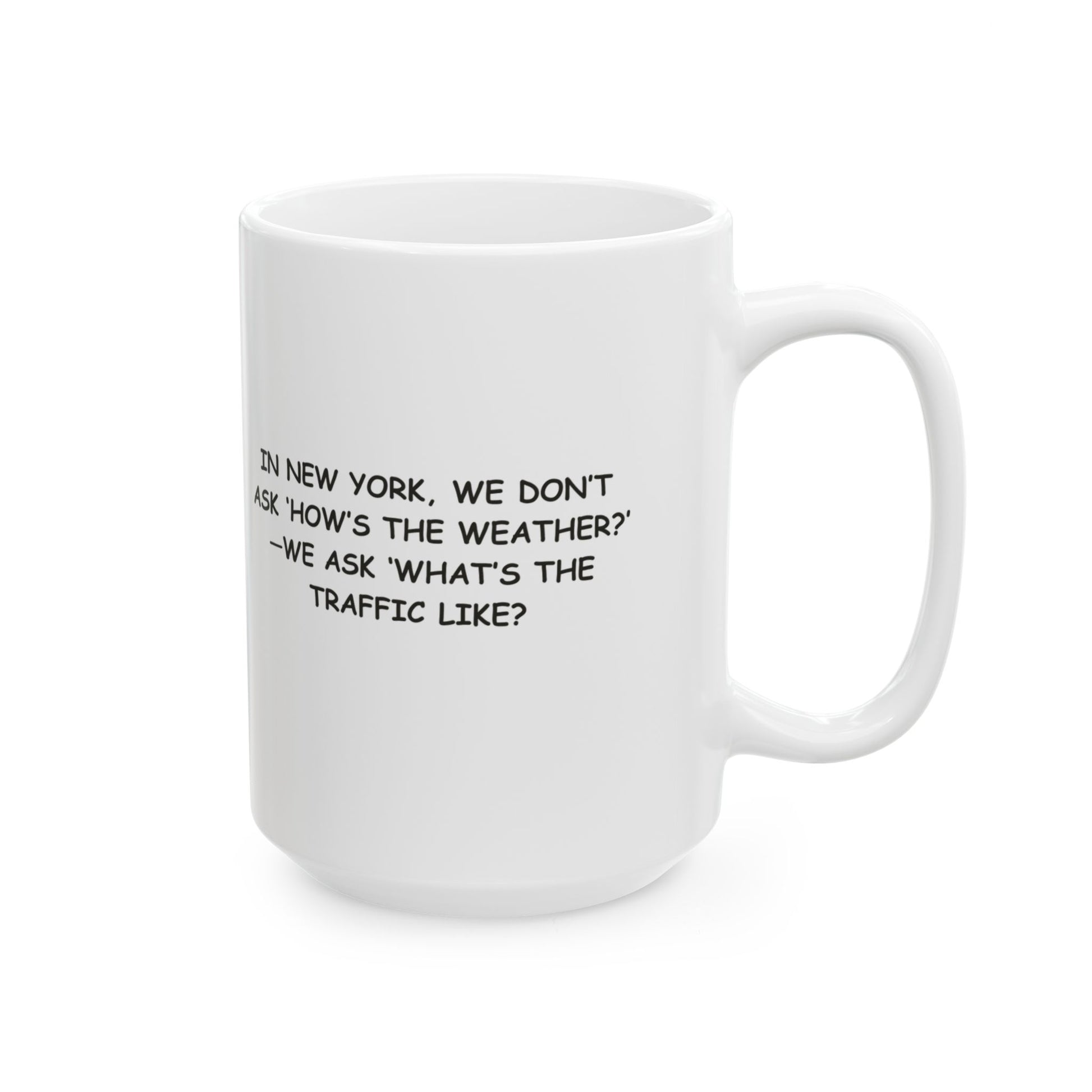 "In New York, we don’t ask ‘How’s the weather?’—we ask ‘What’s the traffic like?’" Ceramic Mug- 11oz & 15oz - 12840