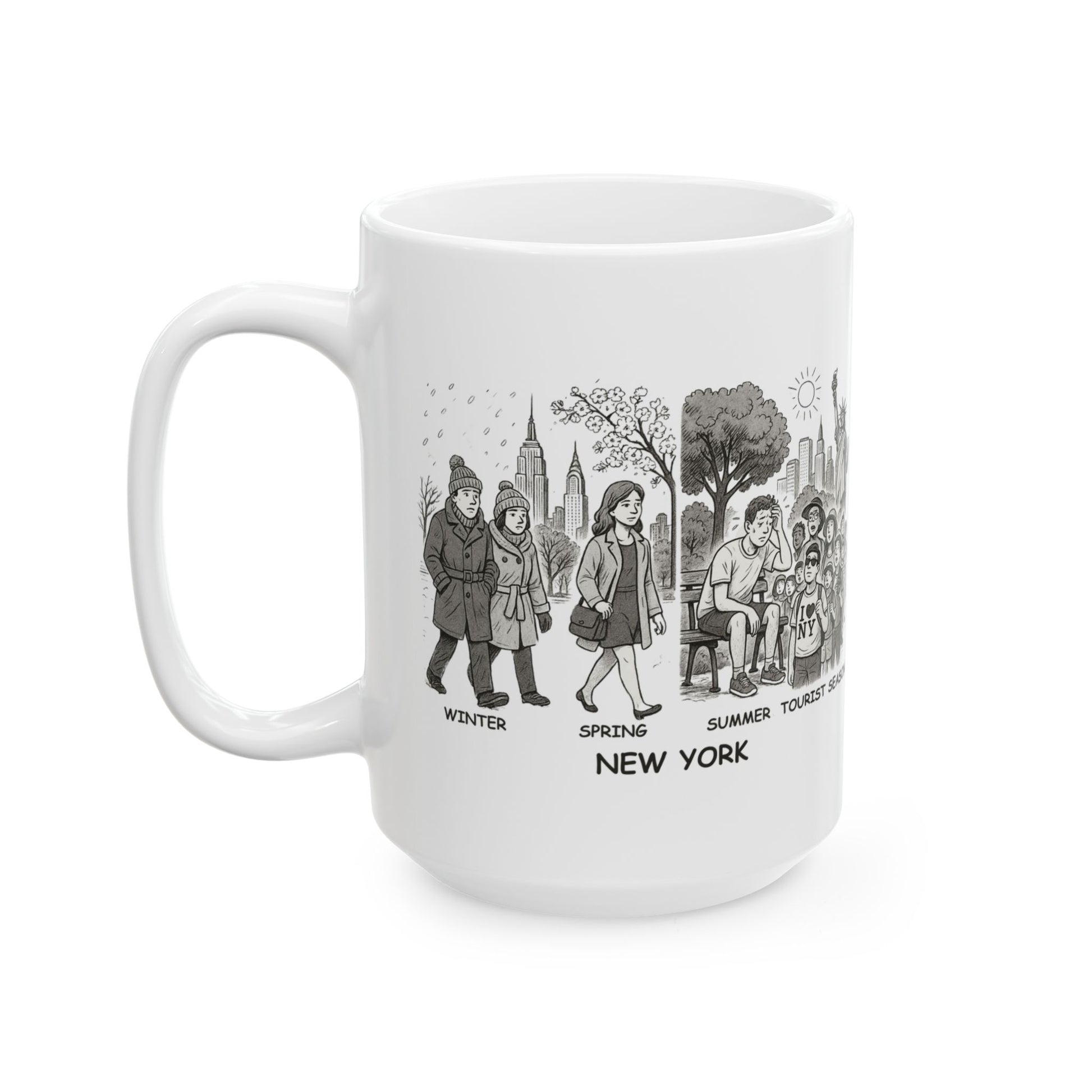 "In New York, we don’t have ‘seasons’—we have ‘Winter, Spring, Summer, and Tourist Season.’" Tourist Ceramic Mug - 11oz & 15oz | 12834