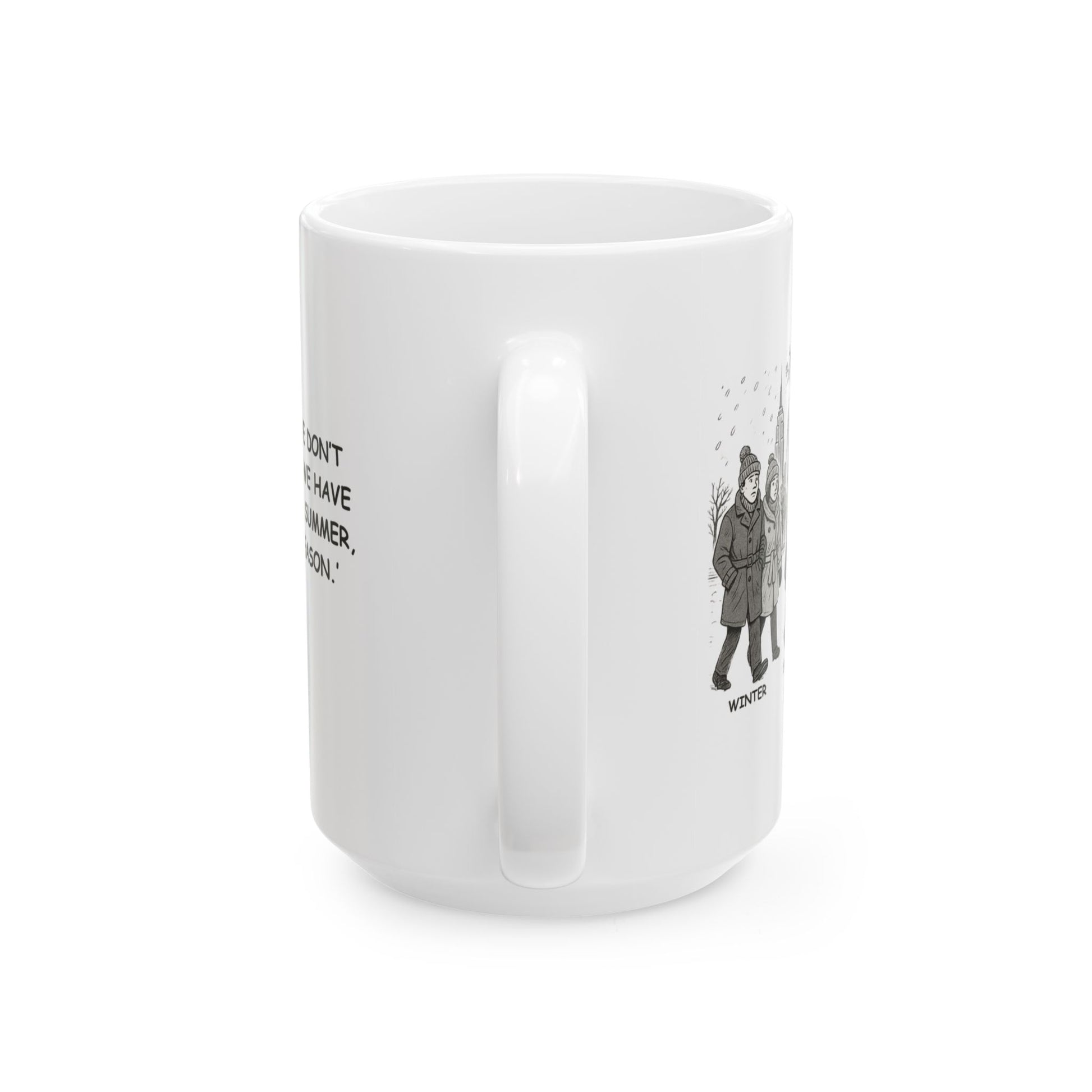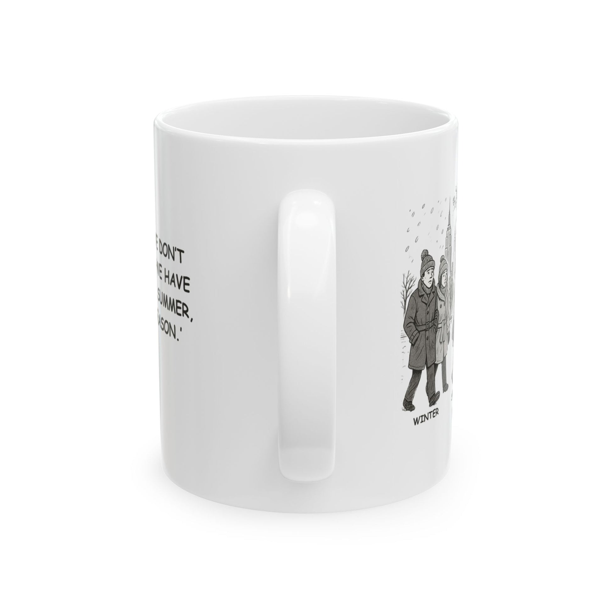 Embrace the real New York experience with our “In New York, we don’t have ‘seasons’—we have ‘Winter, Spring, Summer, and Tourist Season.’” ceramic mug. Whether you're a proud local or a frequent visitor, this mug captures the city’s unofficial calendar—where navigating crowds is just part of the charm. Sip your coffee with a side of sarcasm and a whole lot of city attitude.