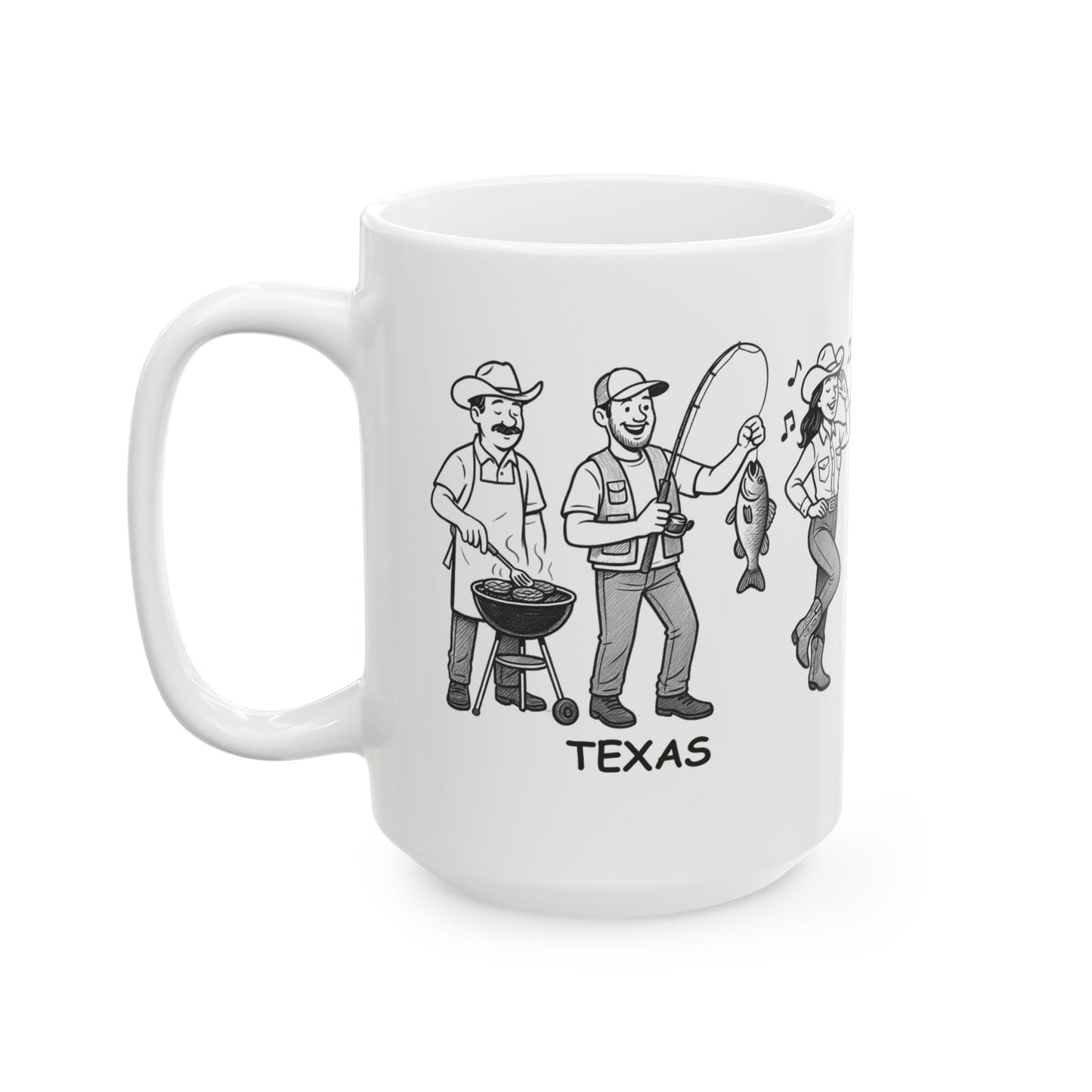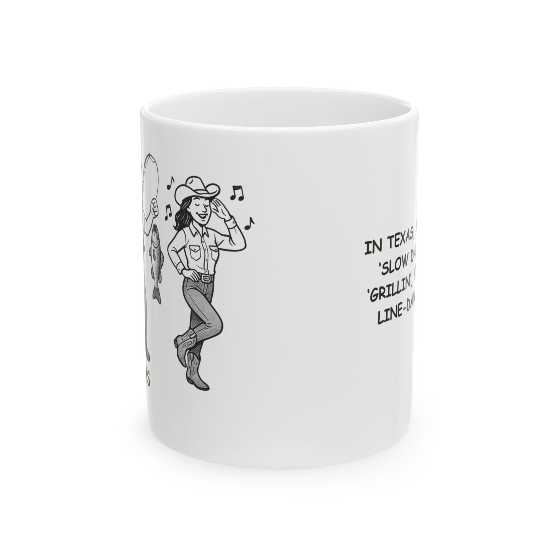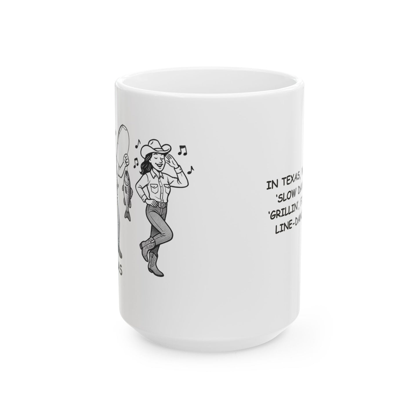 "In Texas, we don’t do ‘slow days’—we do ‘grillin’, fishin’, and line-dancin’ days." Ceramic Mug - 11oz & 15oz - 12760
