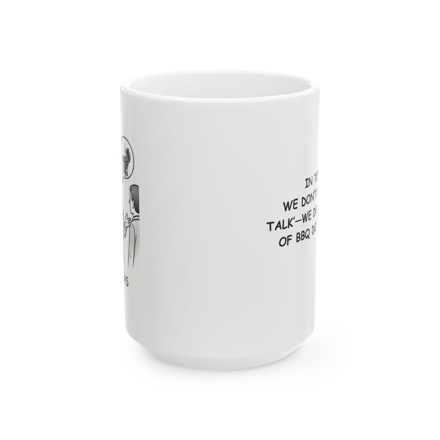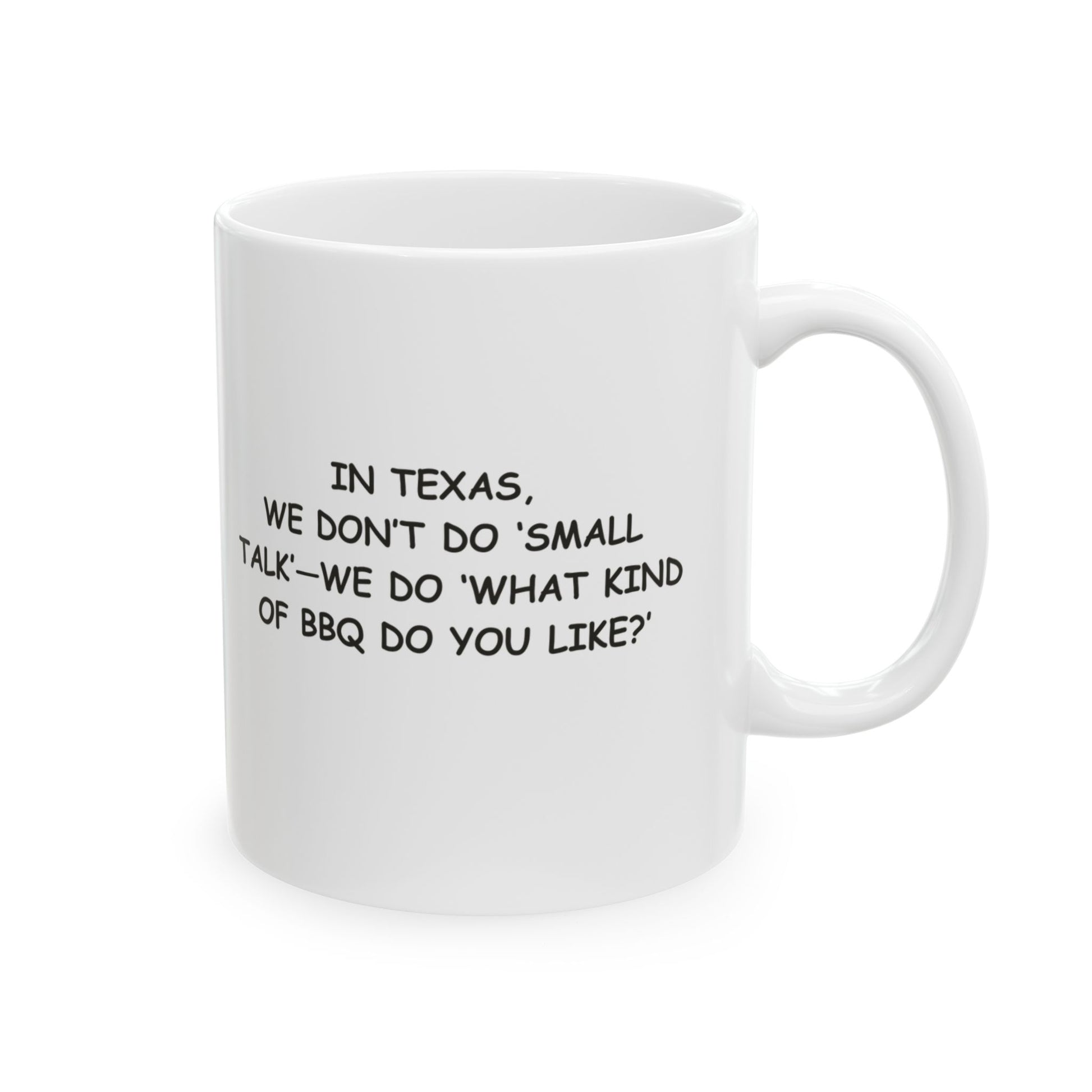"In Texas, we don’t do ‘small talk’—we do ‘what kind of BBQ do you like?’" Ceramic Mug - 11oz & 15oz - 12676
