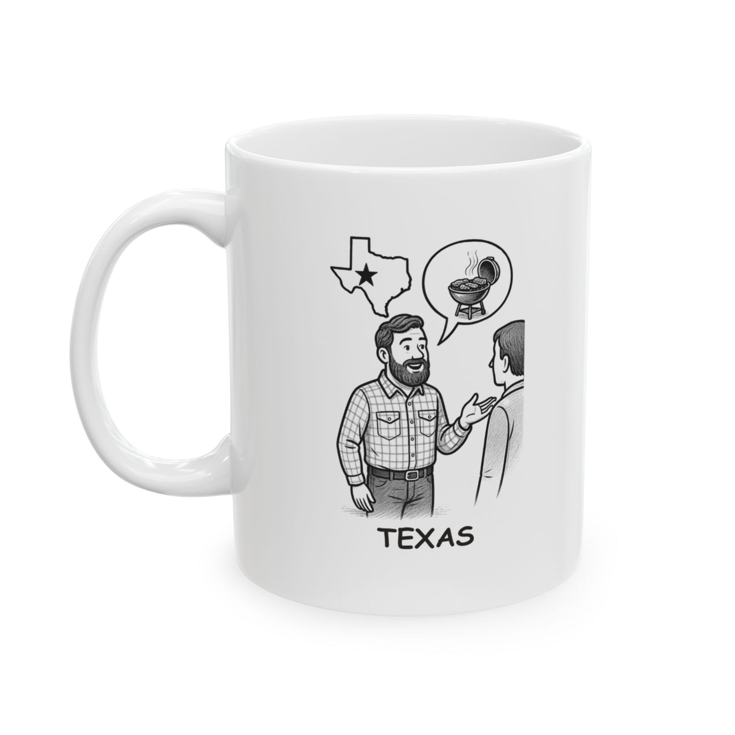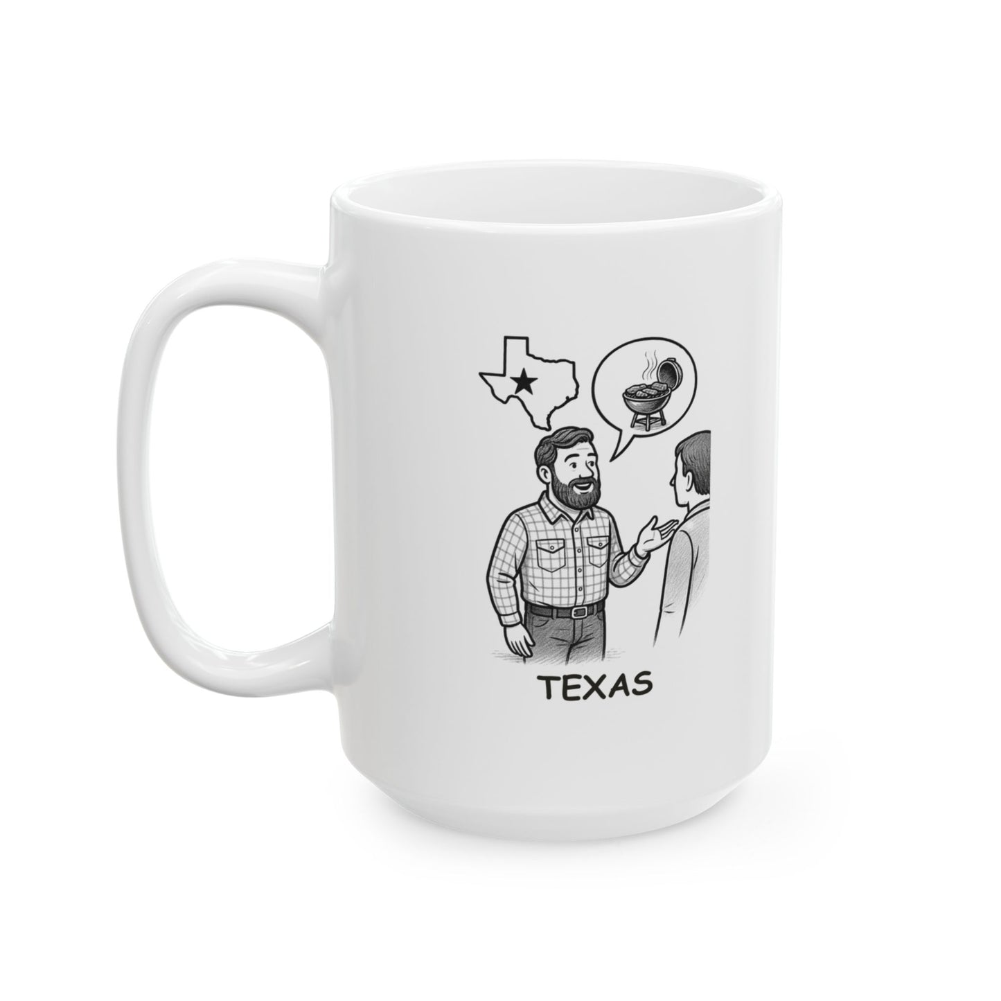 Why chat about the weather when you can debate brisket vs. ribs? This ceramic mug brings a taste of Texas humor to your morning coffee or evening tea. Perfect for BBQ lovers and proud Texans alike, it’s available in 11oz and 15oz sizes—because even coffee should spark great conversations.