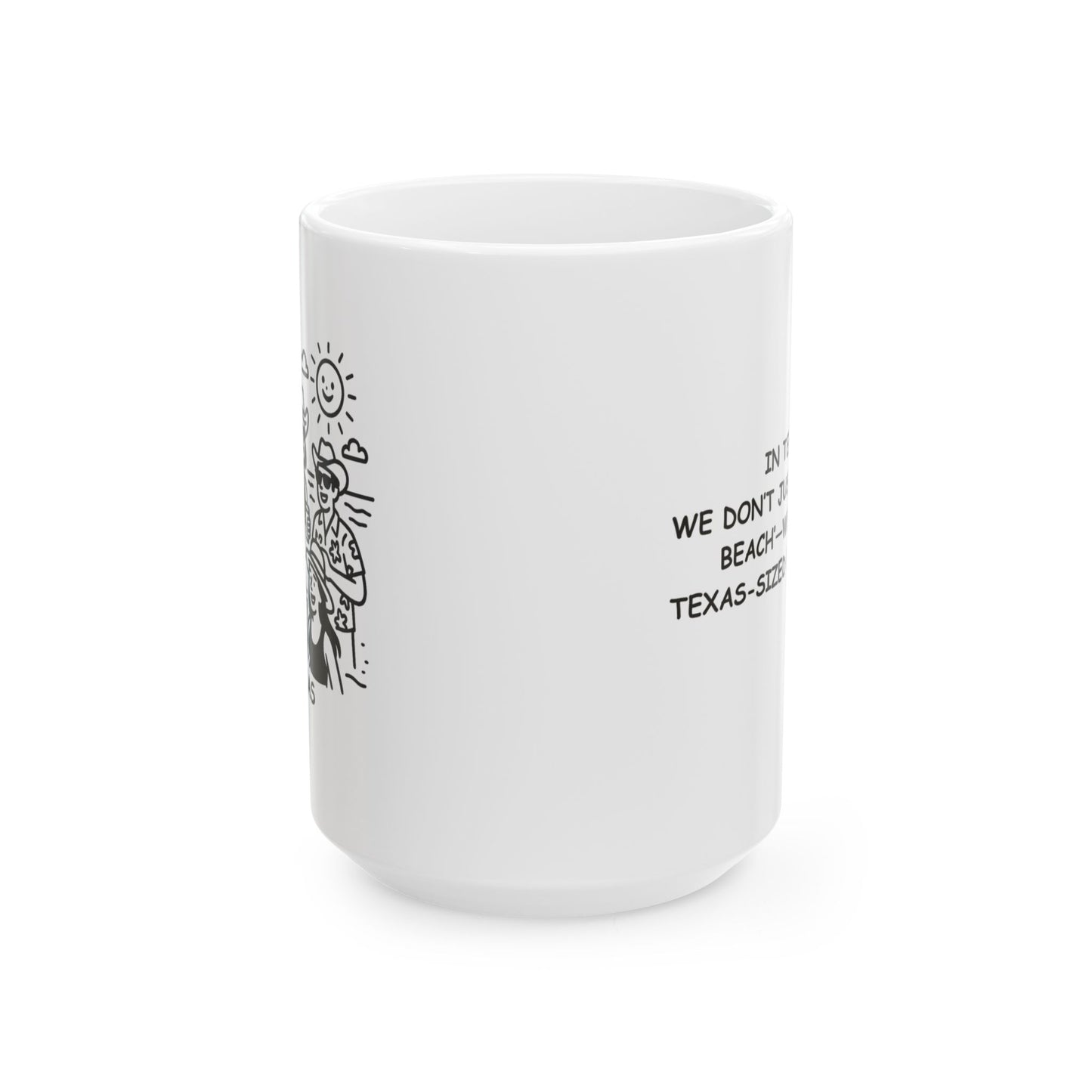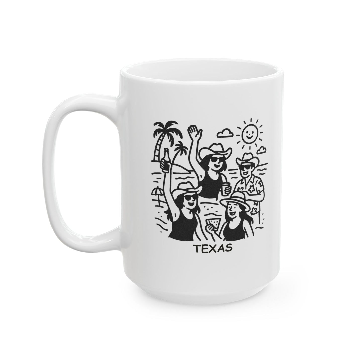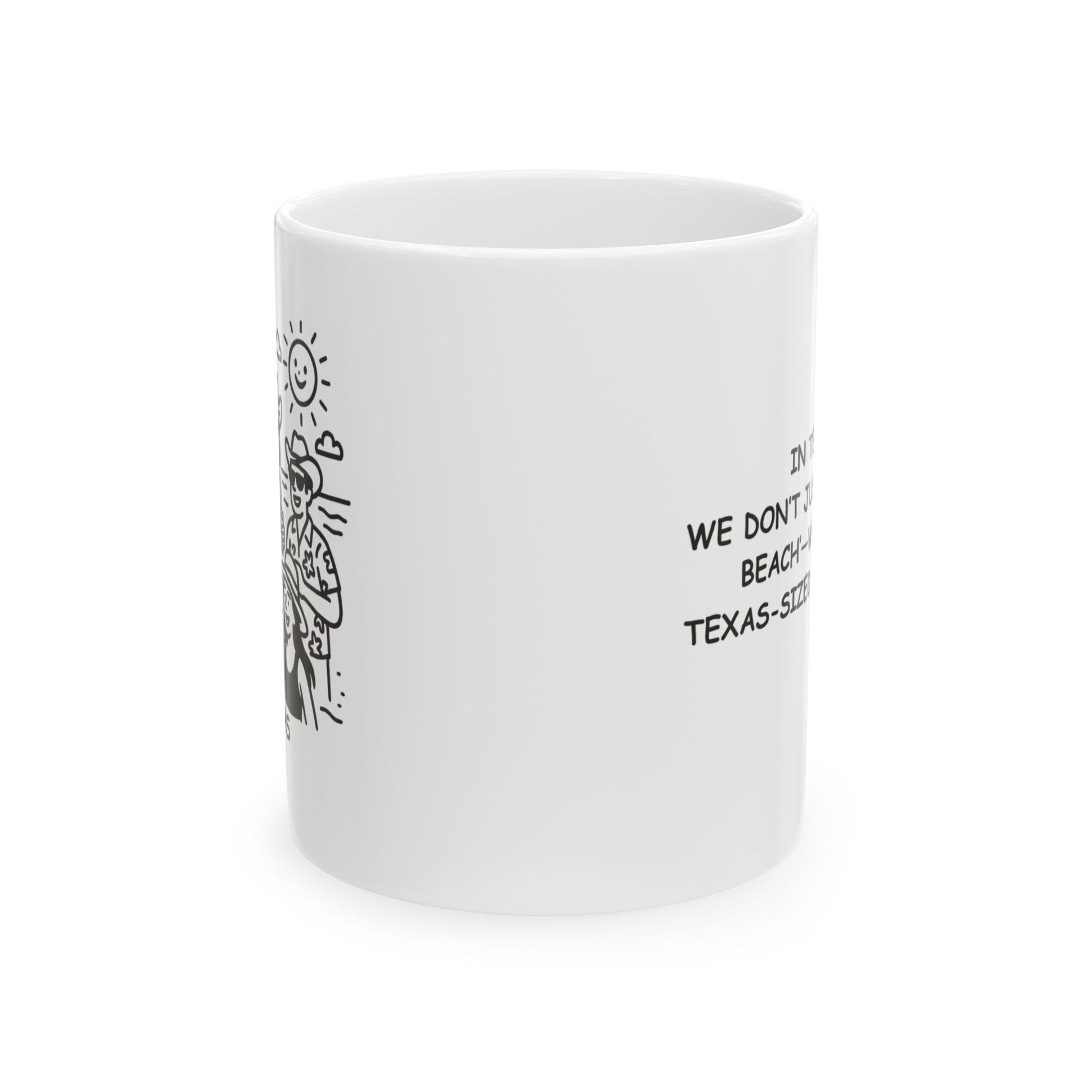 "In Texas, we don’t just ‘go to the beach’—we go to a Texas-sized beach party." Ceramic Mug - 12764