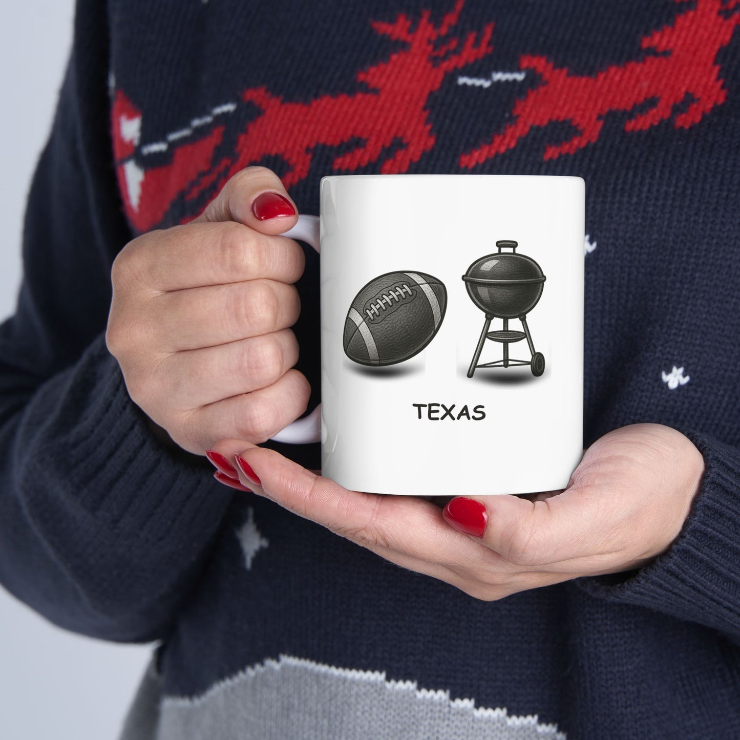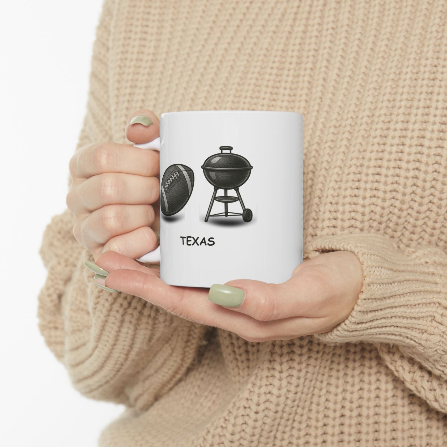 Forget the ticking clock—this mug tells true Texas time! Whether it’s kickoff or cookout season, this ceramic mug is perfect for coffee, tea, or whatever keeps you going between touchdowns and brisket. Available in 11oz and 15oz sizes, it’s a must-have for every proud Texan or BBQ-loving football fan.