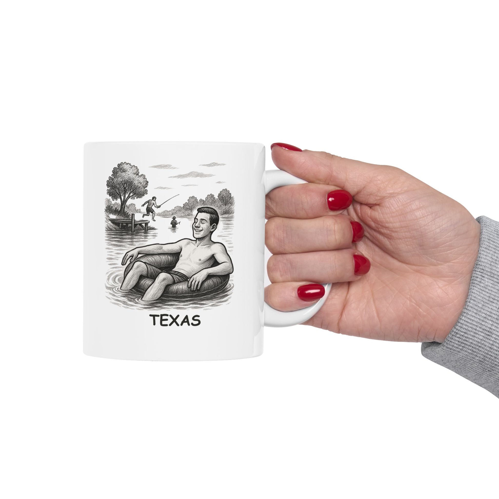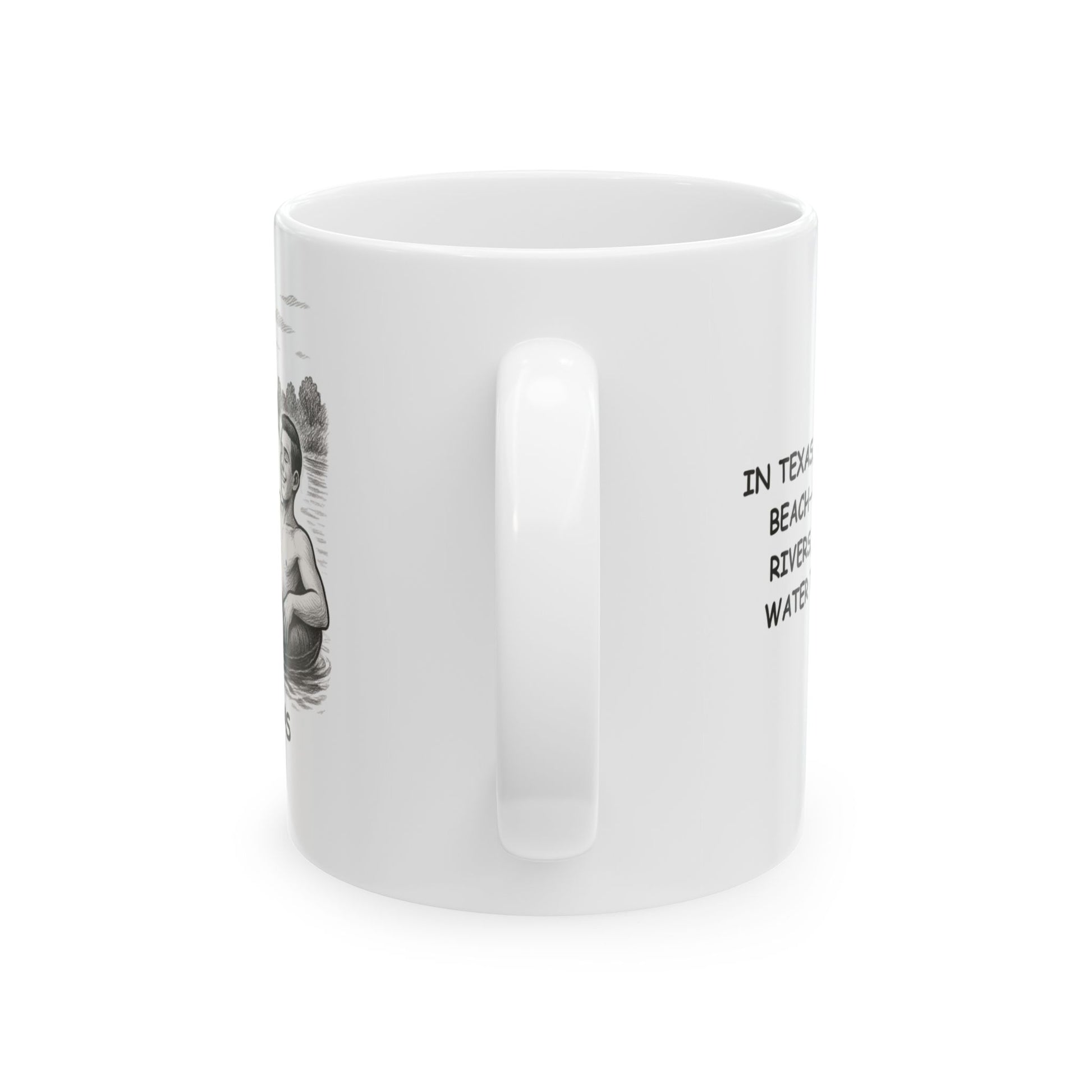 "In Texas, we don’t need a beach—we have lakes, rivers, and plenty of water to cool off in." Ceramic Mug - 11oz & 15oz - 12762