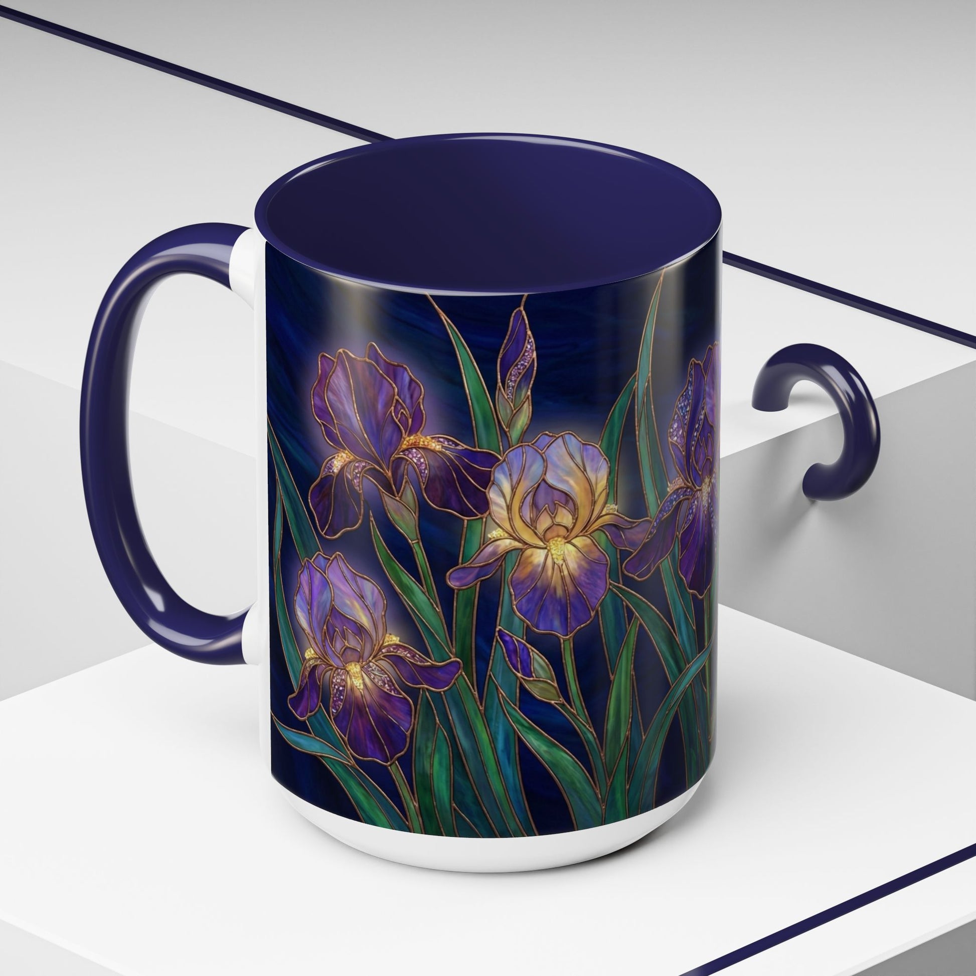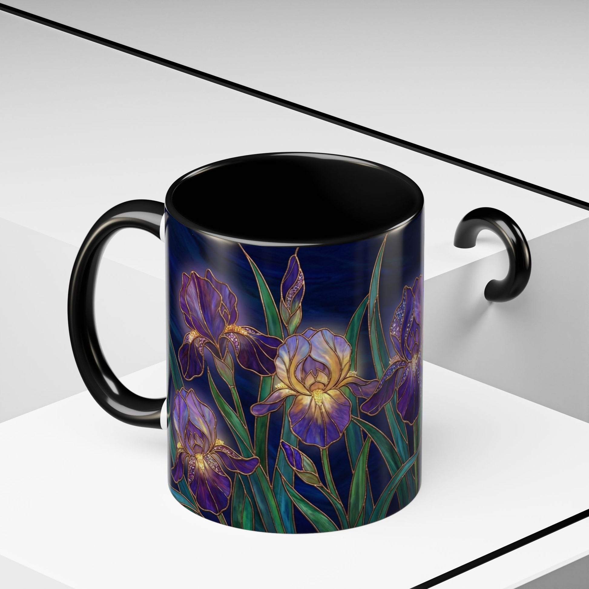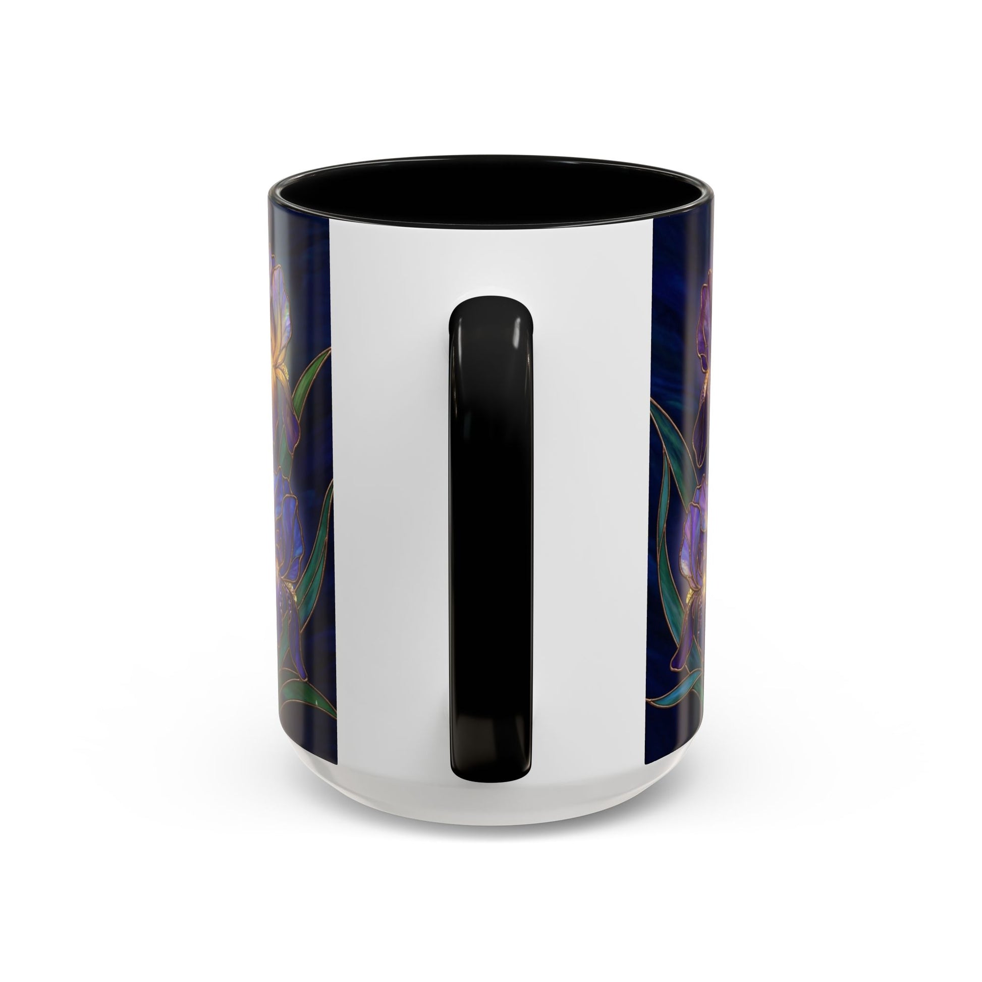 Iris Floral Accent Coffee Mug — Stained Glass Design 11/15oz - 14572