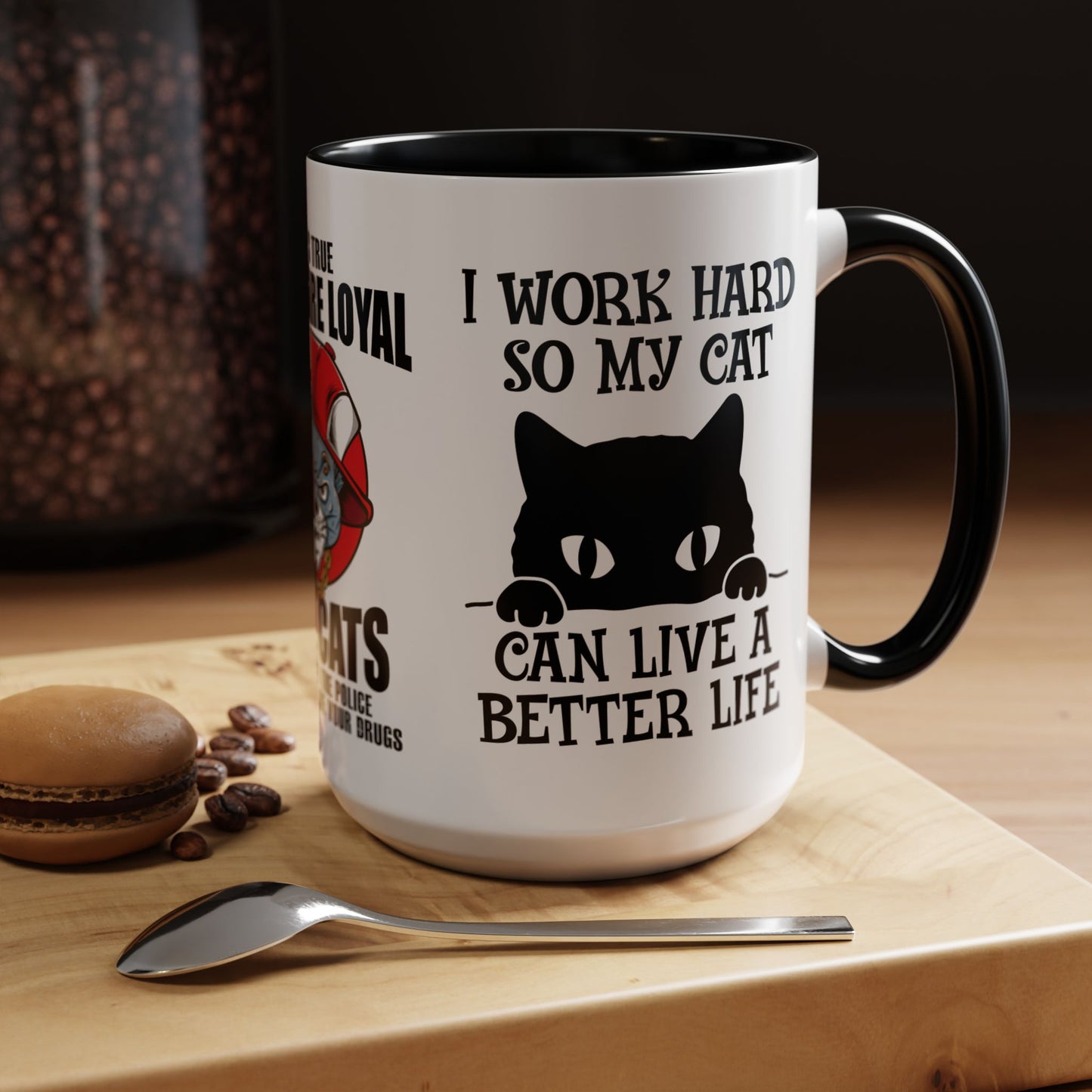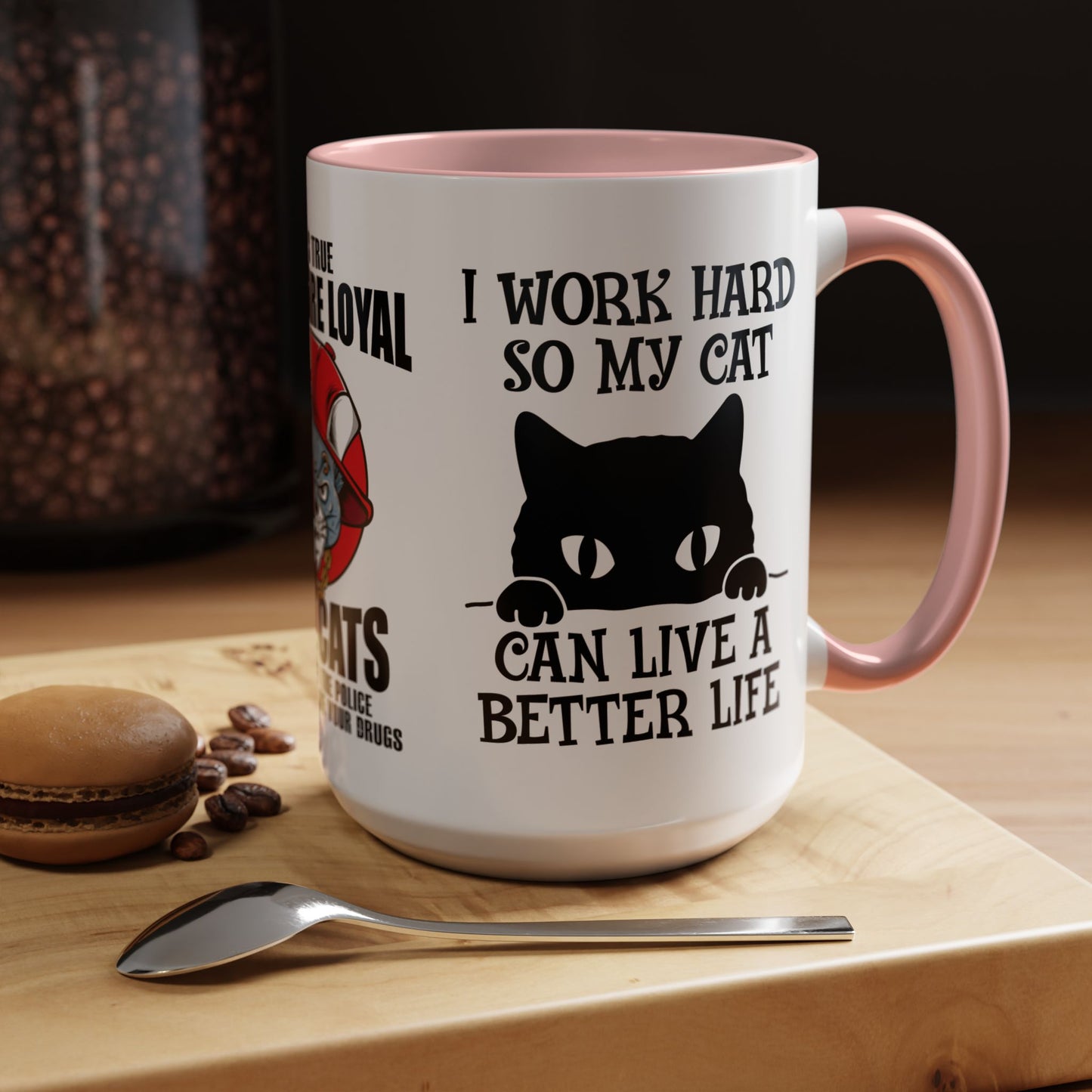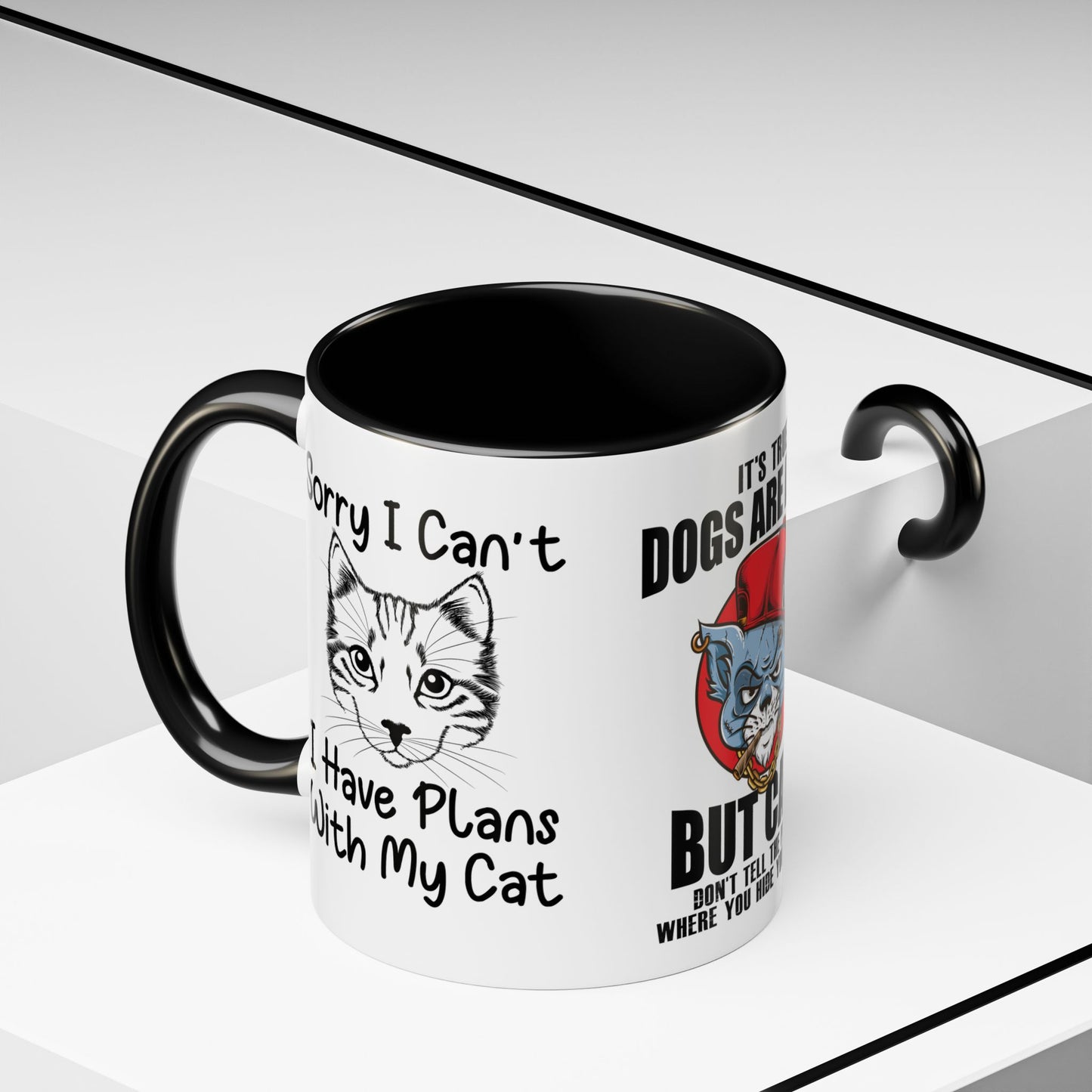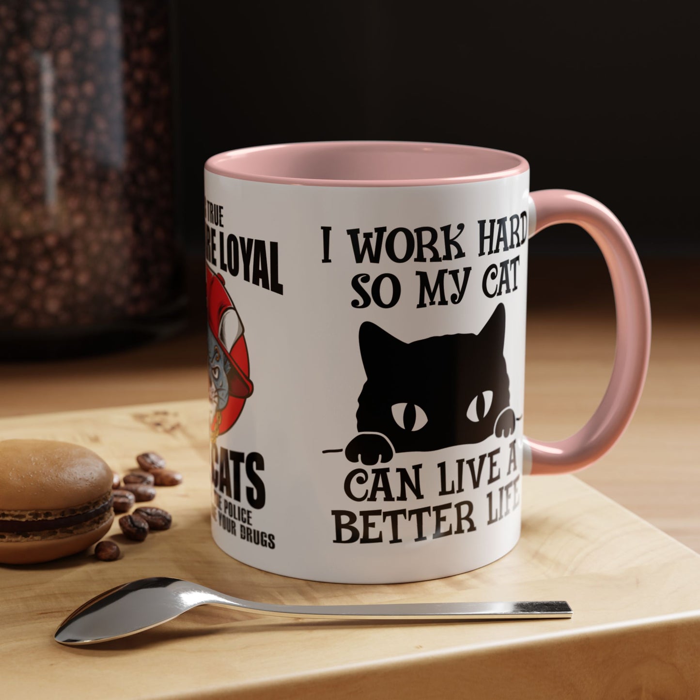 Enjoy your coffee or tea with a dash of humor and cat-inspired fun with the It's True Dogs Are Loyal, But Cats Don't Tell The Police Where You Hide Your Things Accent Coffee Mug. Order yours today and bring some feline flair to your daily routine!