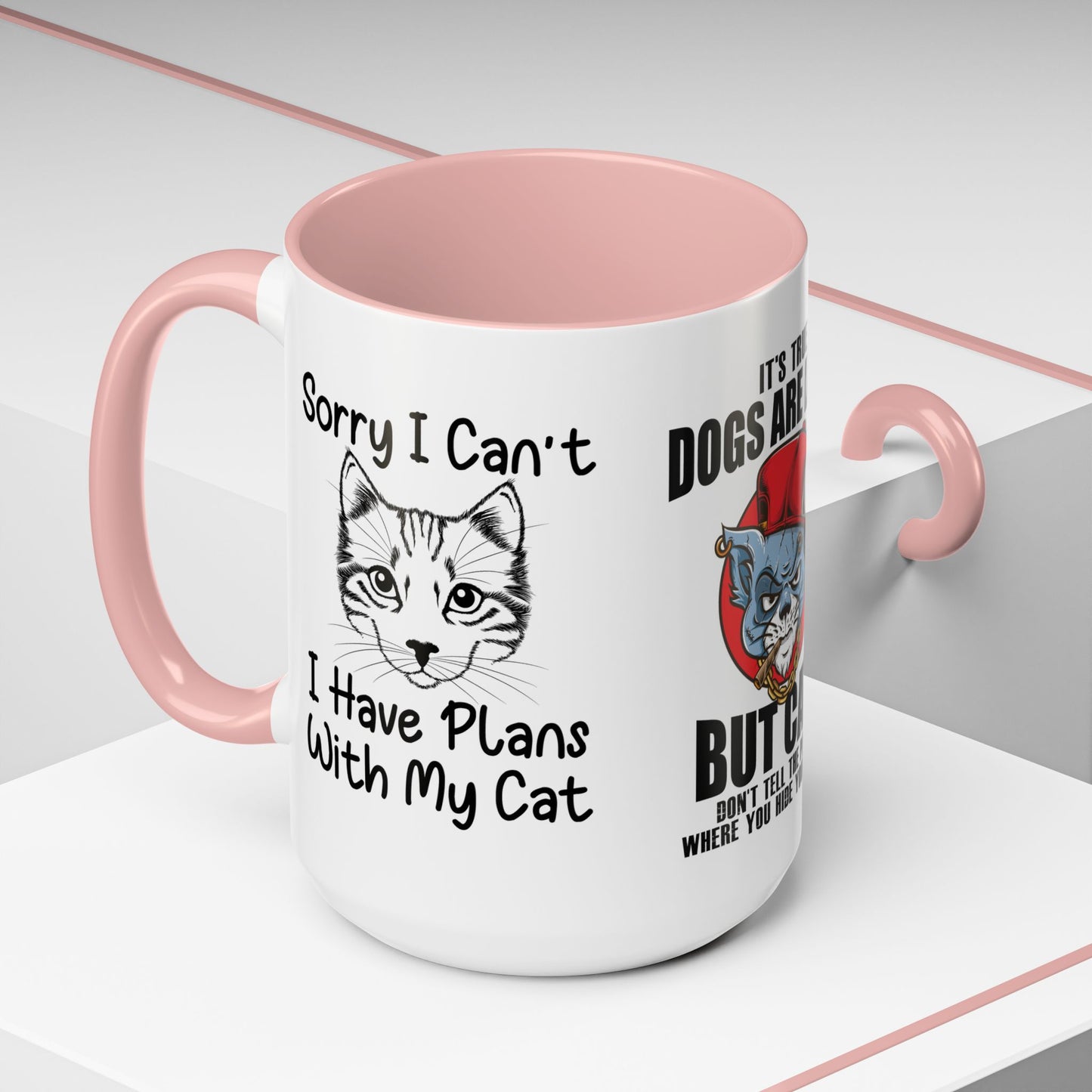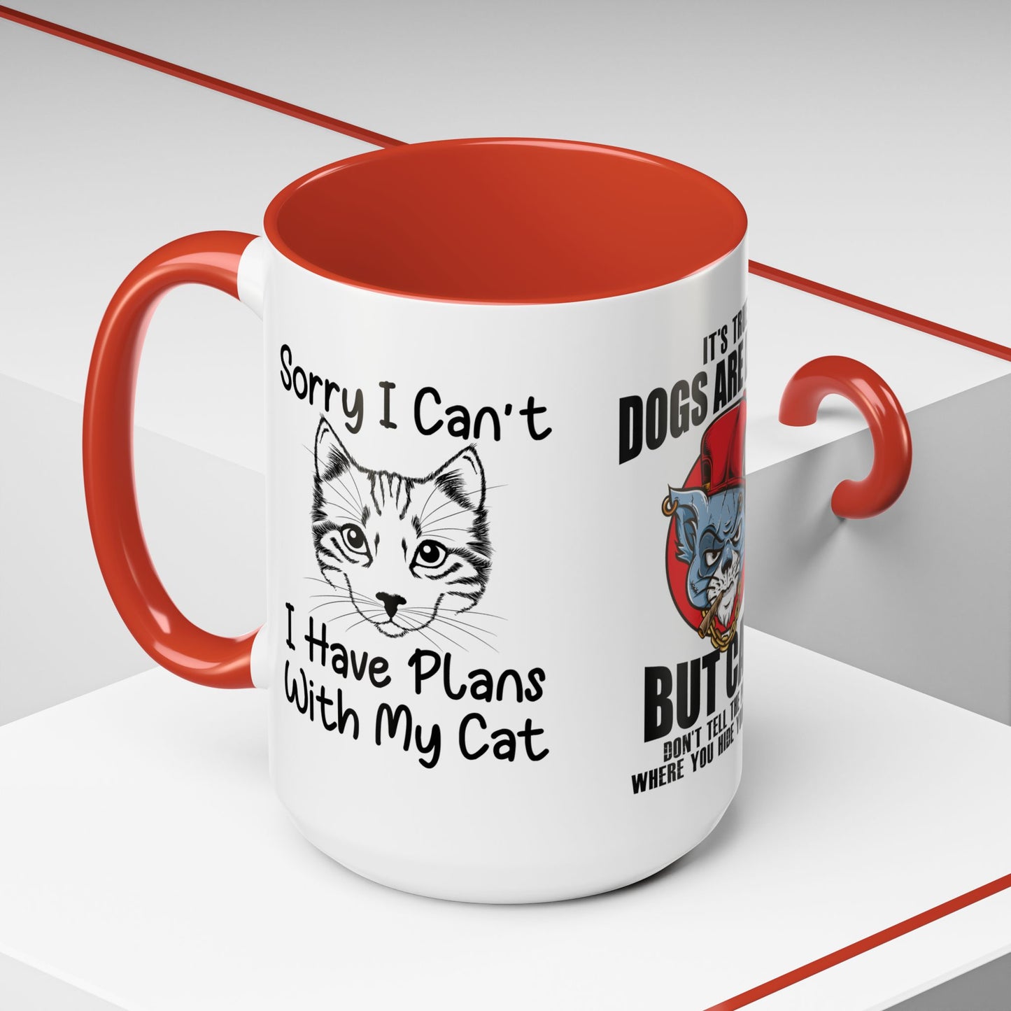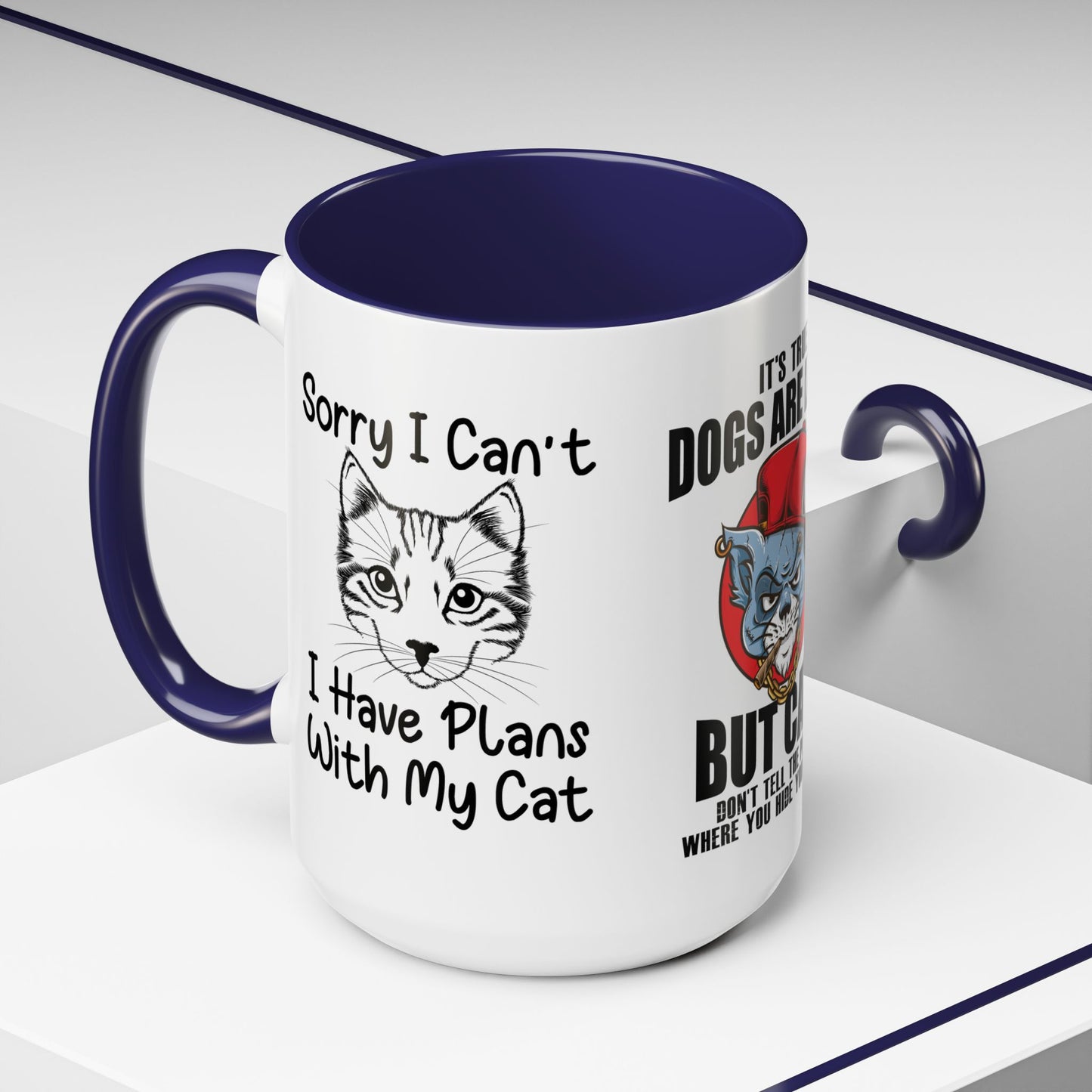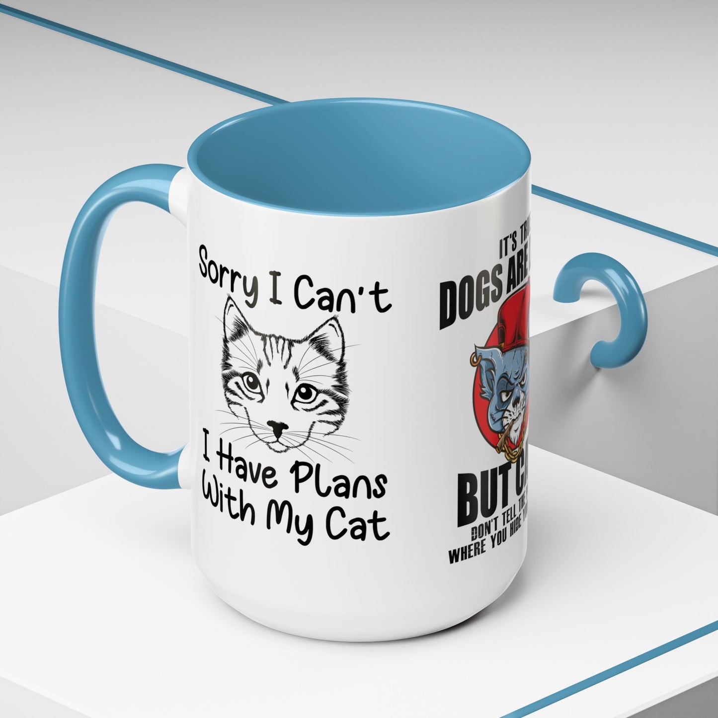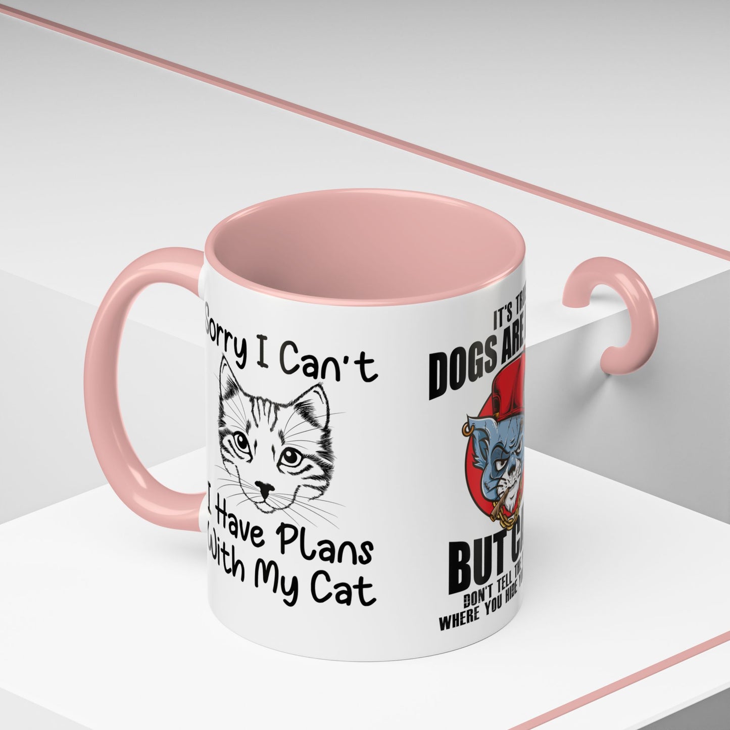 Enjoy your coffee or tea with a dash of humor and cat-inspired fun with the It's True Dogs Are Loyal, But Cats Don't Tell The Police Where You Hide Your Things Accent Coffee Mug. Order yours today and bring some feline flair to your daily routine!