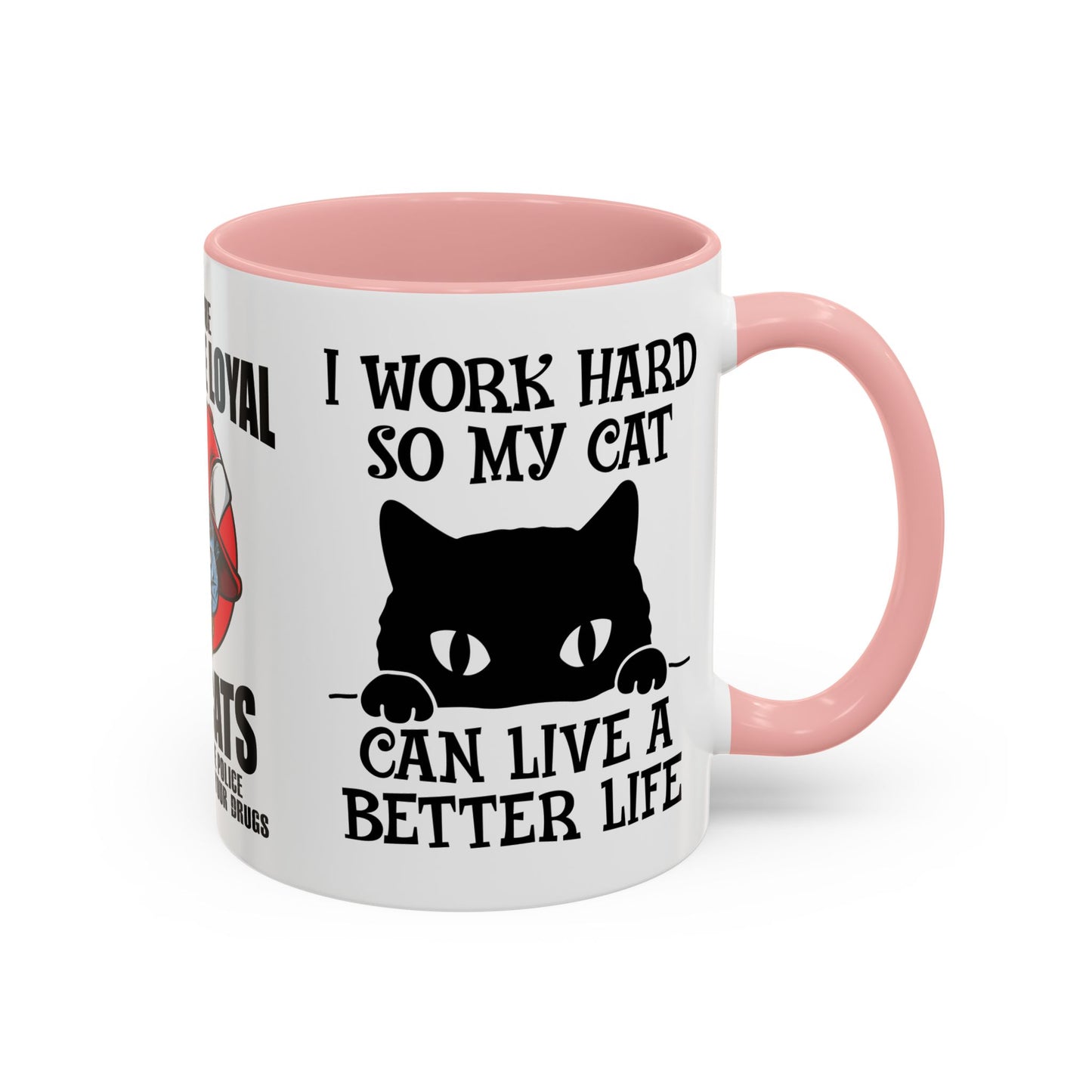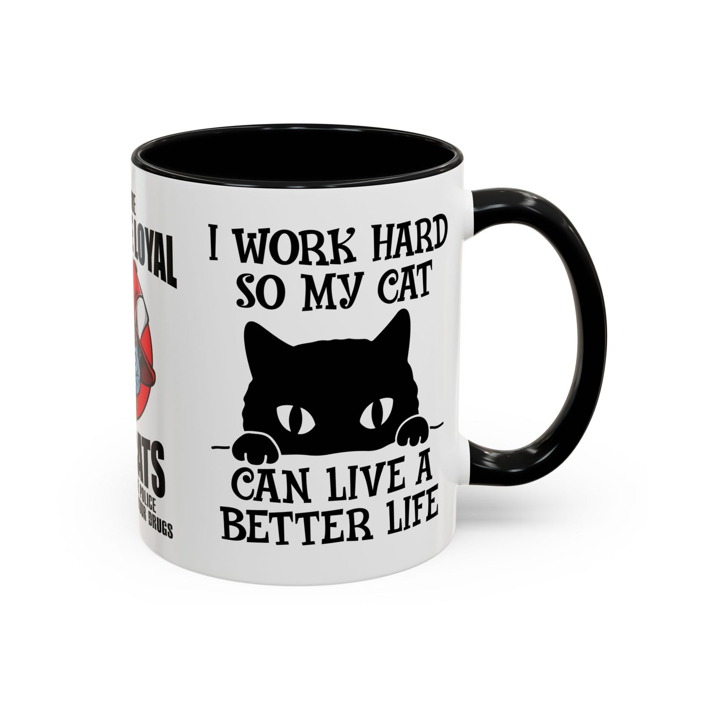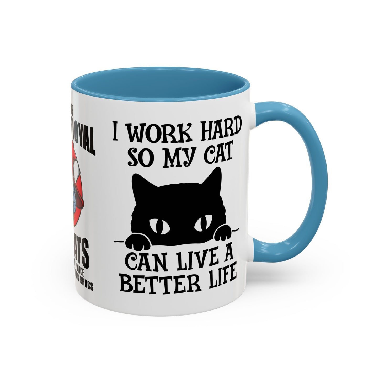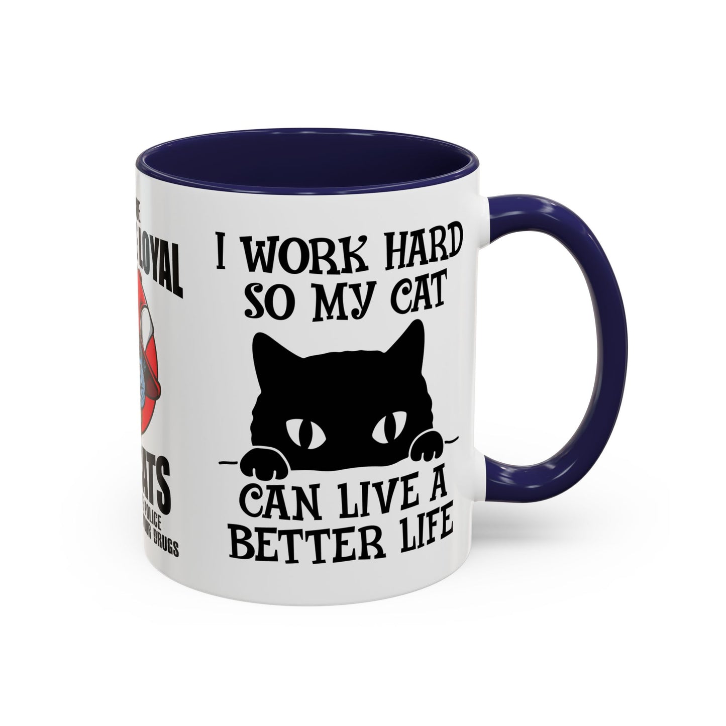 Enjoy your coffee or tea with a dash of humor and cat-inspired fun with the It's True Dogs Are Loyal, But Cats Don't Tell The Police Where You Hide Your Things Accent Coffee Mug. Order yours today and bring some feline flair to your daily routine!